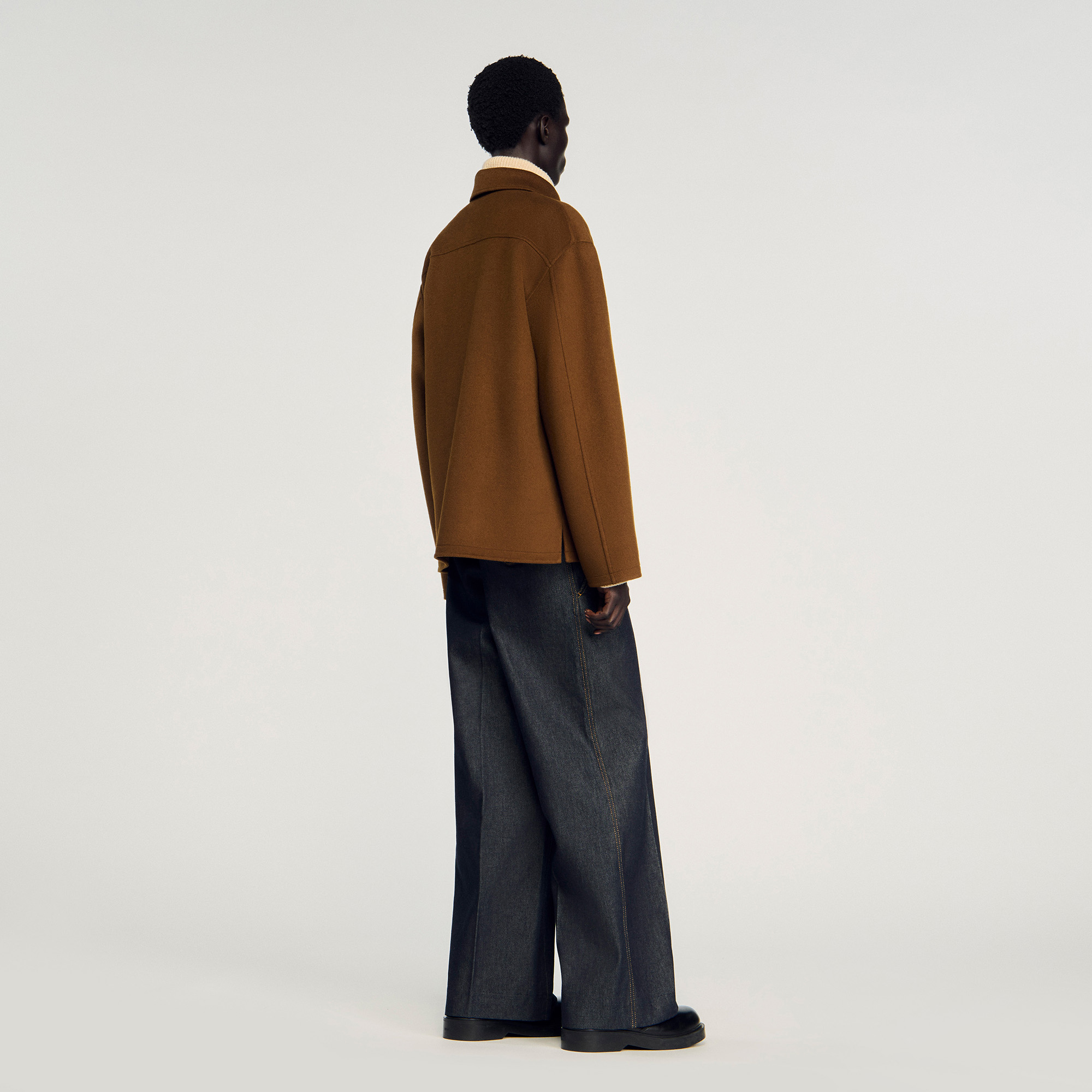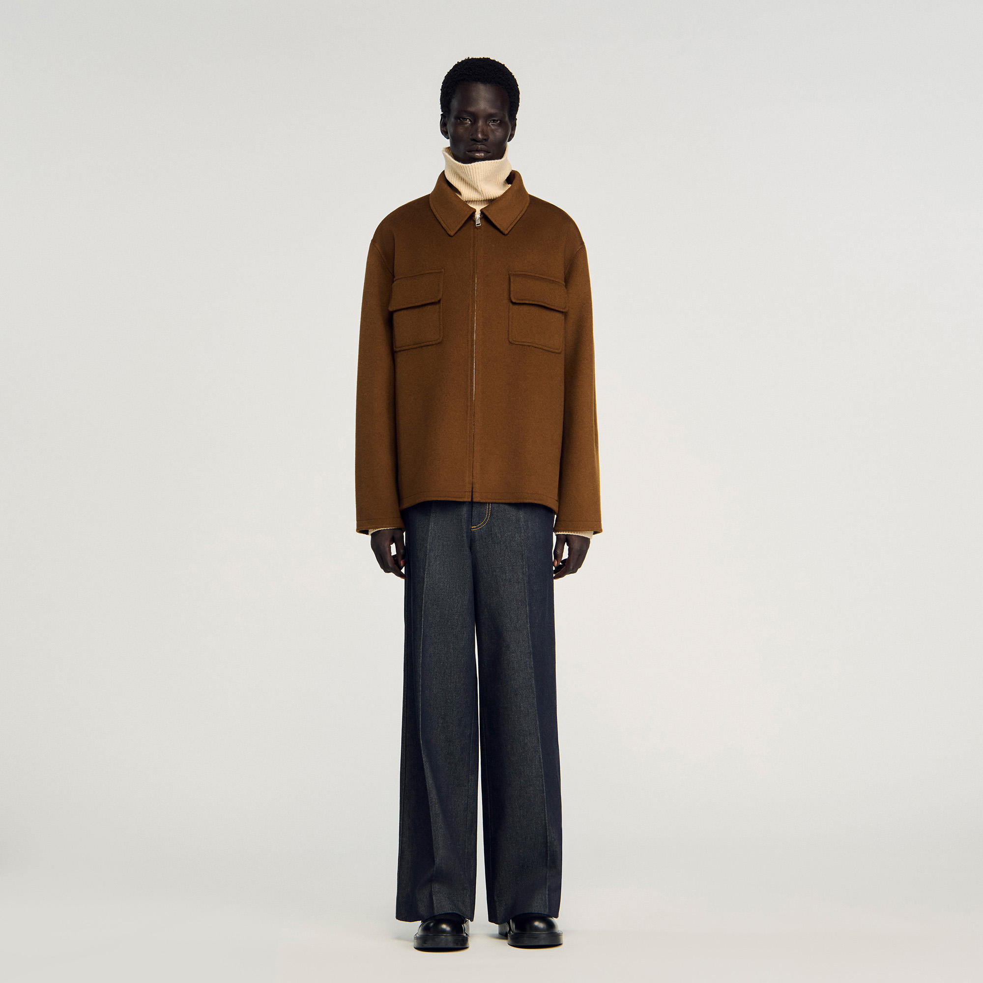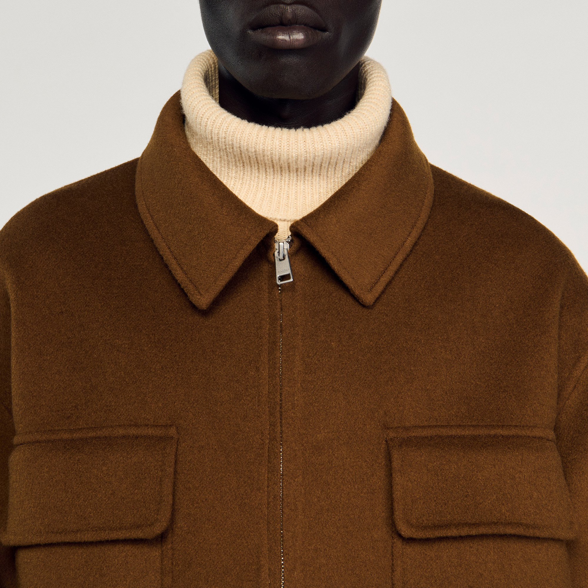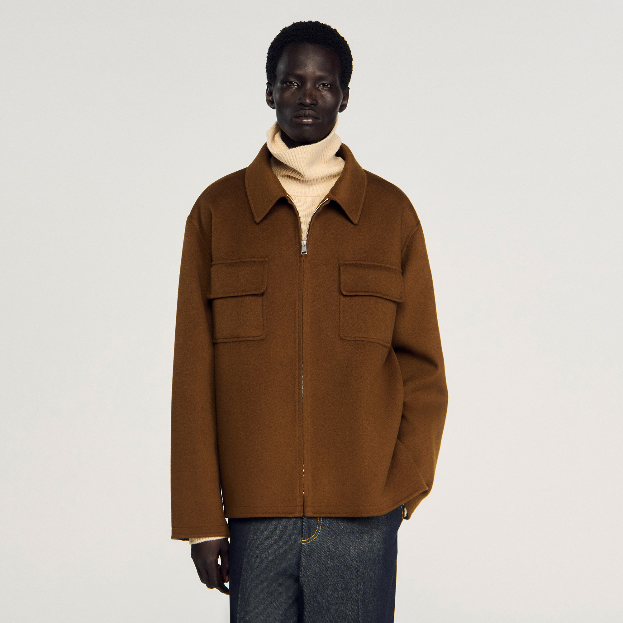Sandro wool Dual-sided overshirt with long sleeves, a zip fastening and two chest patch pockets.