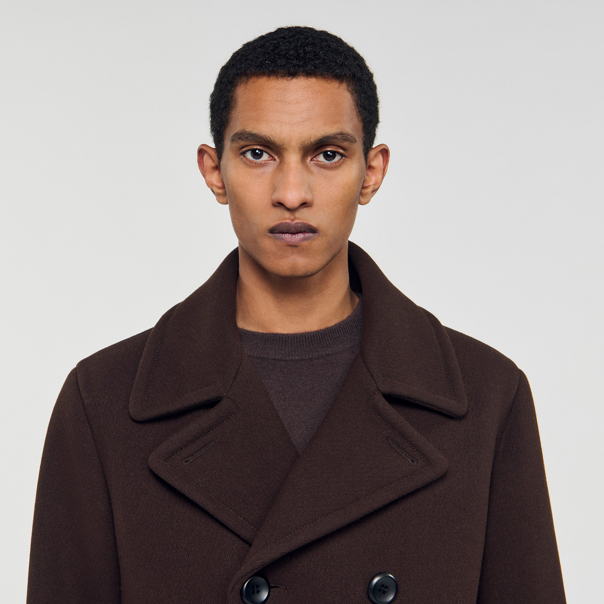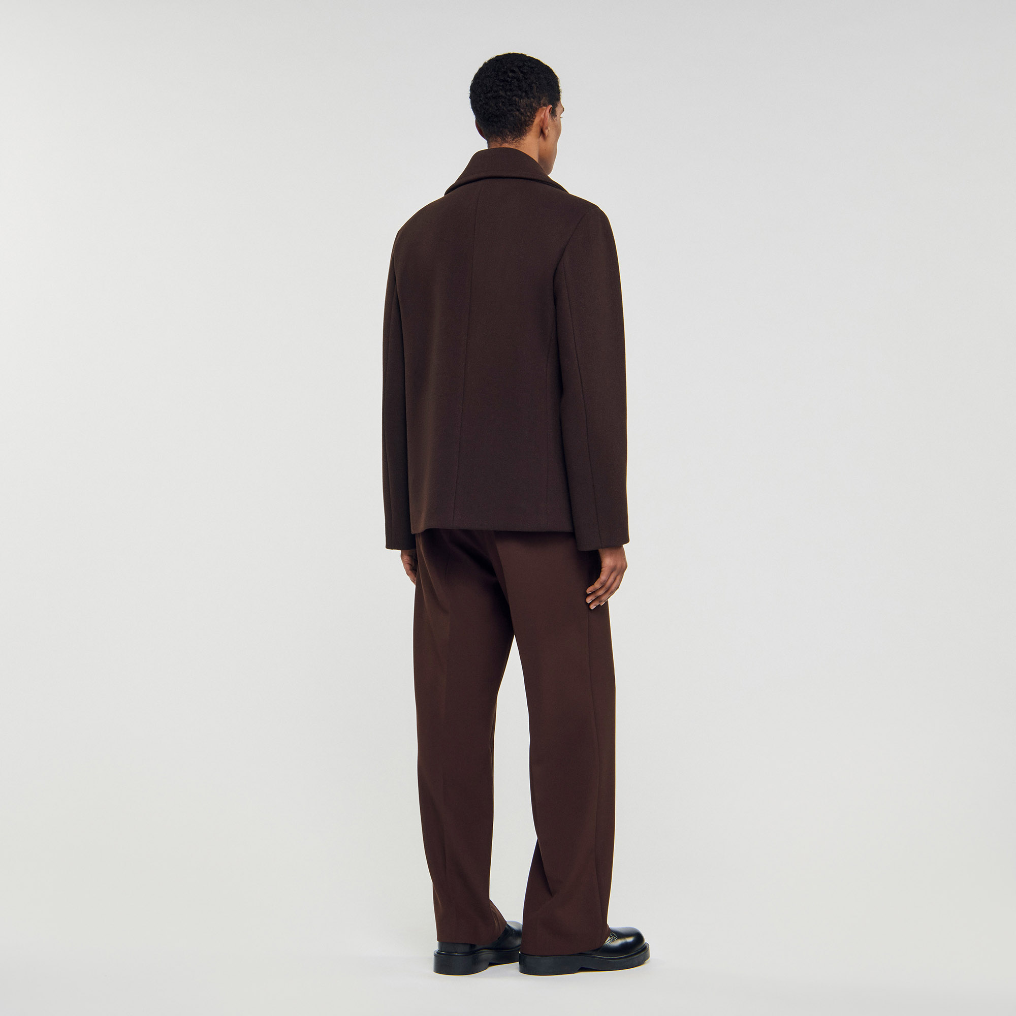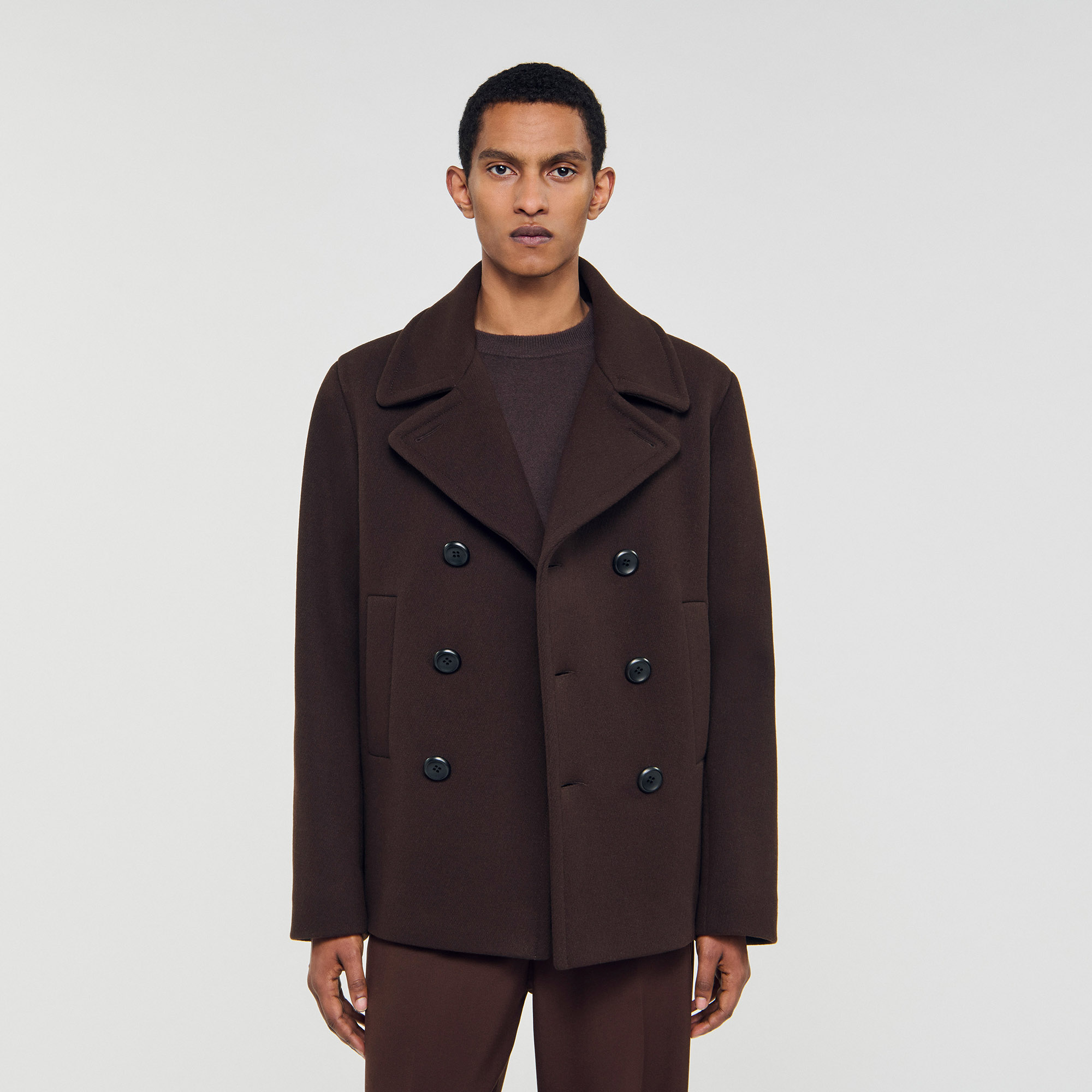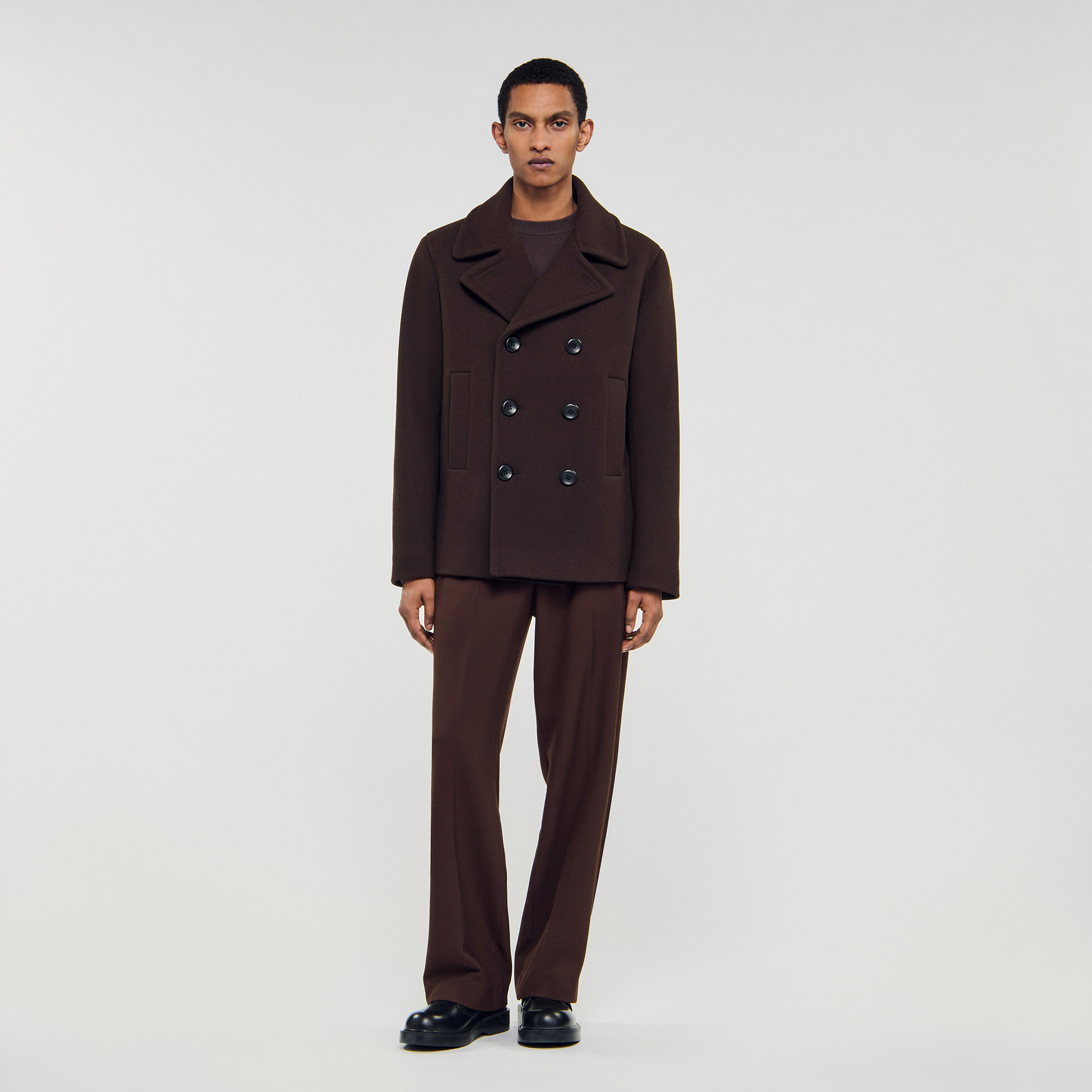 Sandro Men's wool pea coat Lapel collar Double-breasted button fastening 2 pockets with wide piping Lined interior Inside pockets True to size.