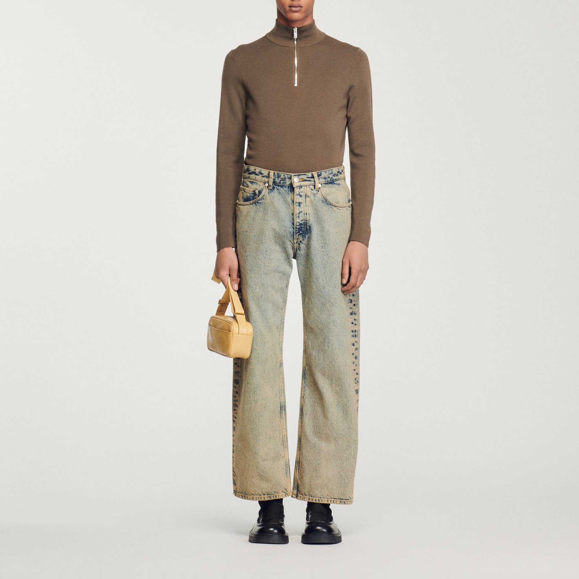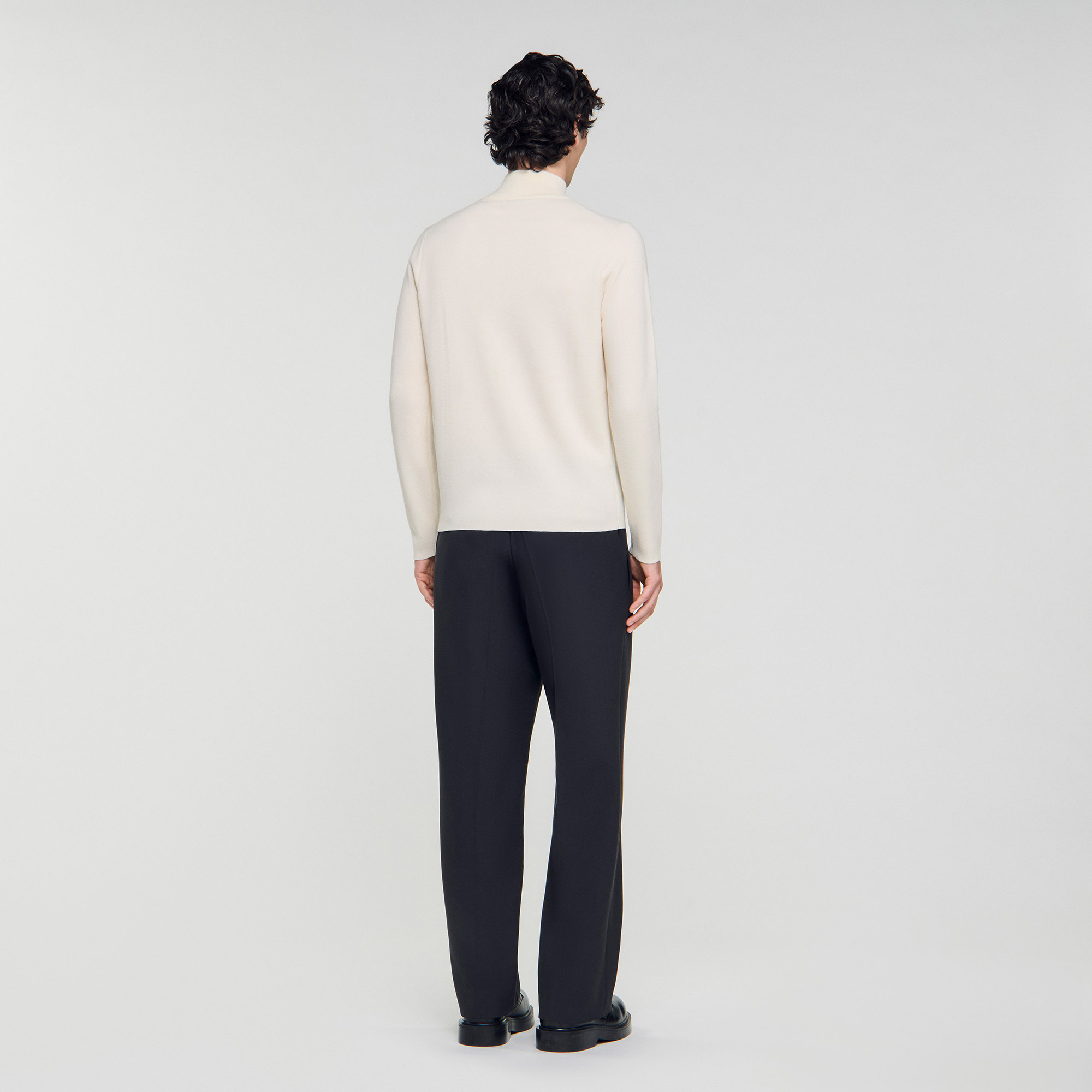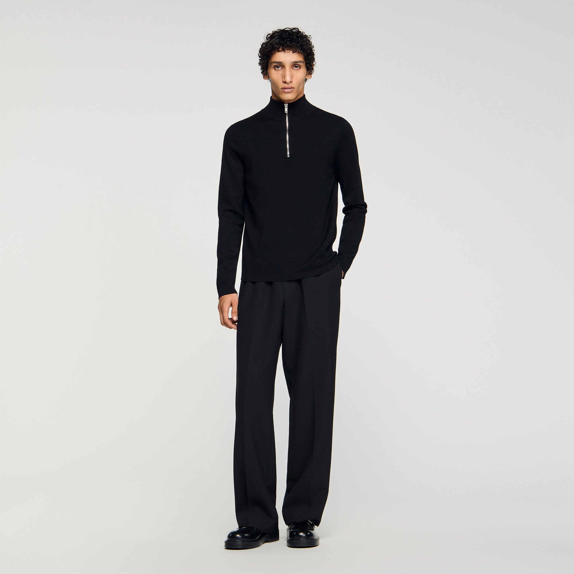 Sandro wool Sandro men's sweater Knitted sweater with high neck 100% wool Zip at the collar Ribbed trim finish True to size The wool in this item comes from extensive farming, which respects animal welfare and contributes to the preservation of local biodiversity..