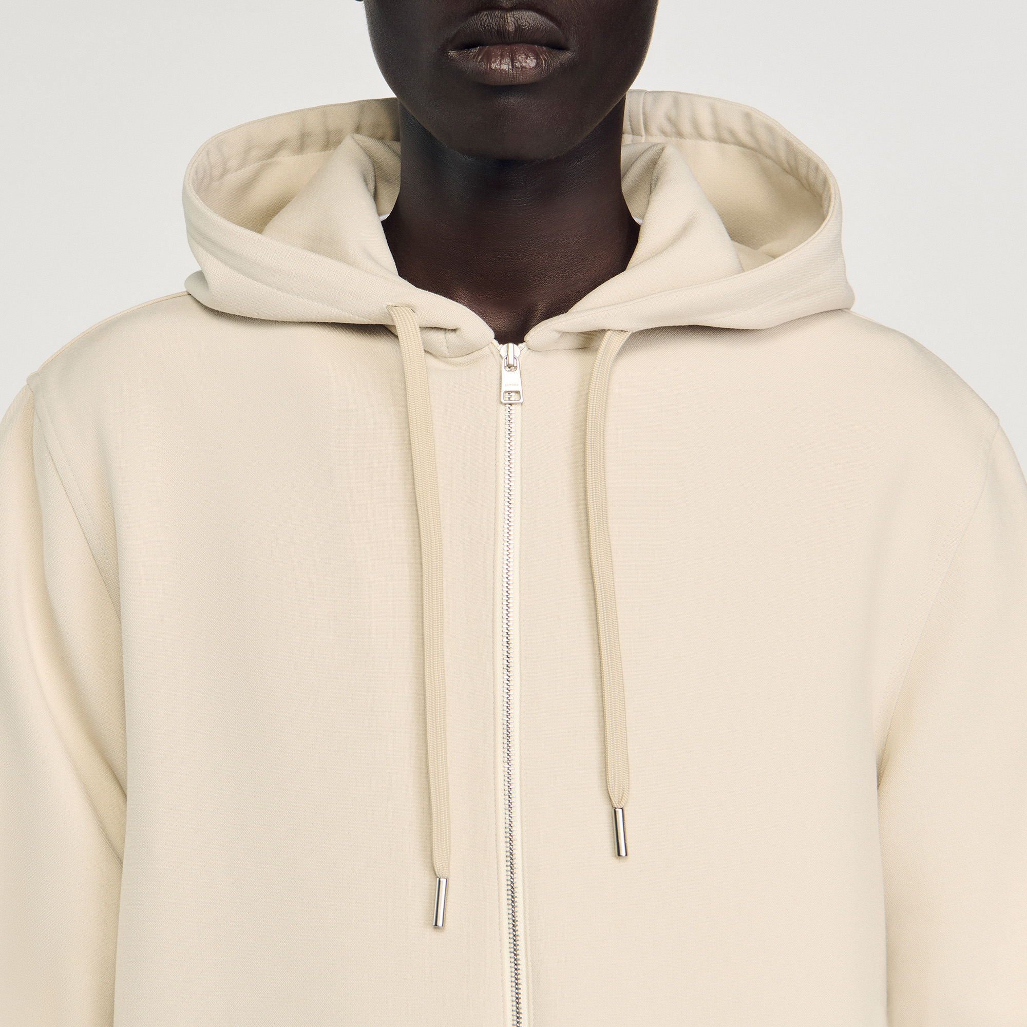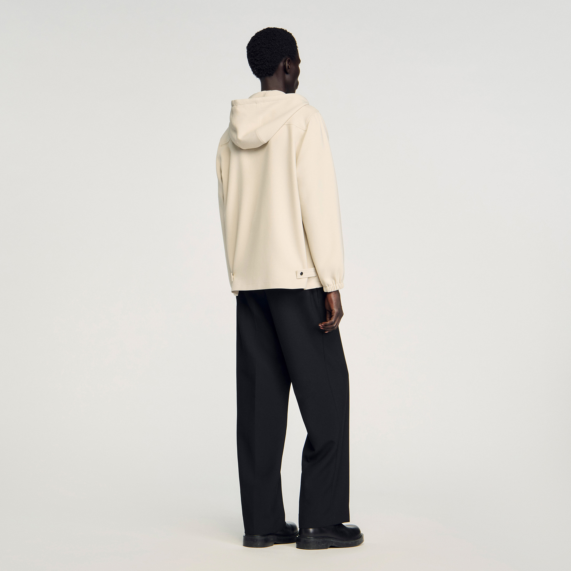 Sandro Men's stretch shirt jacket Long sleeves Zip opening Hood with drawstring Kangaroo pocket Gathered cuffs and hem True to size.