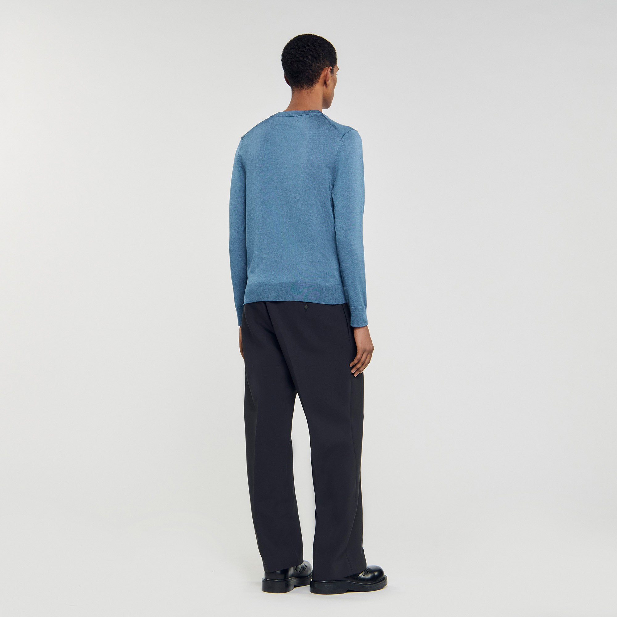 Sandro acetate Fine knit sweater with round neck and long sleeves.