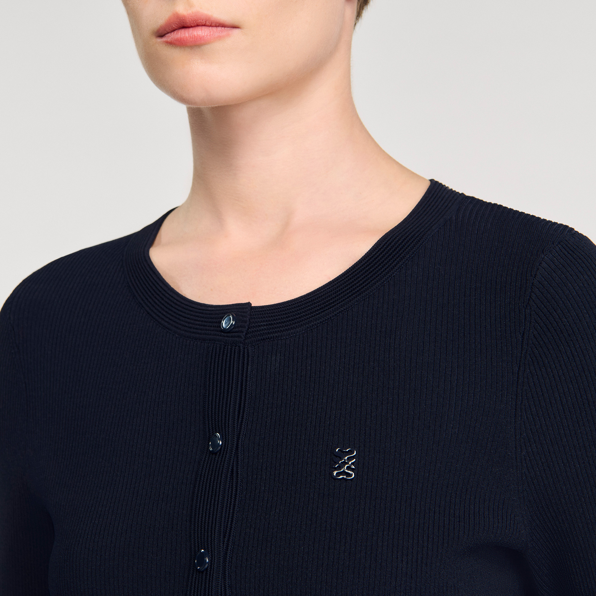 Sandro viscose Fitted fine rib knit cardigan with long sleeves, round neck and button fastening.
