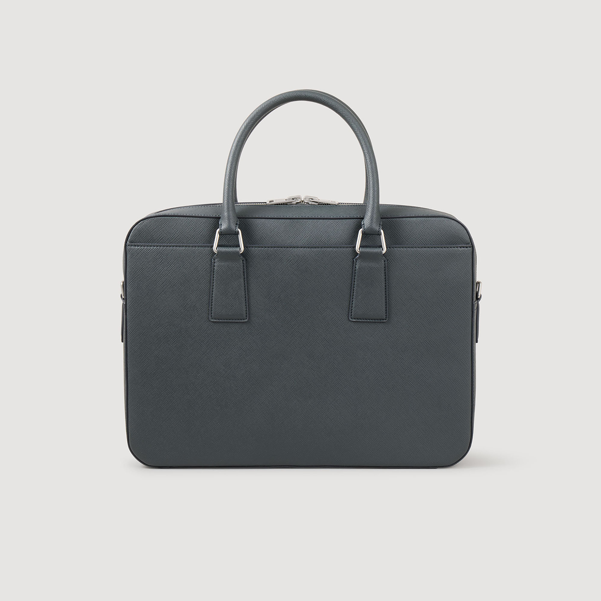 Sandro Men's briefcase Saffiano patterned reconstituted leather Large central compartment Embossed Sandro logo Laptop compartment Adjustable shoulder strap Technical fabric inner lining Label holder Dimensions: