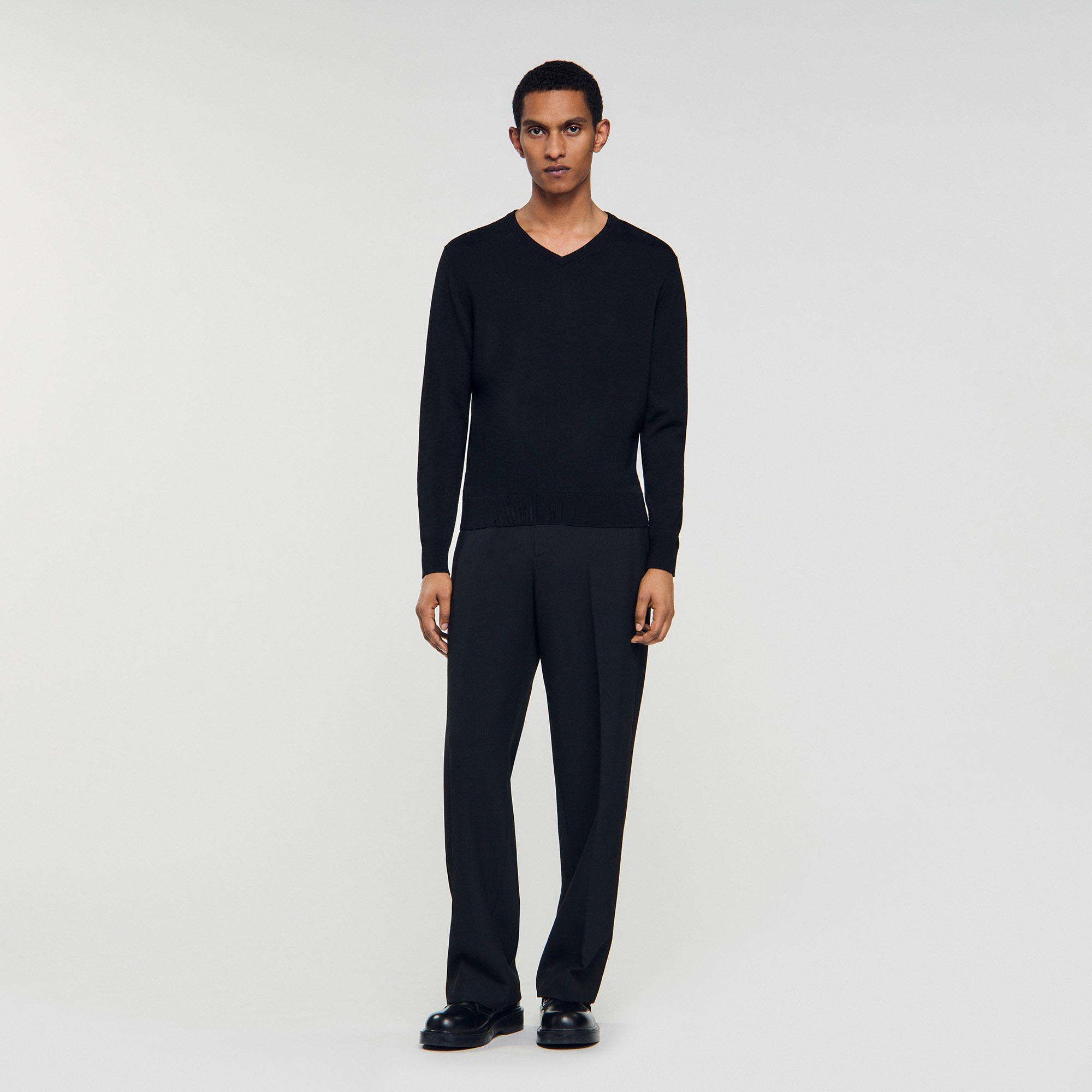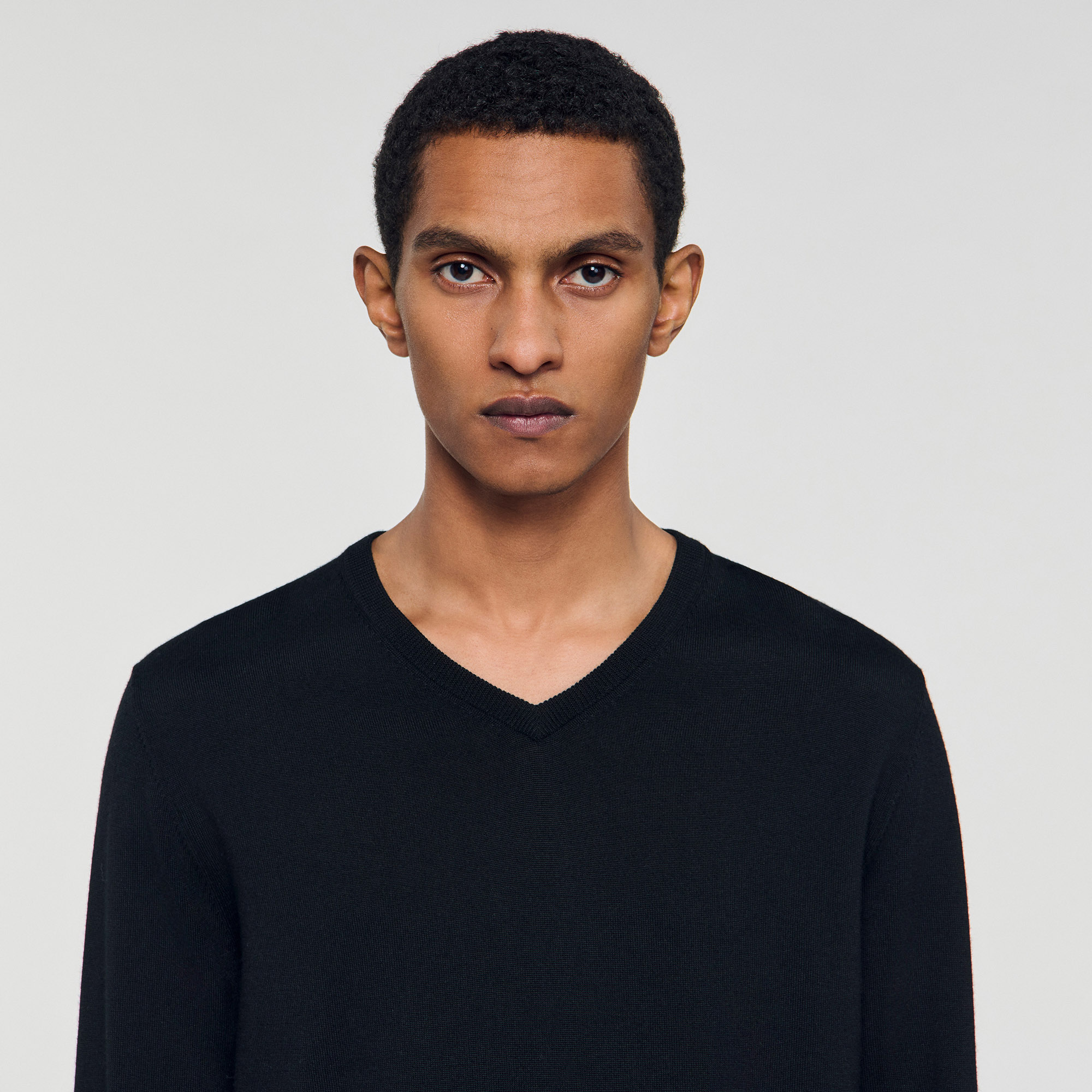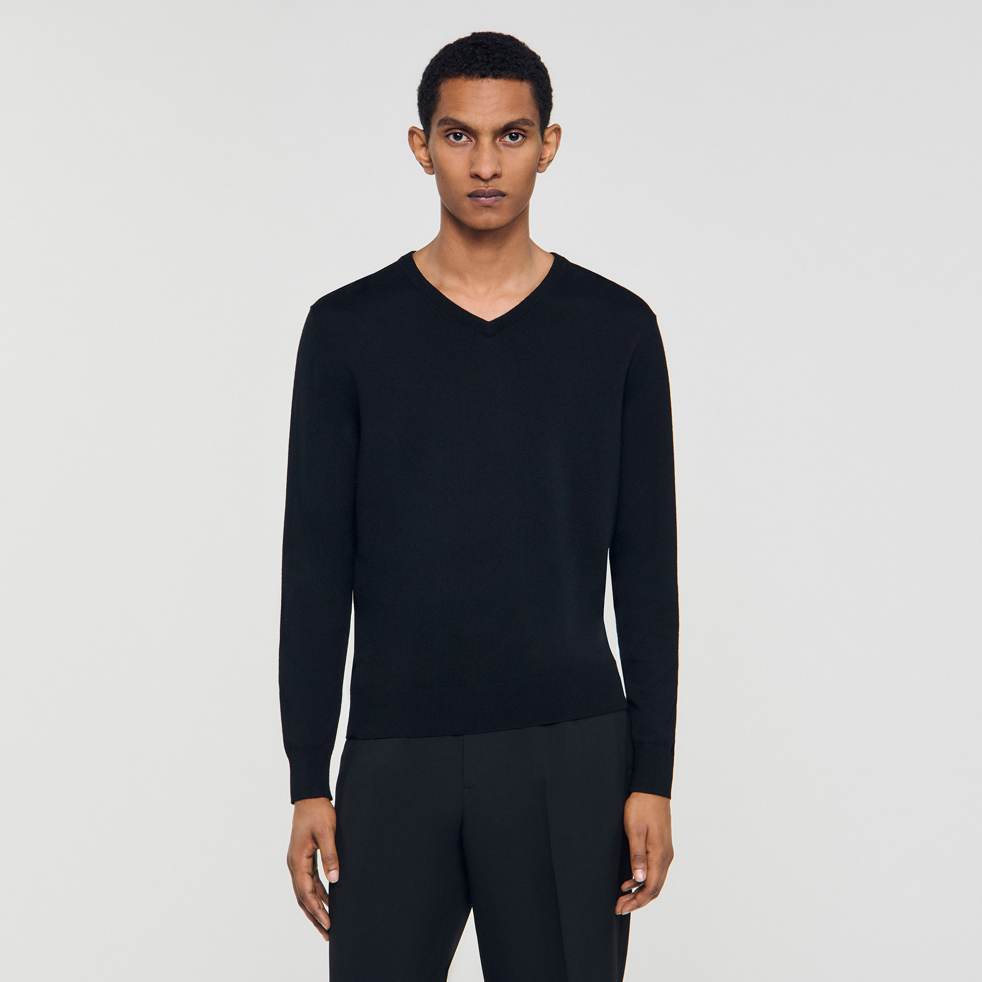 Sandro wool Very fine knit sweater with V-neck and long sleeves.