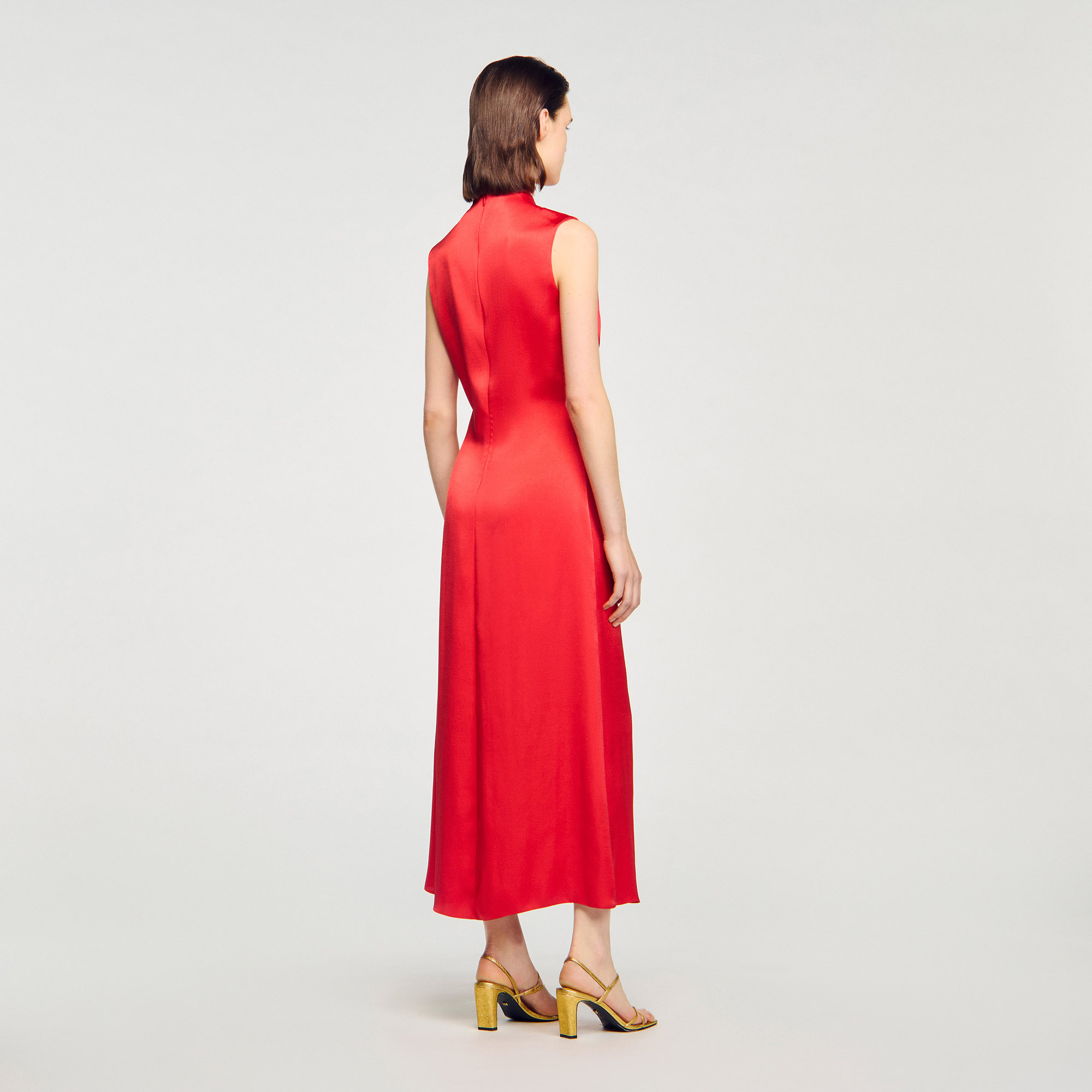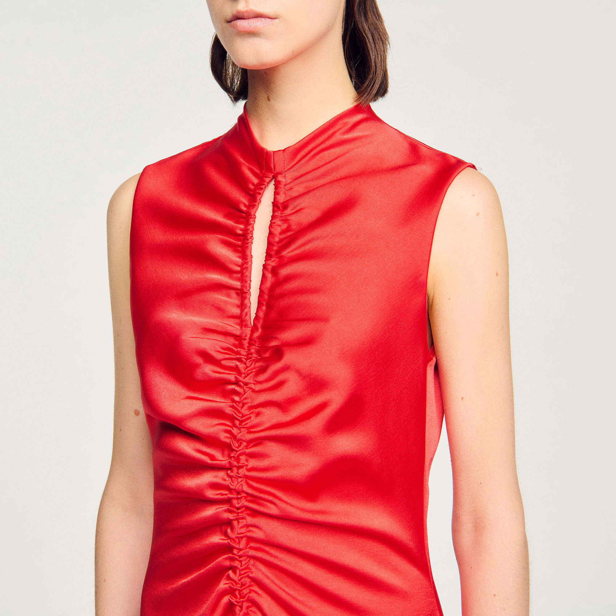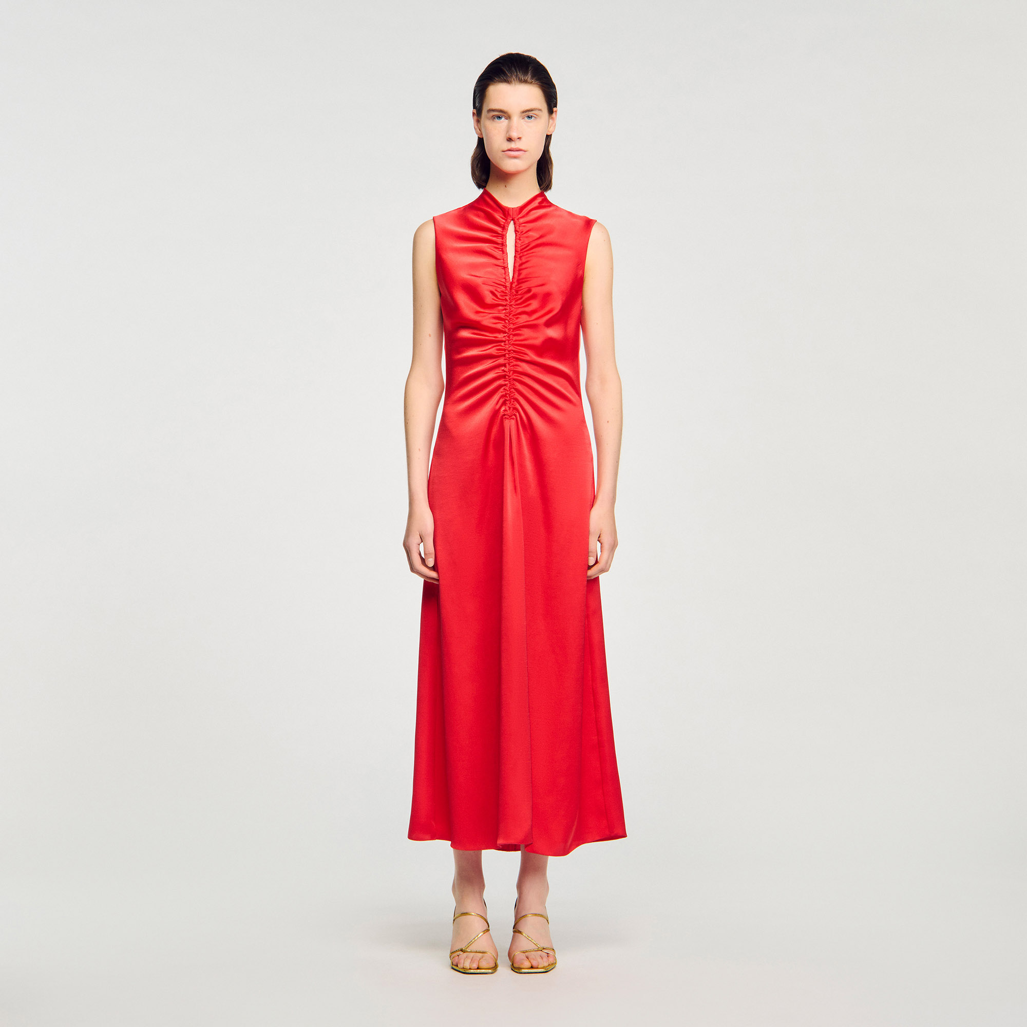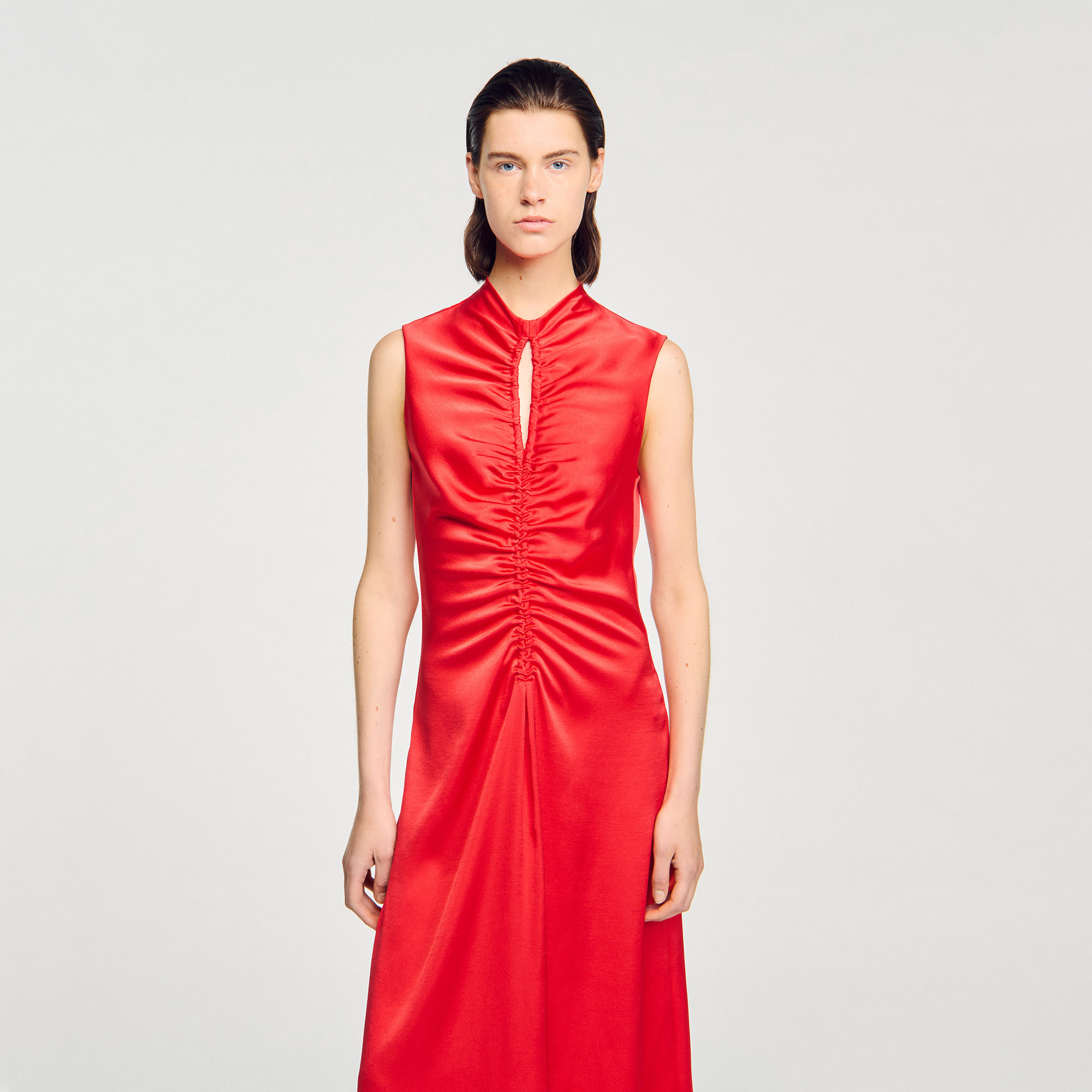 Sandro polyester Sleeveless satin-effect dress with a curved teardrop neckline and ruching on the front.