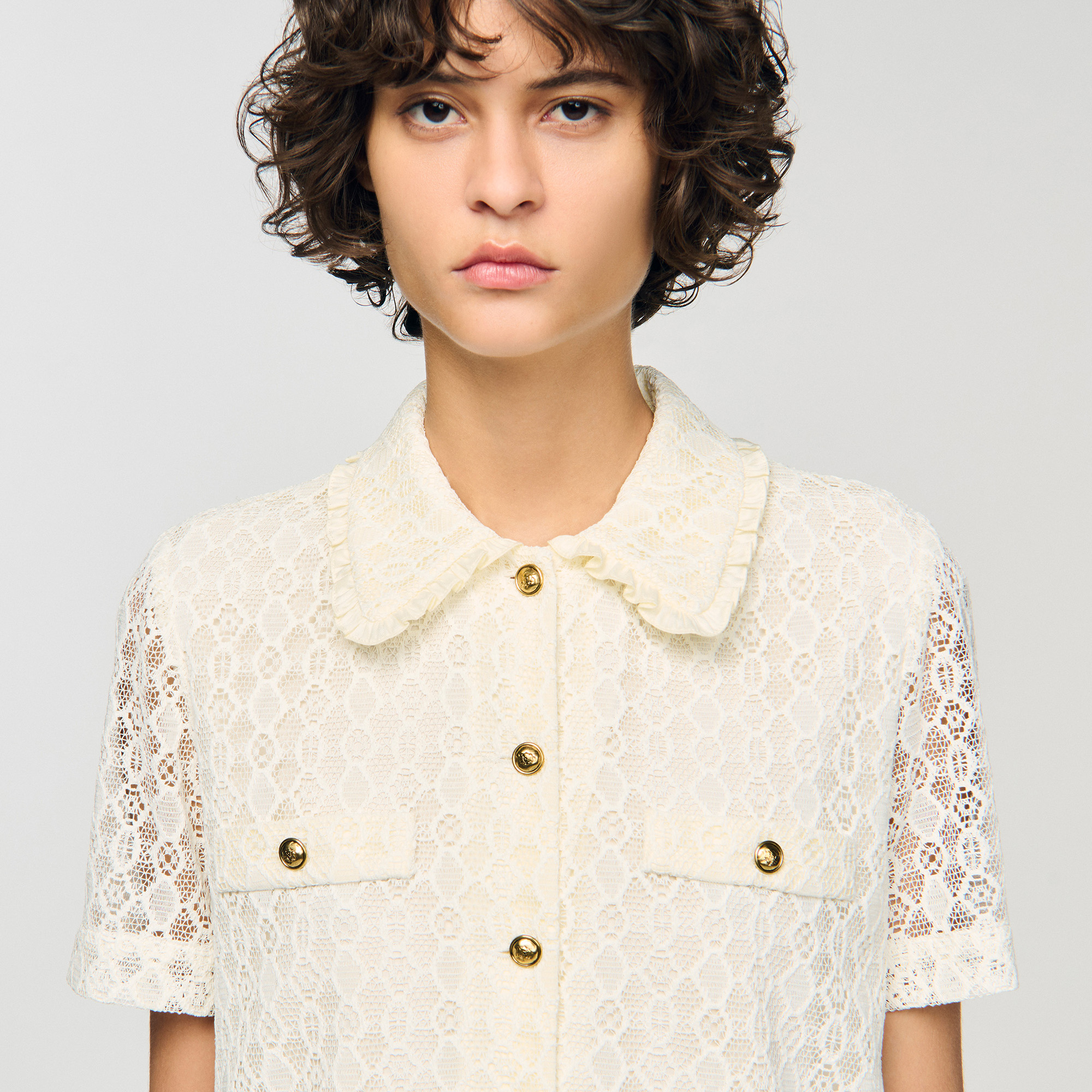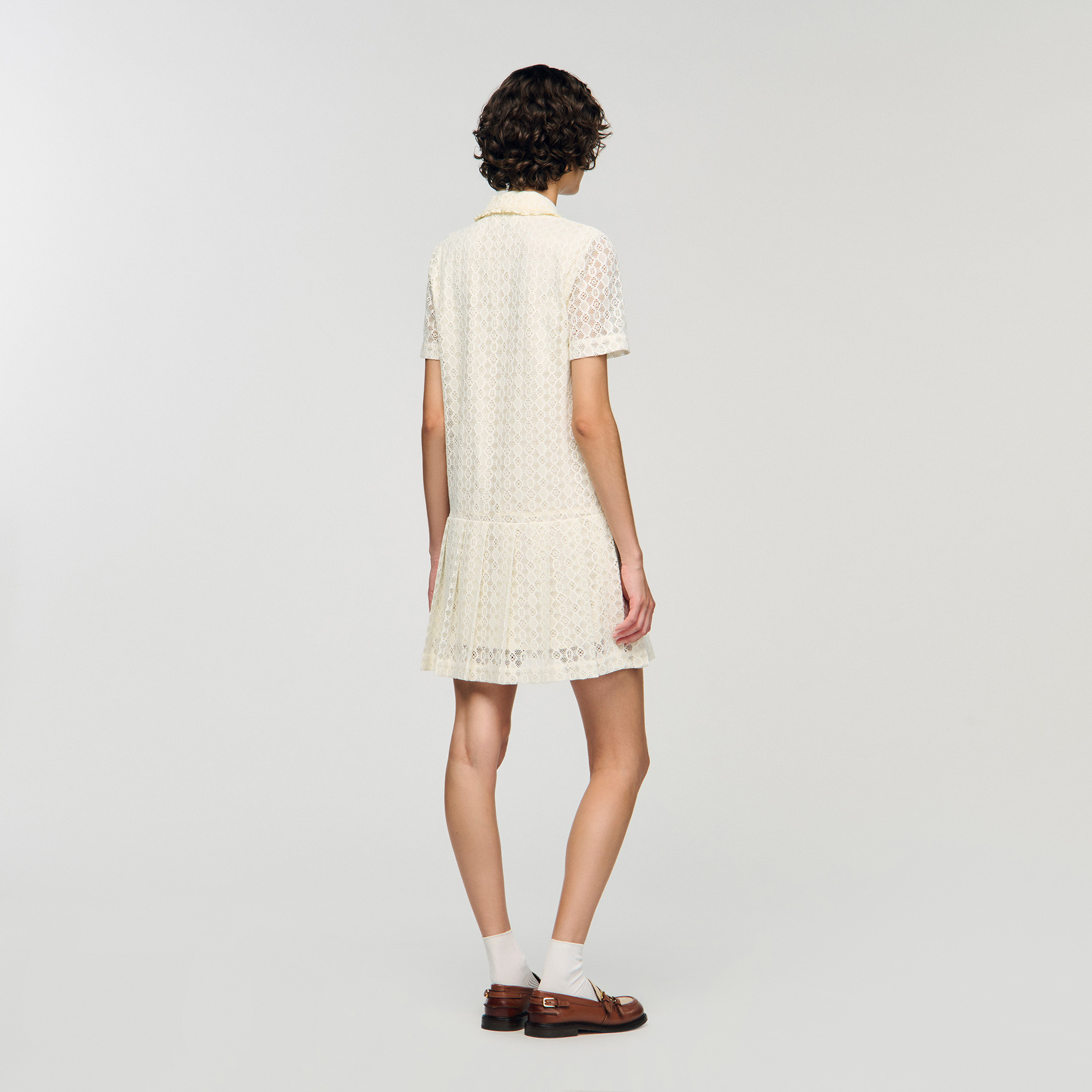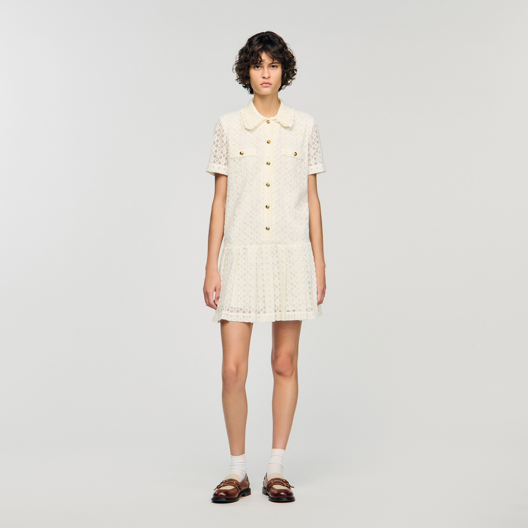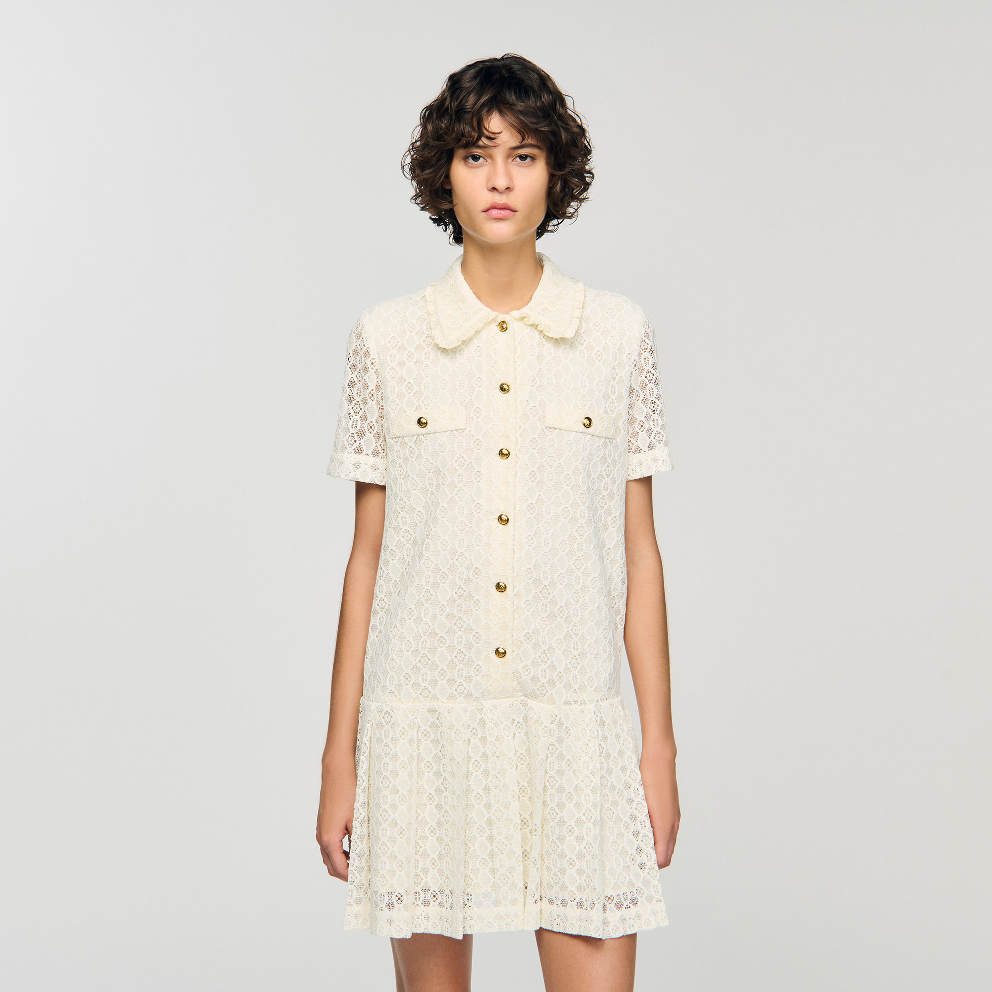 Sandro polyester Mini lace dress with a shirt collar, button fastening and short sleeves.