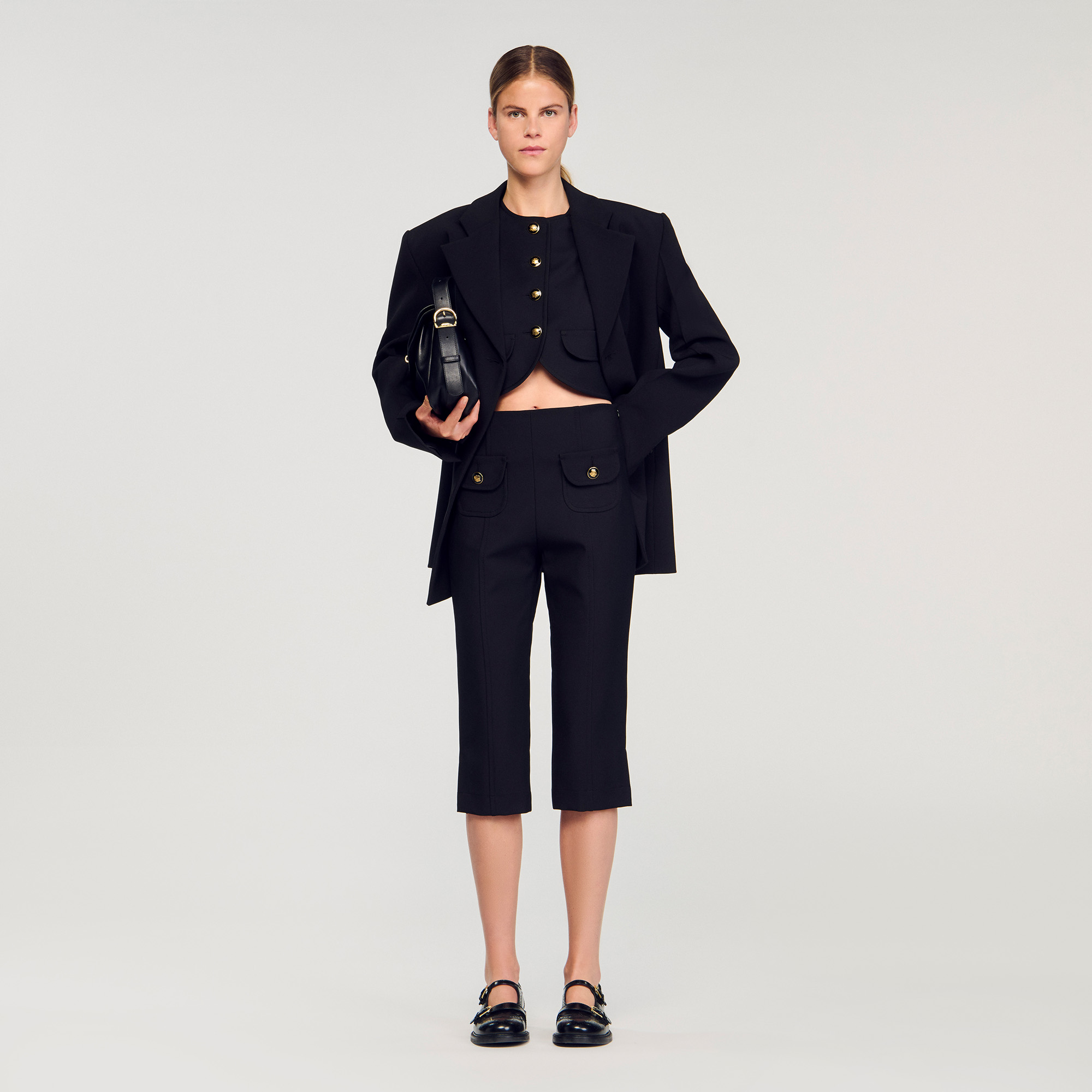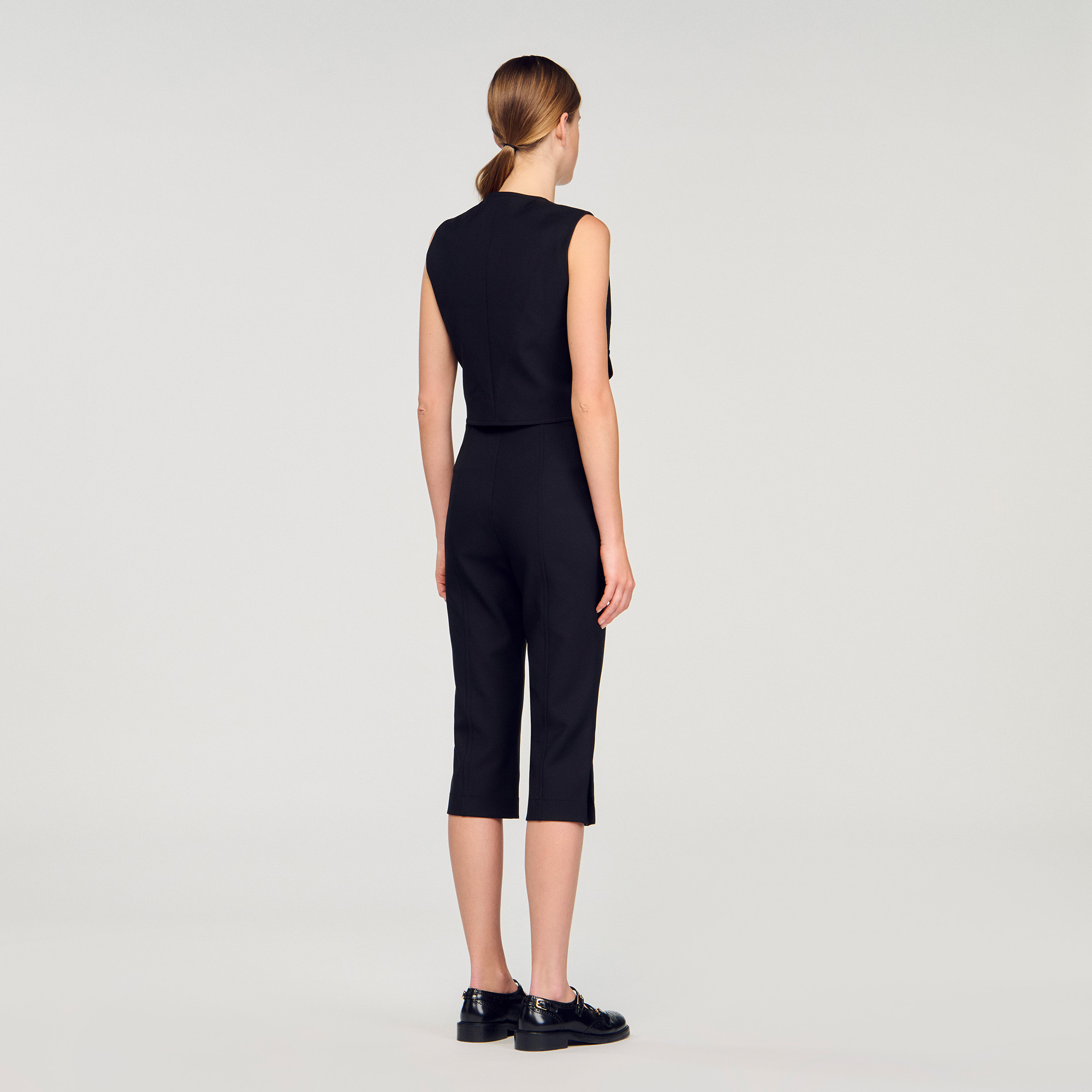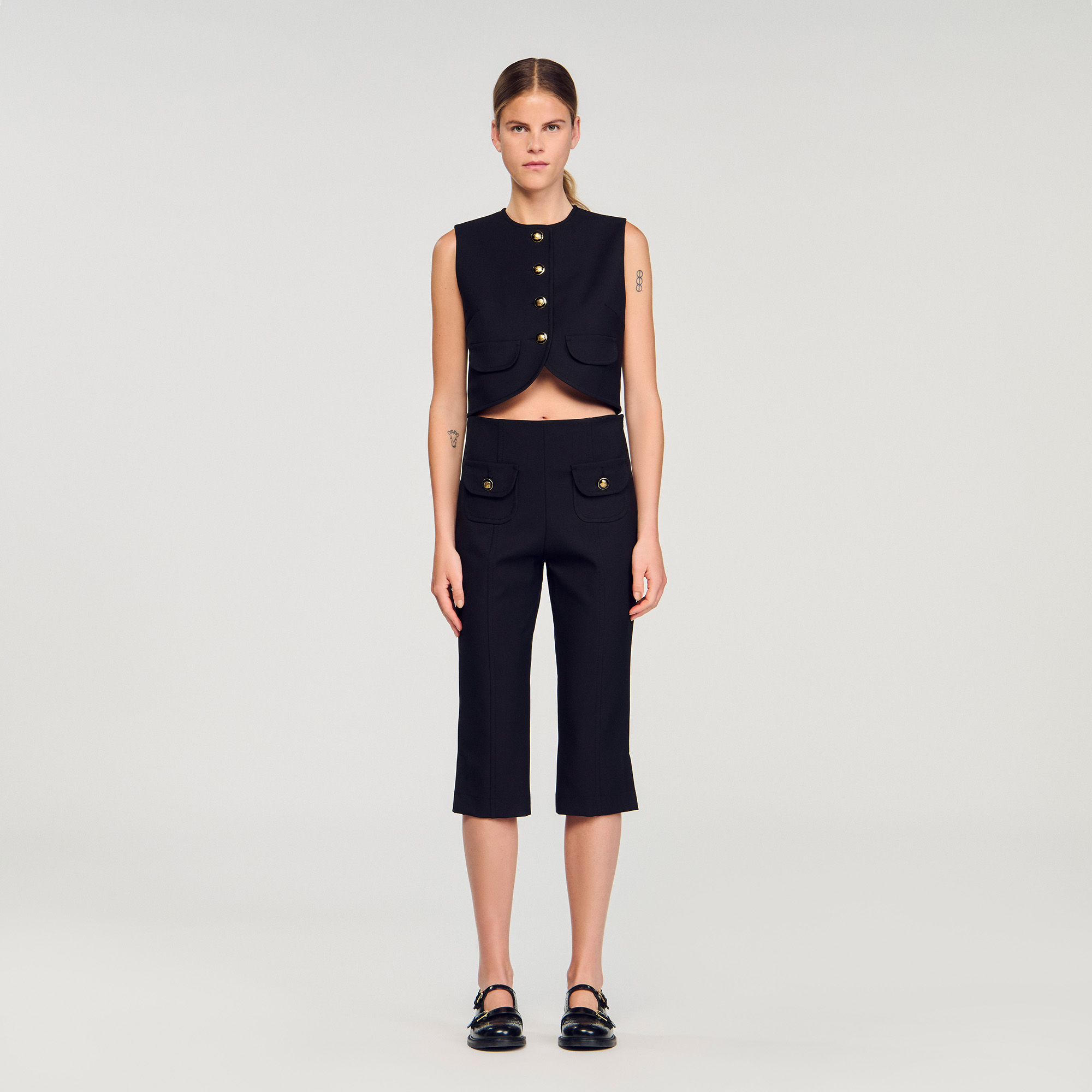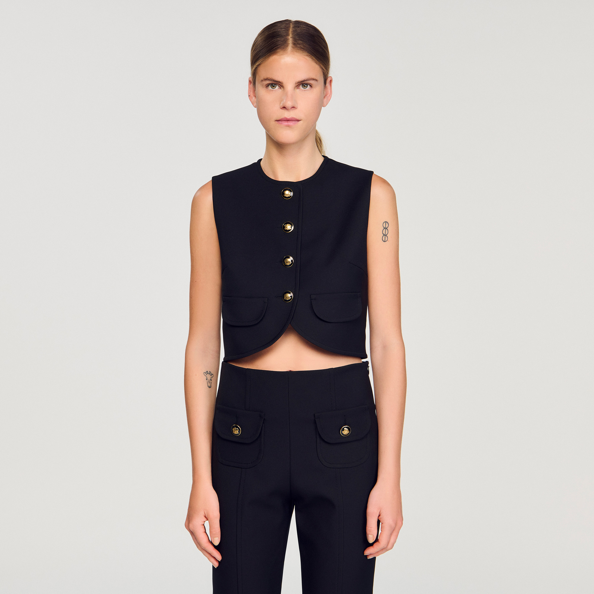 Sandro Women's plain crop top Sleeveless Round neck Button fastening at the front Flap patch pockets Designed for a cropped fit.