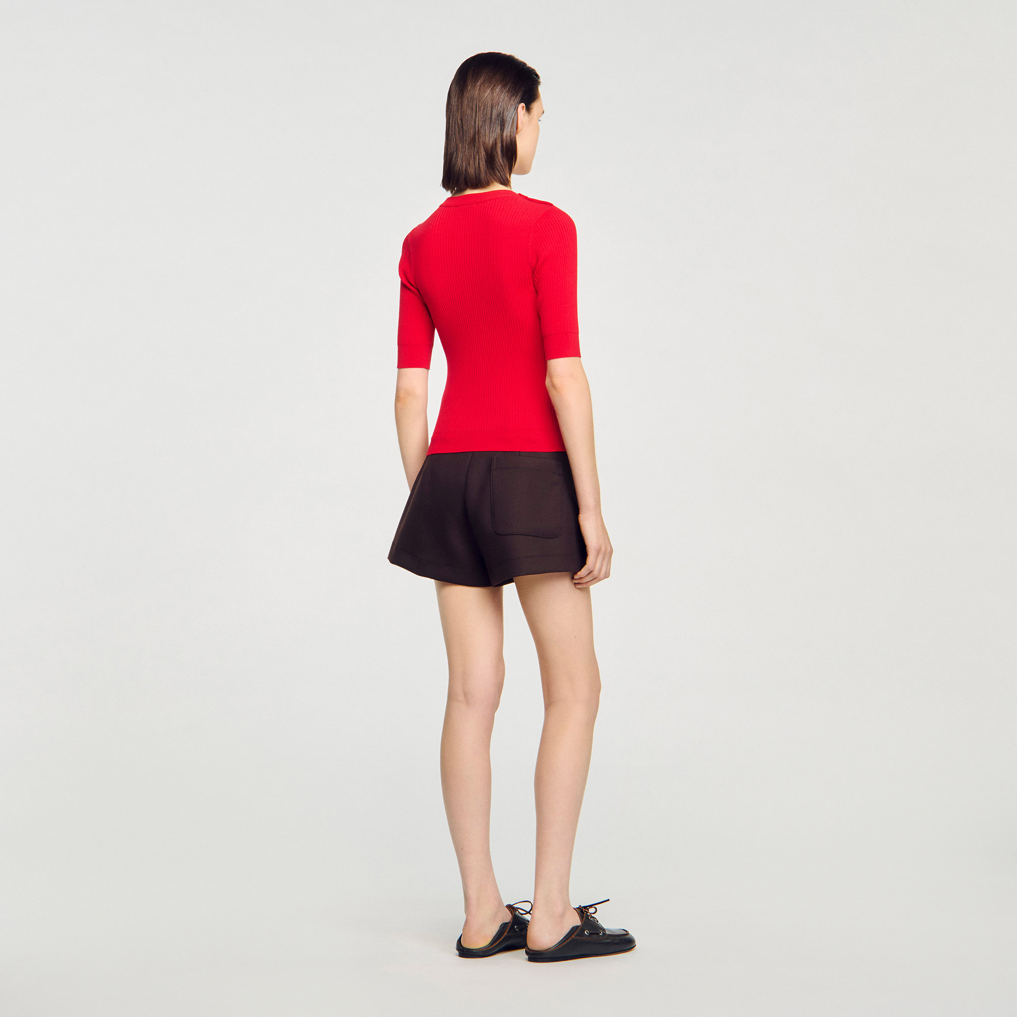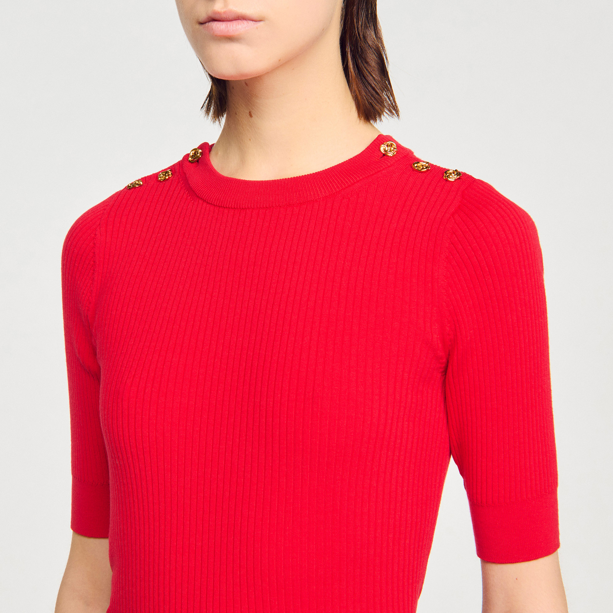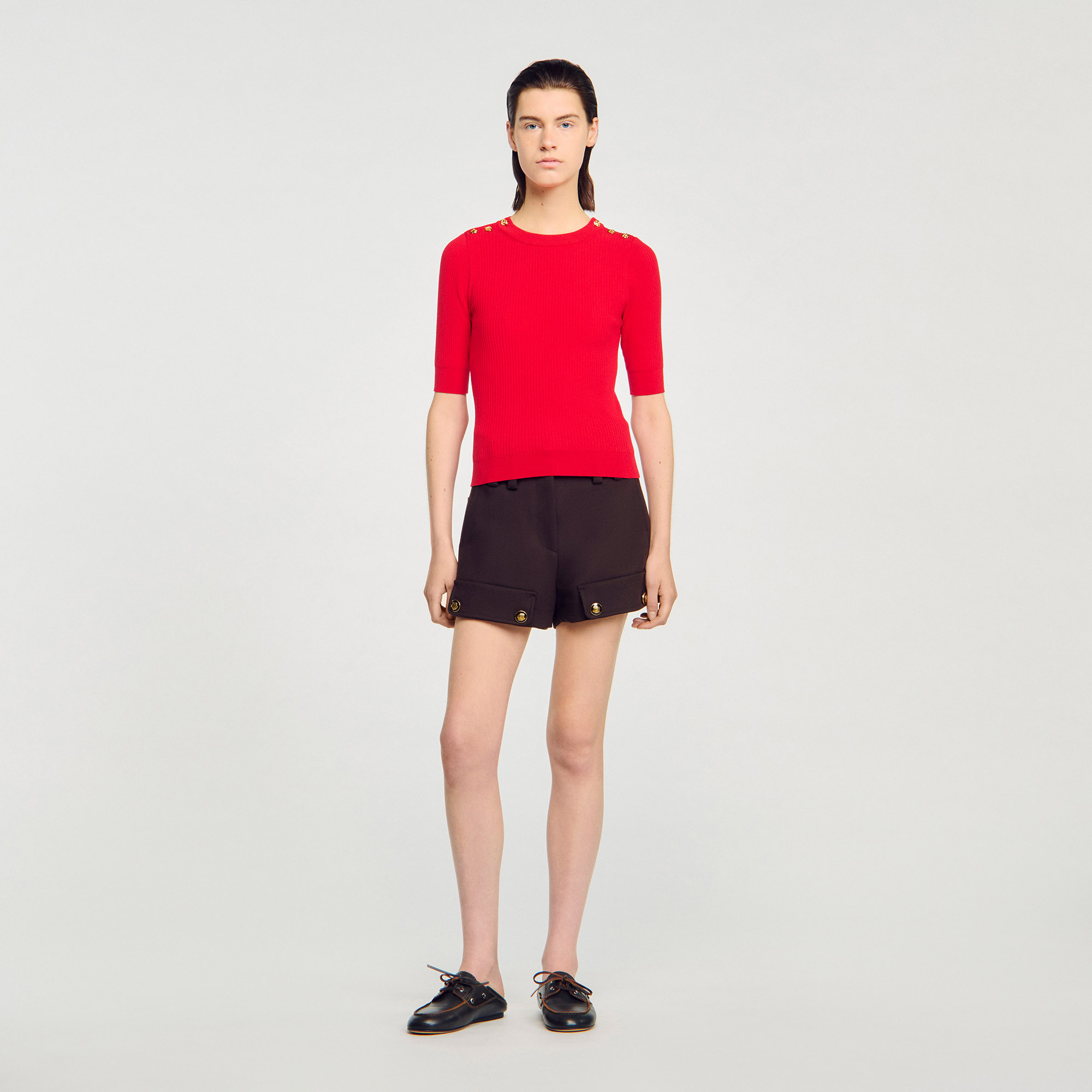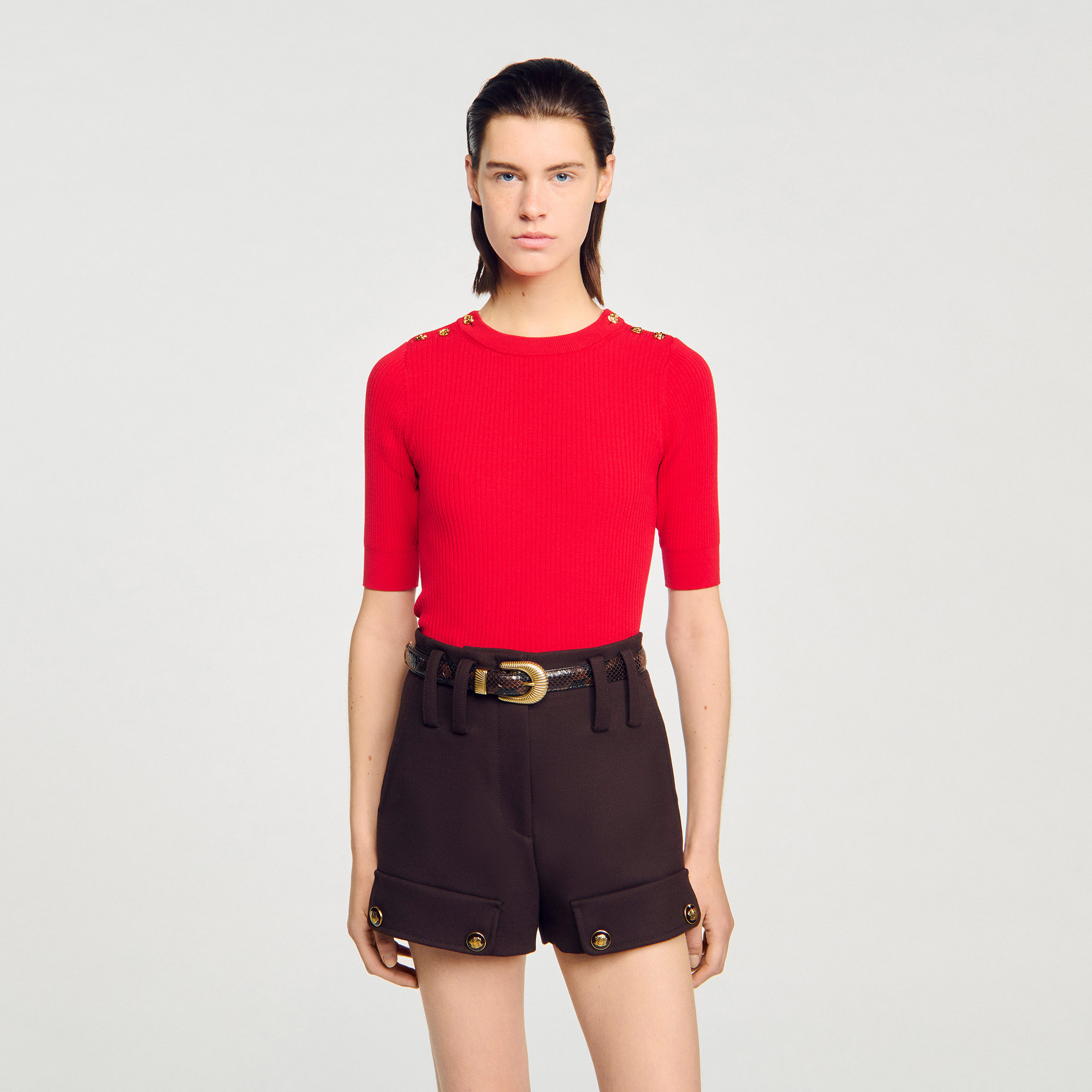 Sandro Women's rib knit sweater Round neck Short sleeves Shoulder button placket with decorative buttons Designed for a slim fit.