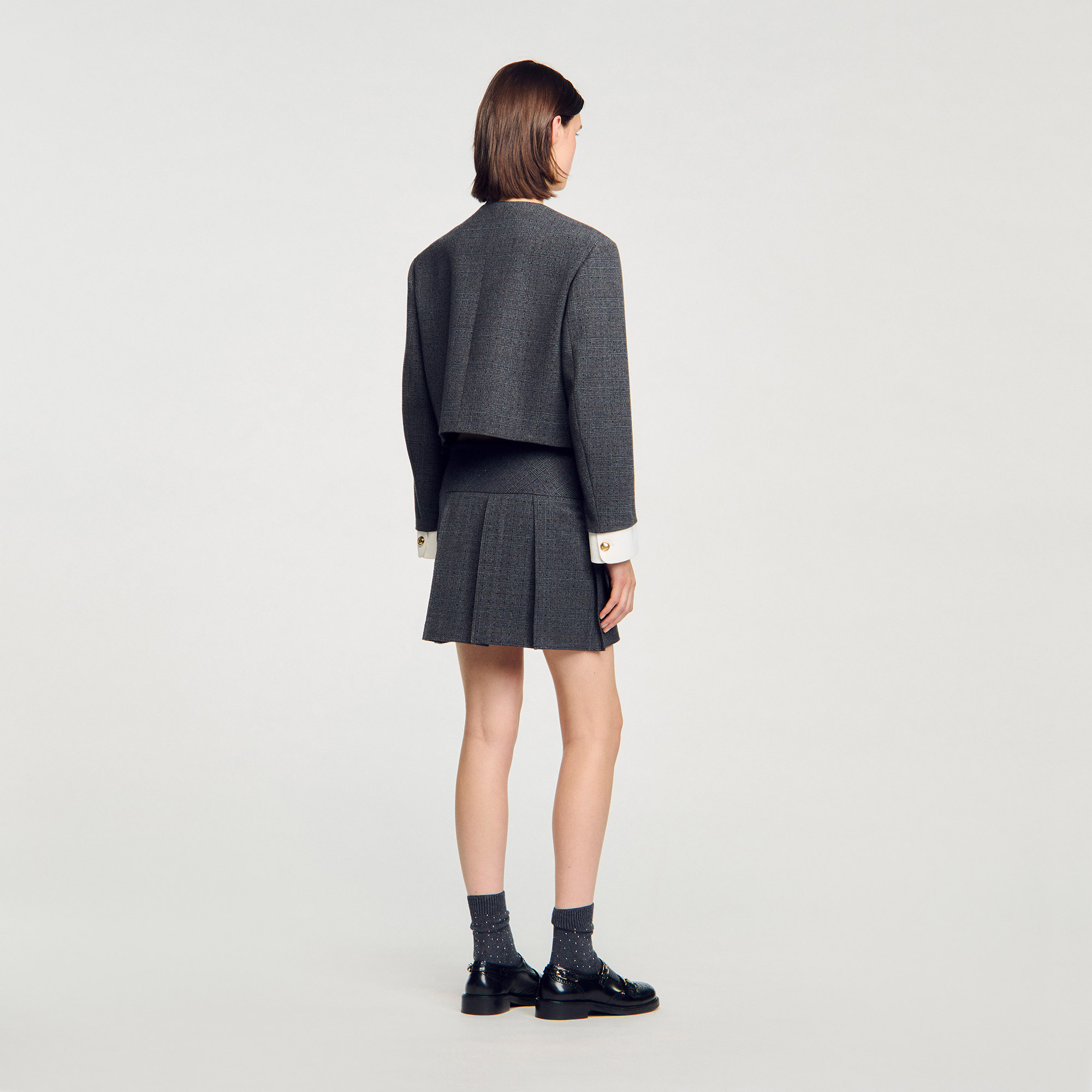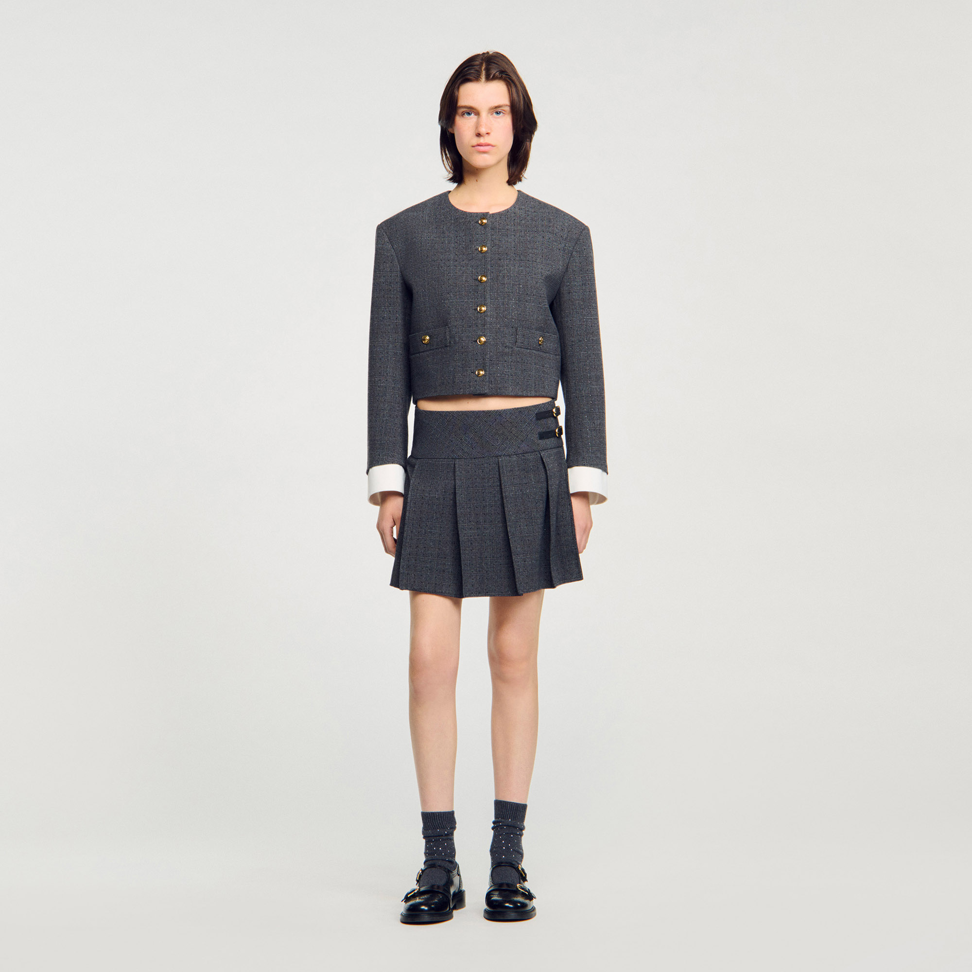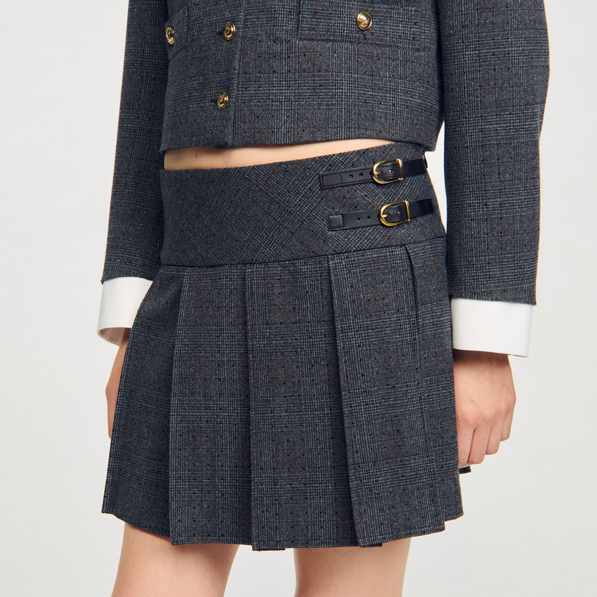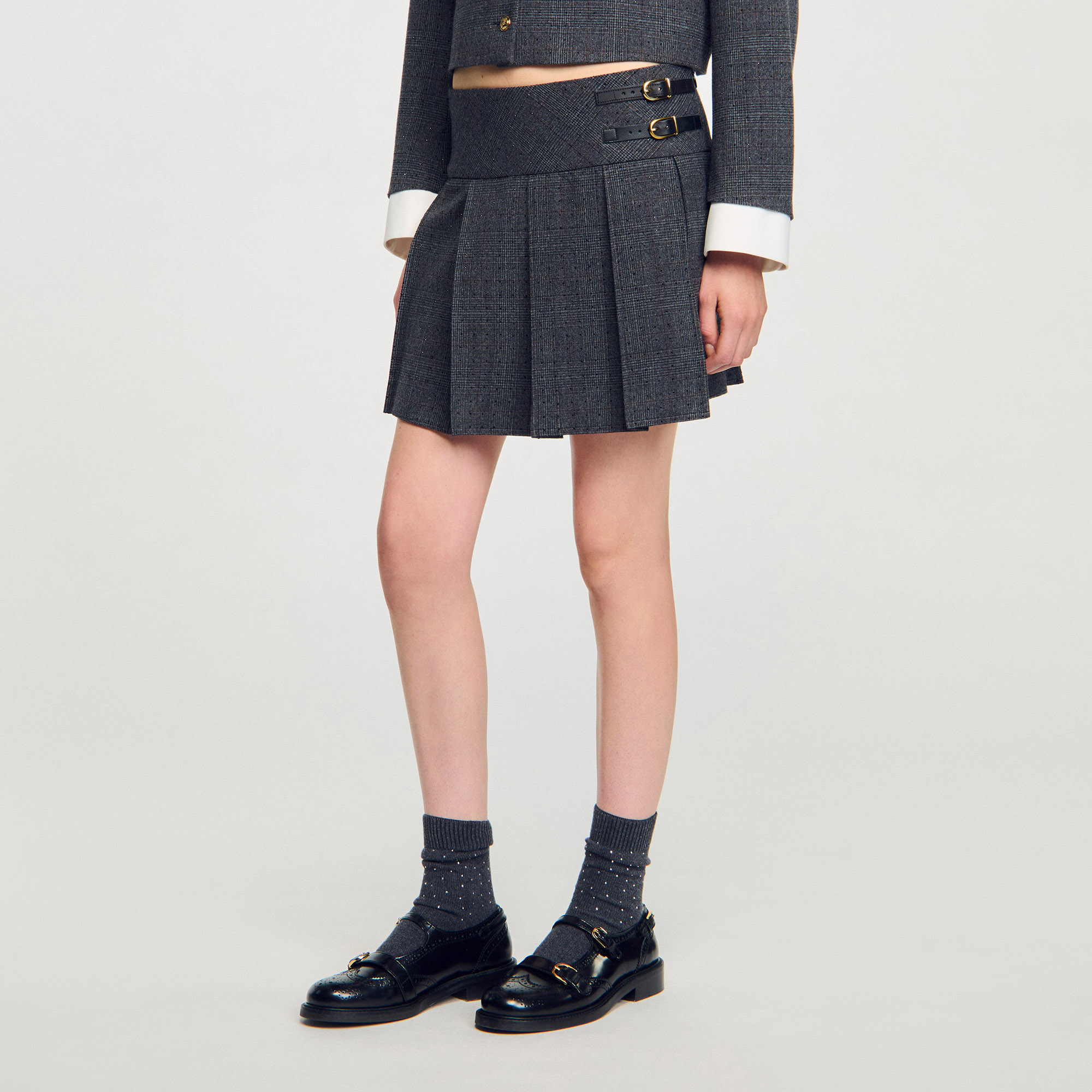 Sandro Women's mini pleated skirt Checks and rhinestones Decorative tabs Side zip fastening Designed for a flared fit.