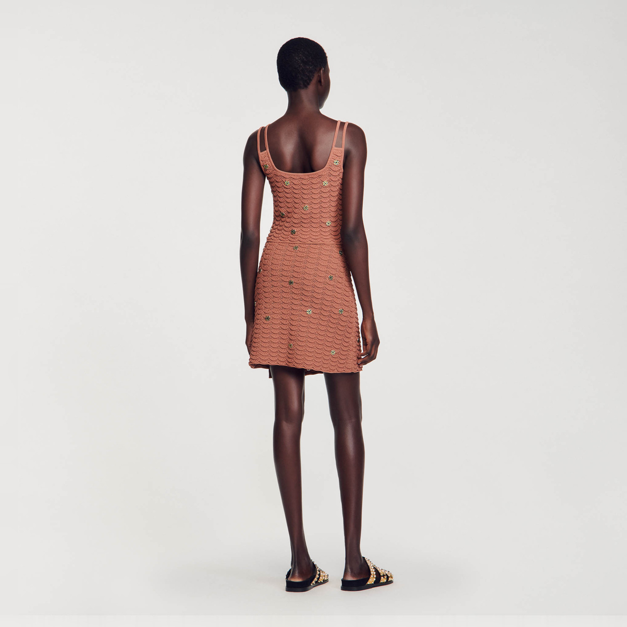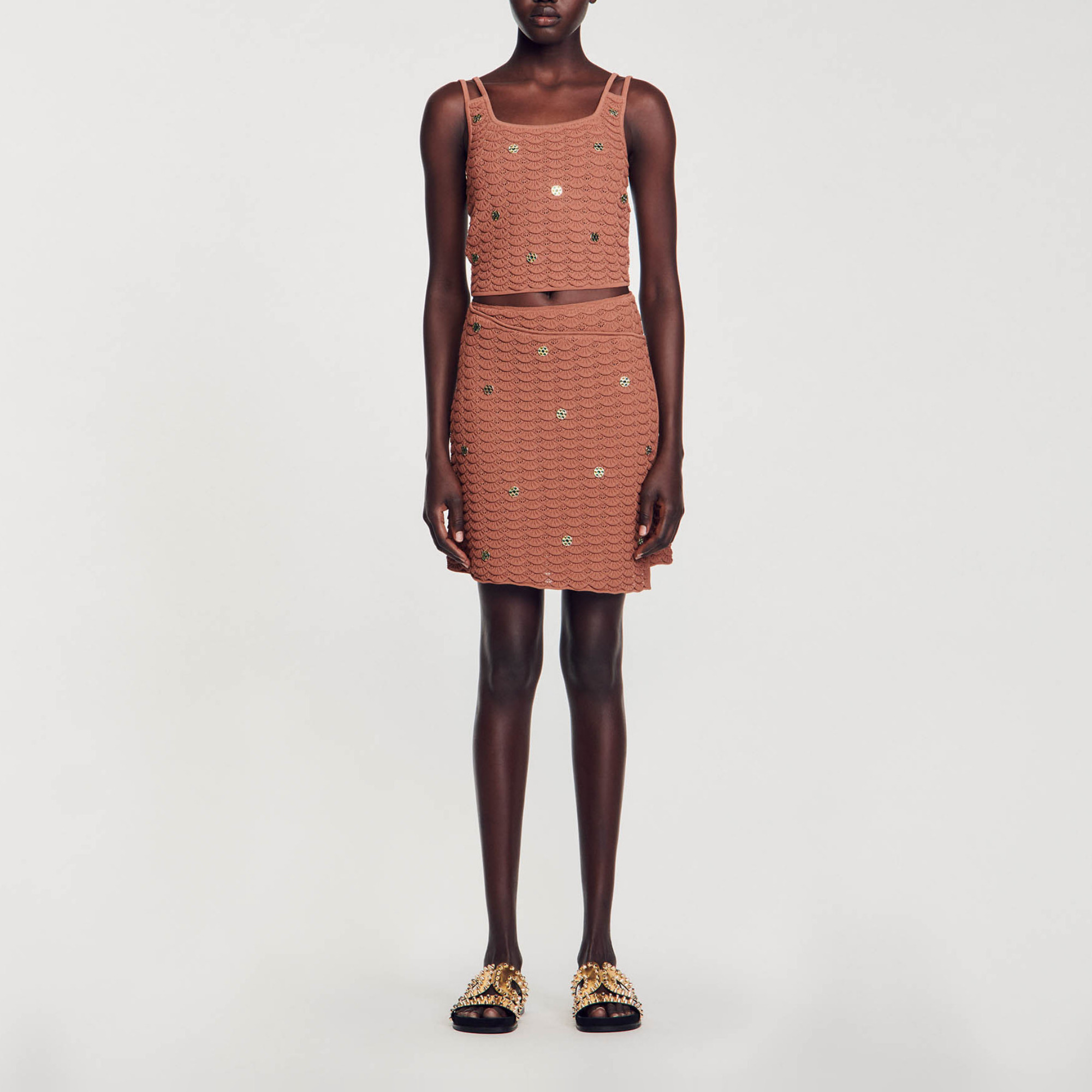 Sandro Women's textured knit short skirt Metal pieces with crystals Front panel This skirt matches the jumper.