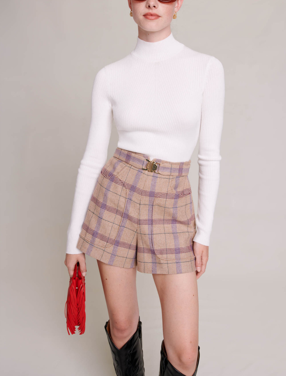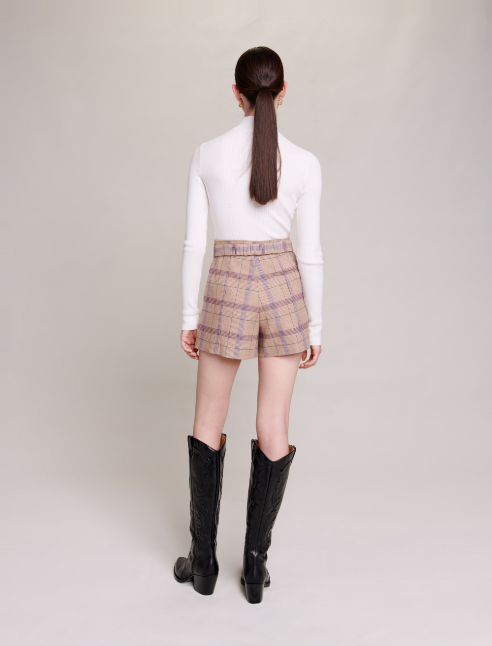 Structured Prince of Wales shorts Belt with buckle 2 pockets.