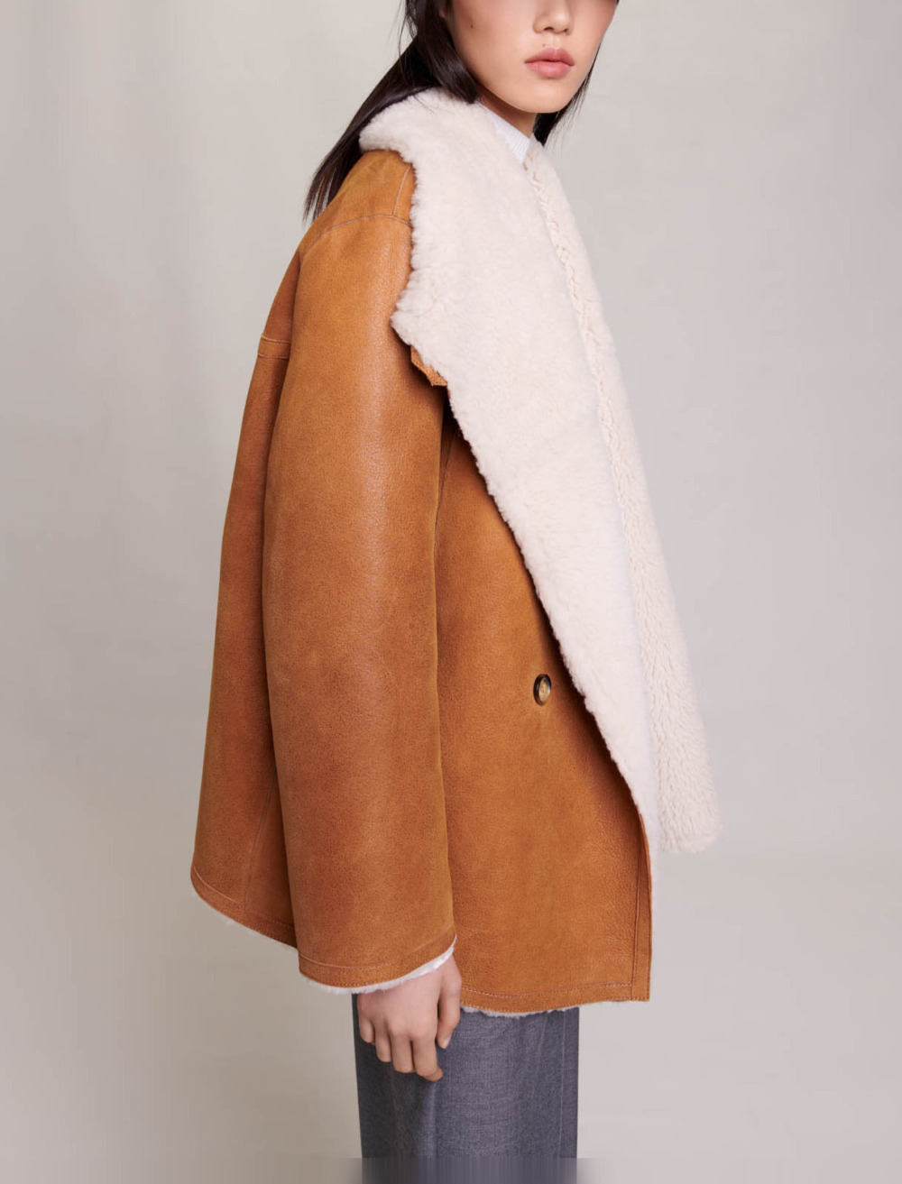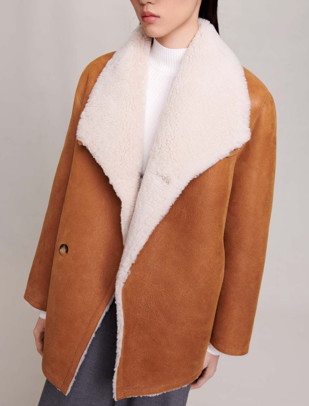 Maje Woman's leather Short reversible coat for Fall/Winter, in color Camel / Brown