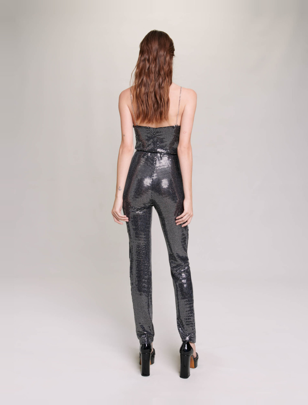 Maje Woman's polyamide Sequinned jumpsuit for Fall/Winter, in color Silver / Grey