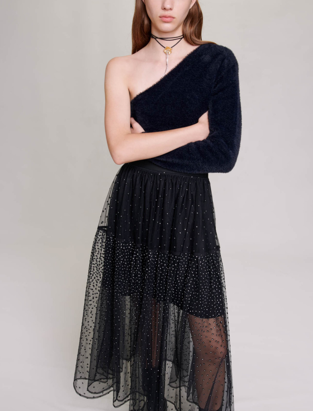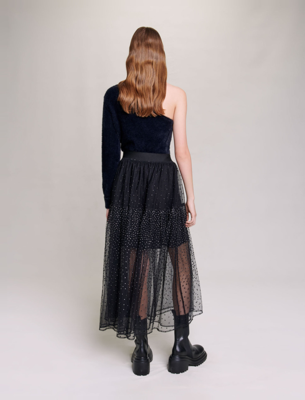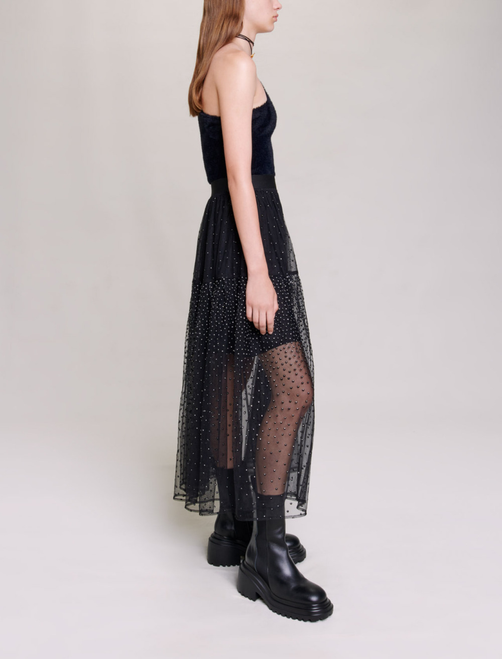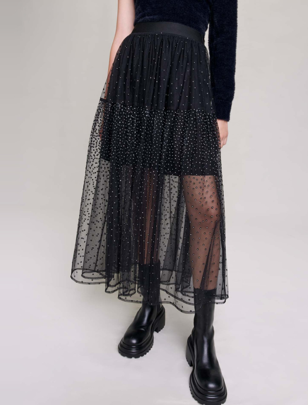 Maje Woman's polyamide Glittery spotted long tulle skirt for Fall/Winter, in color Black / Black