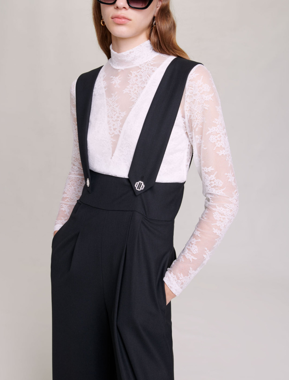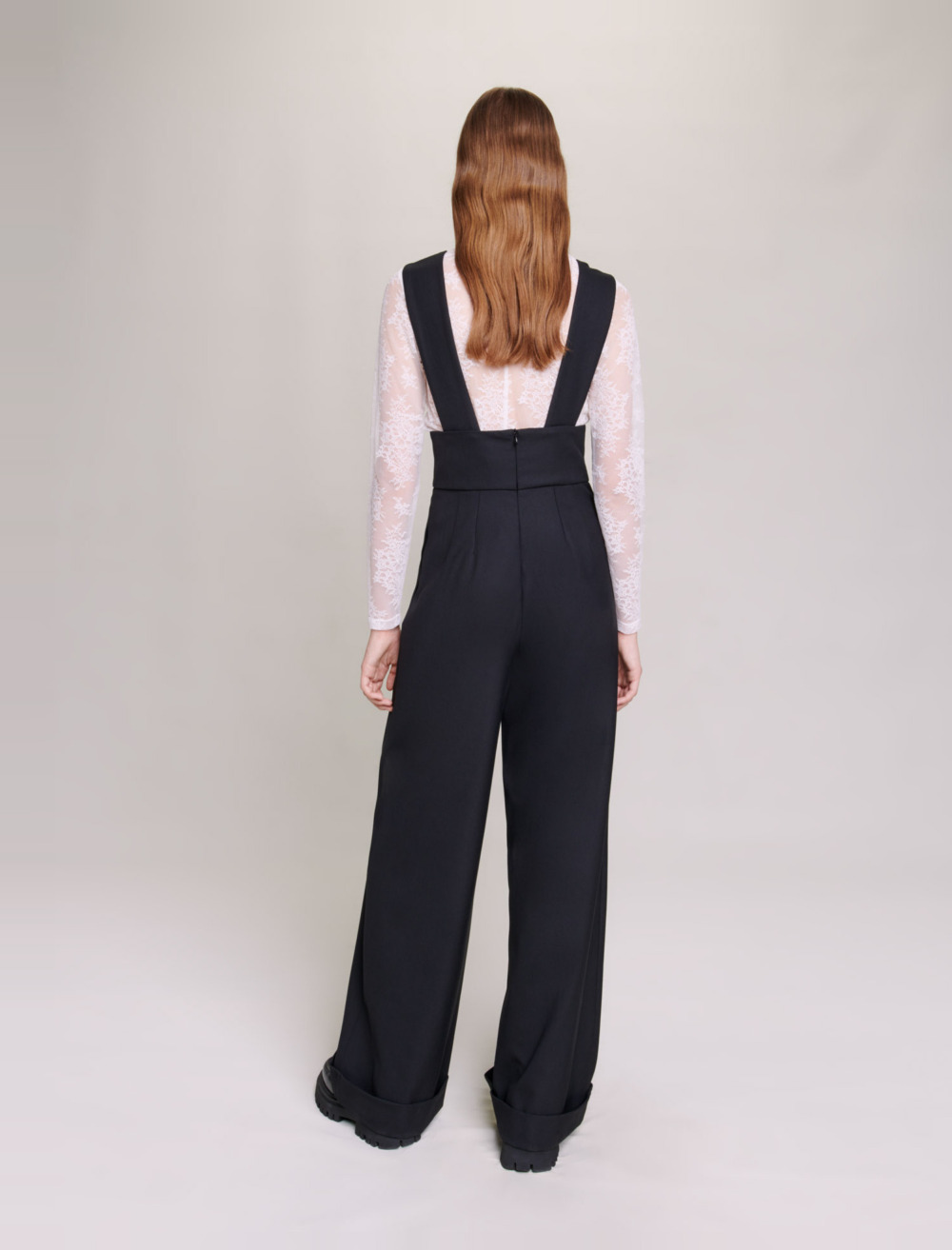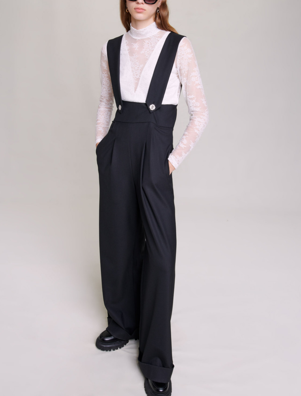 Maje Woman's polyester Wide-leg trousers with braces for Fall/Winter, in color Black / Black