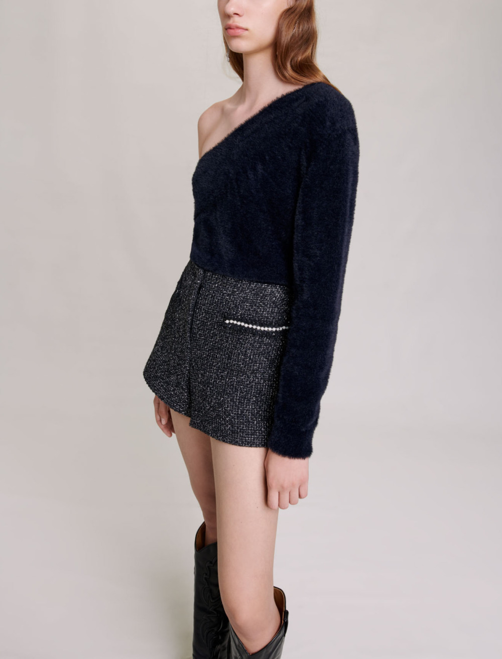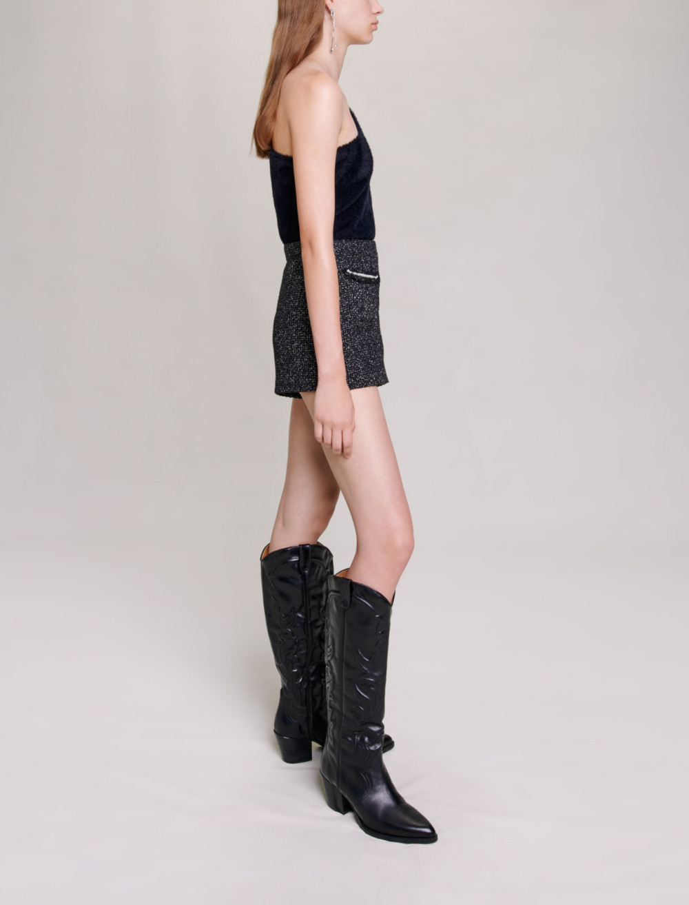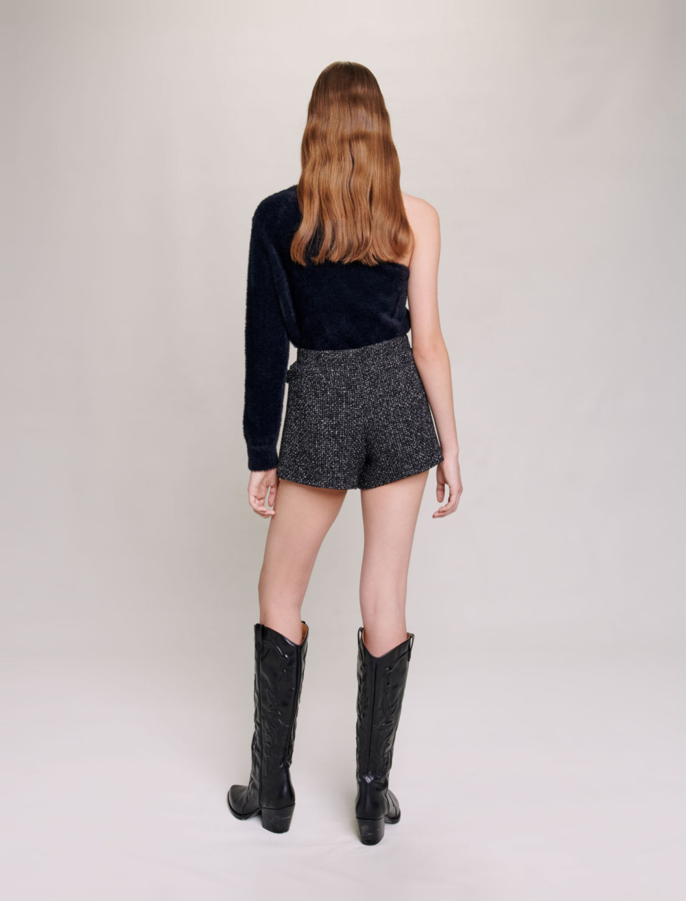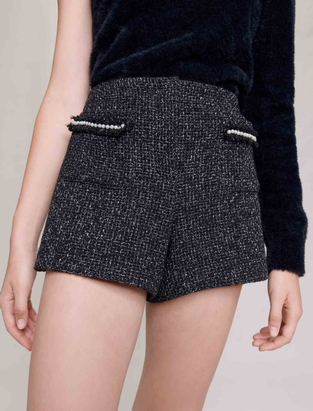 Maje Woman's cotton Glittery tweed shorts for Fall/Winter, in color Black/Glitter /