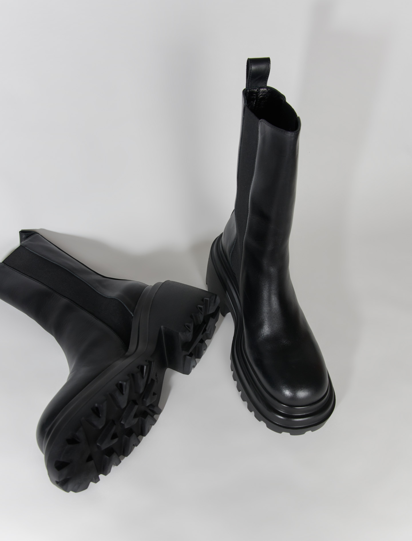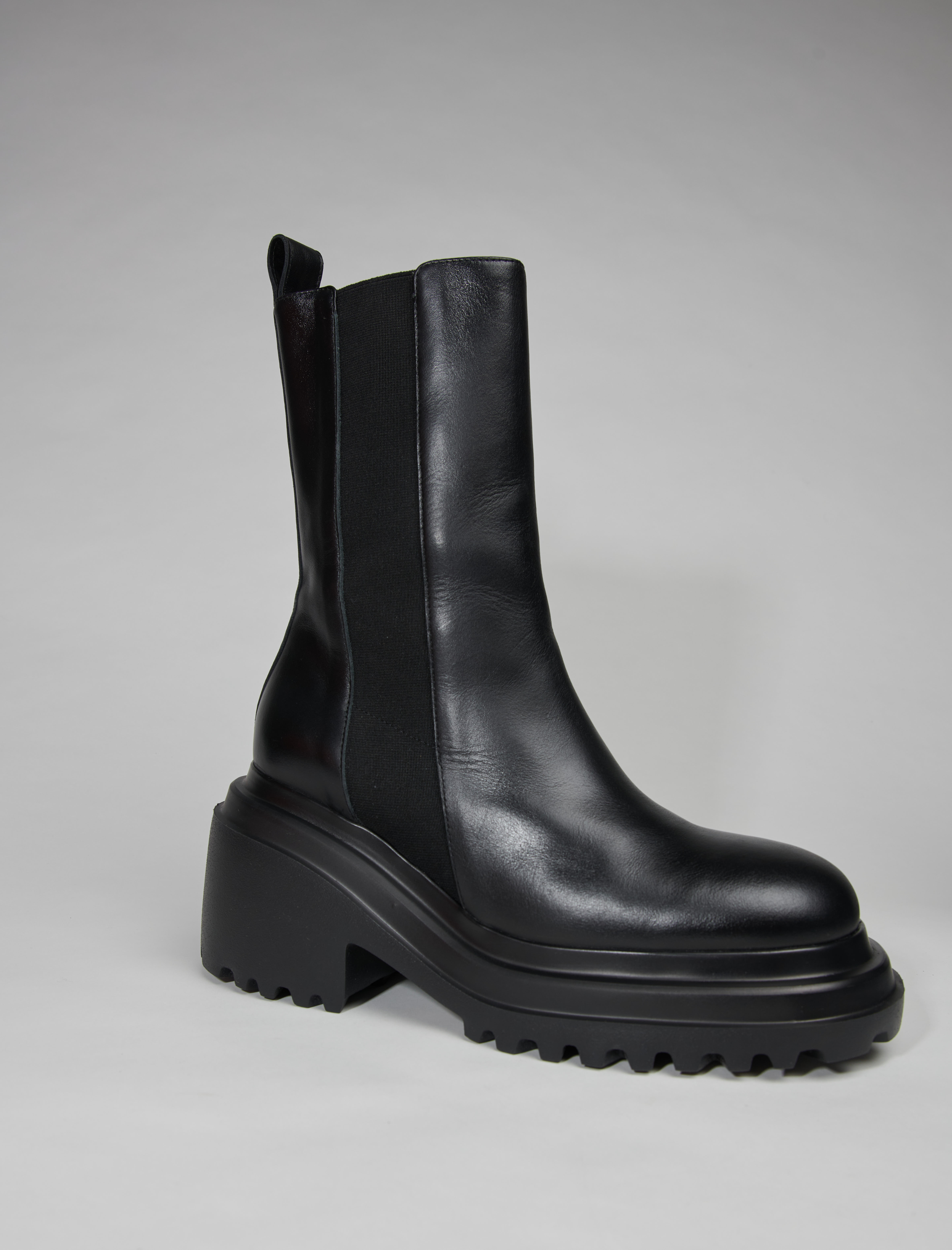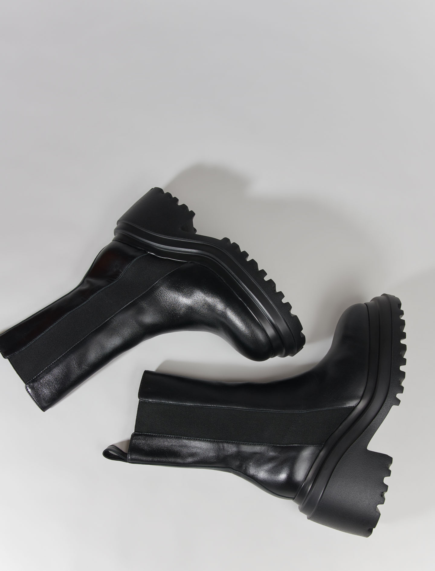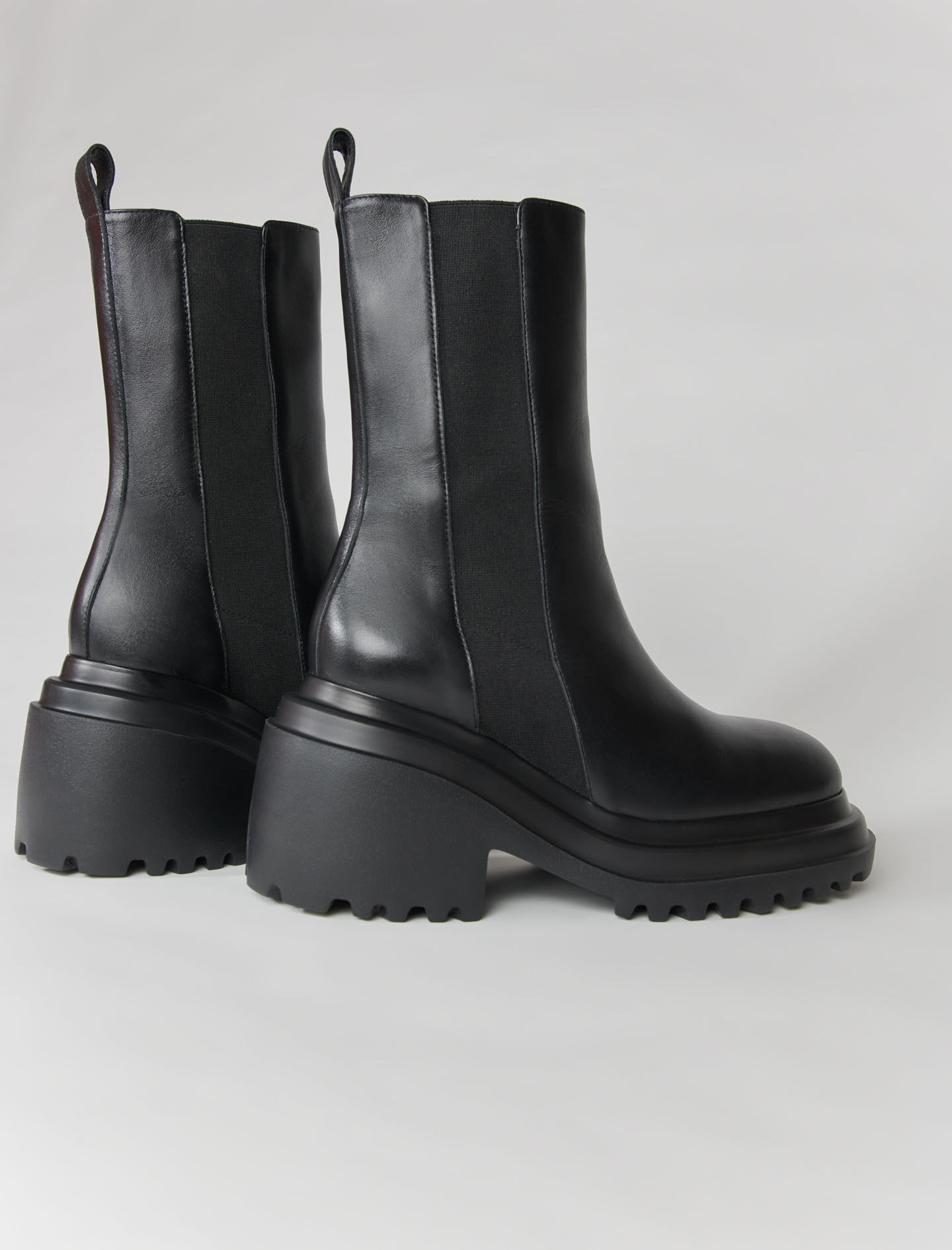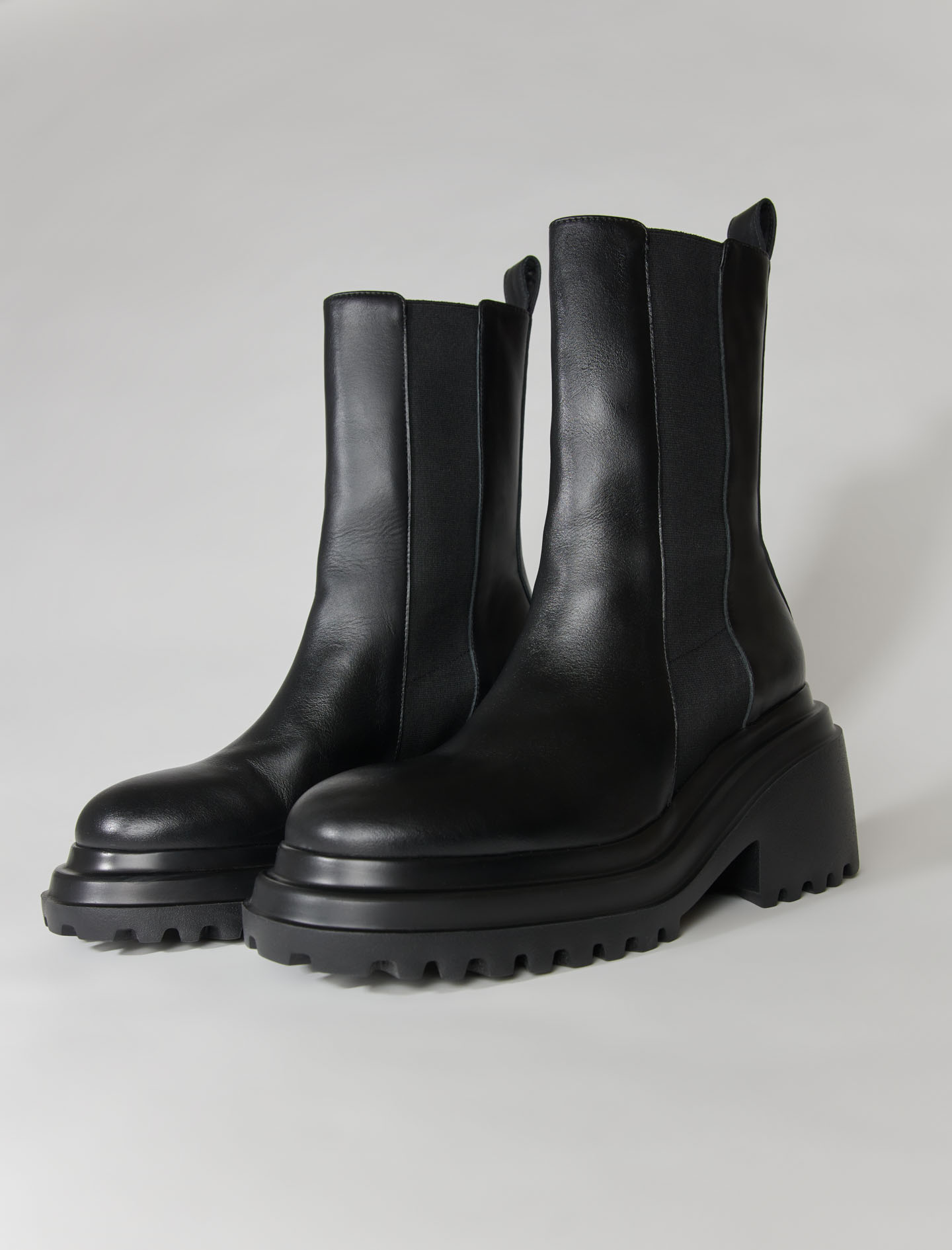 Leather ankle boots with notched soles Elastic on the sides Heel height: