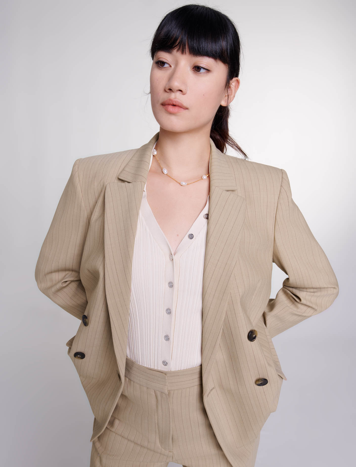 Maje Woman's wool Striped suit jacket for Spring/Summer, in color Beige / Beige