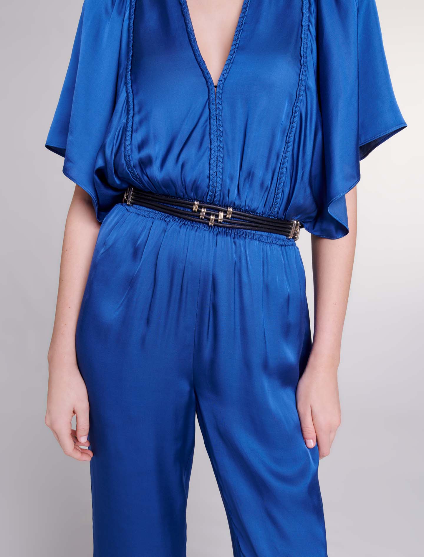Maje Woman's polyester Mixed metal and leather belt for Spring/Summer, in color Black / Black