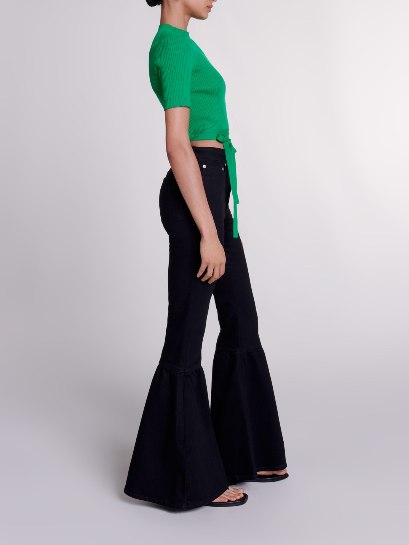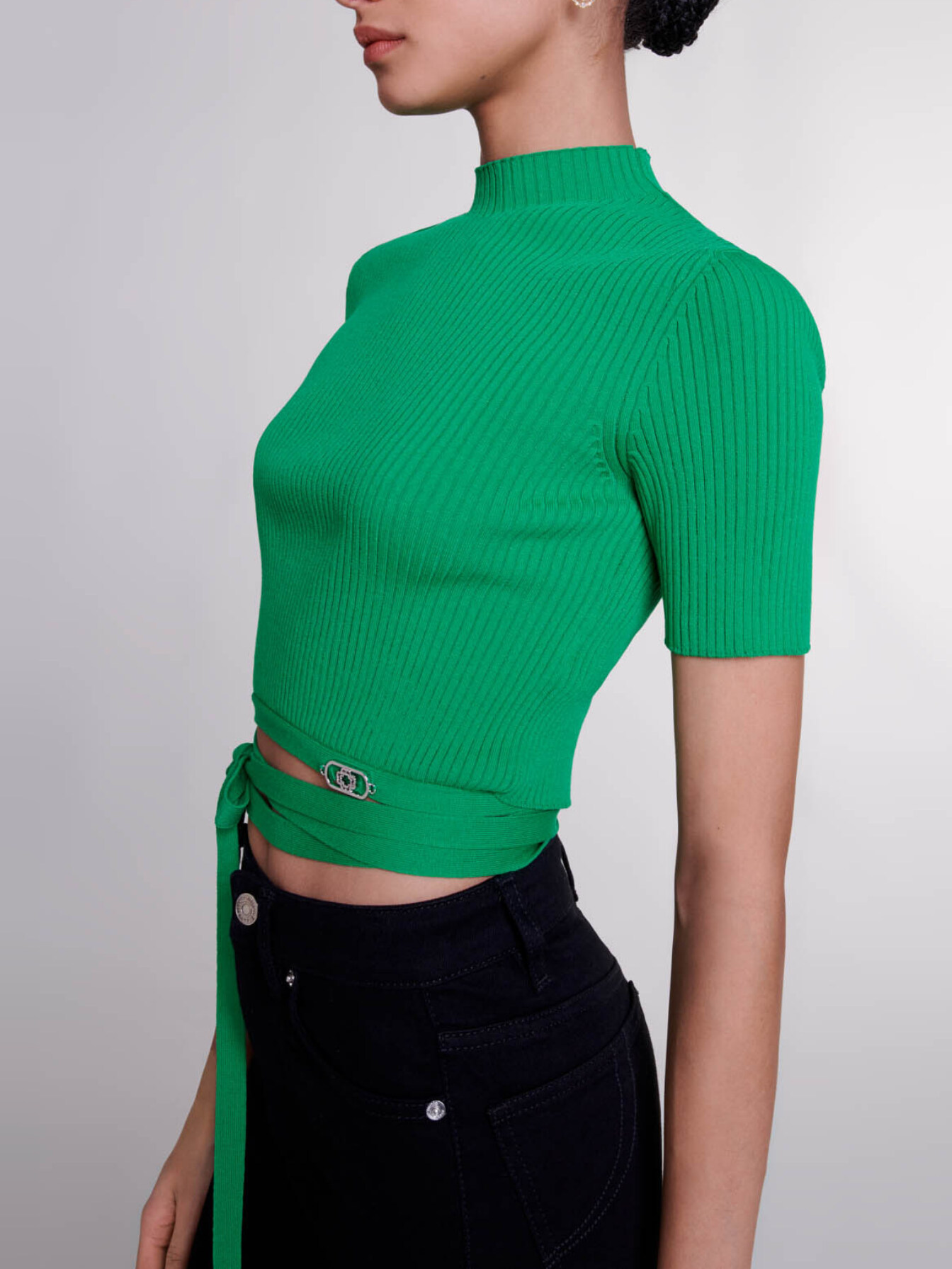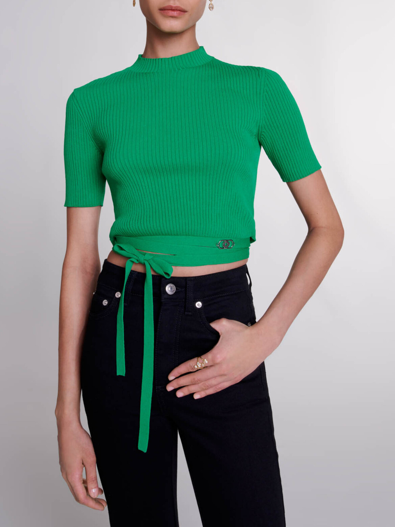 Maje Woman's viscose Knit crop top with ties for Spring/Summer, in color Green / Grey