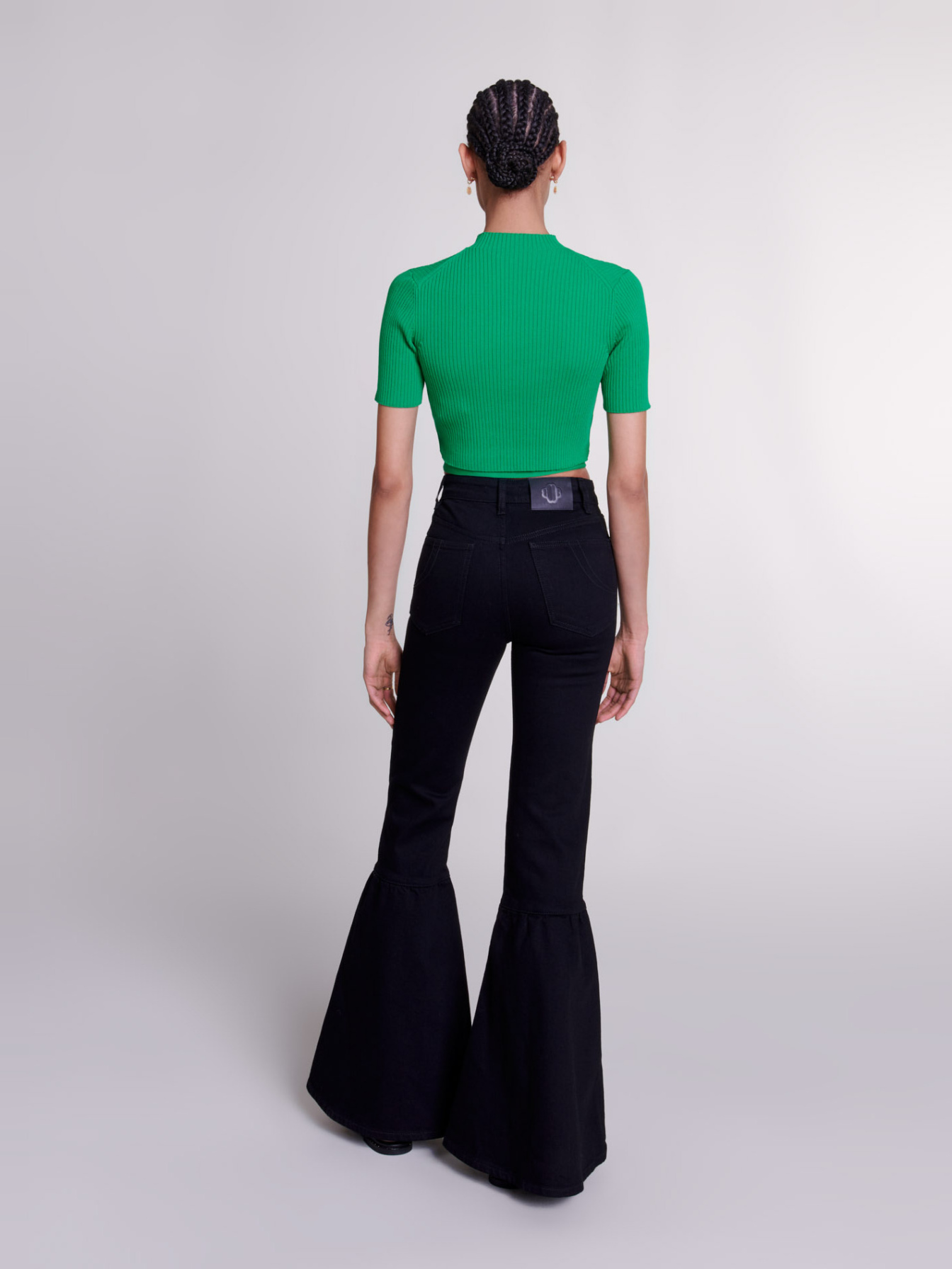 Both chic and daring, this rib knit crop top comes in a bright green to uplift your look.