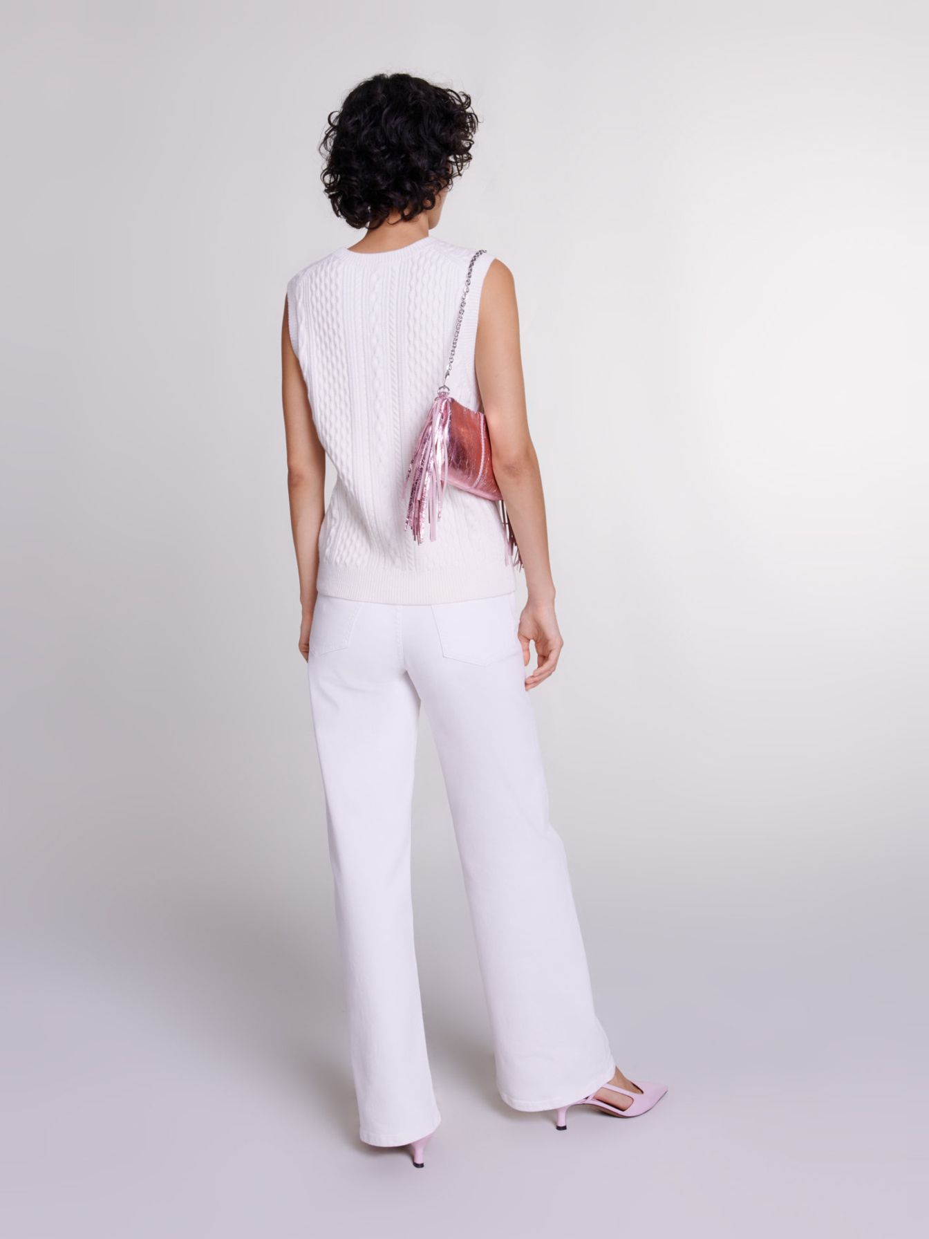 Floral motifs with fluffy centres make a bold statement on this sleeveless cable-knit jumper.