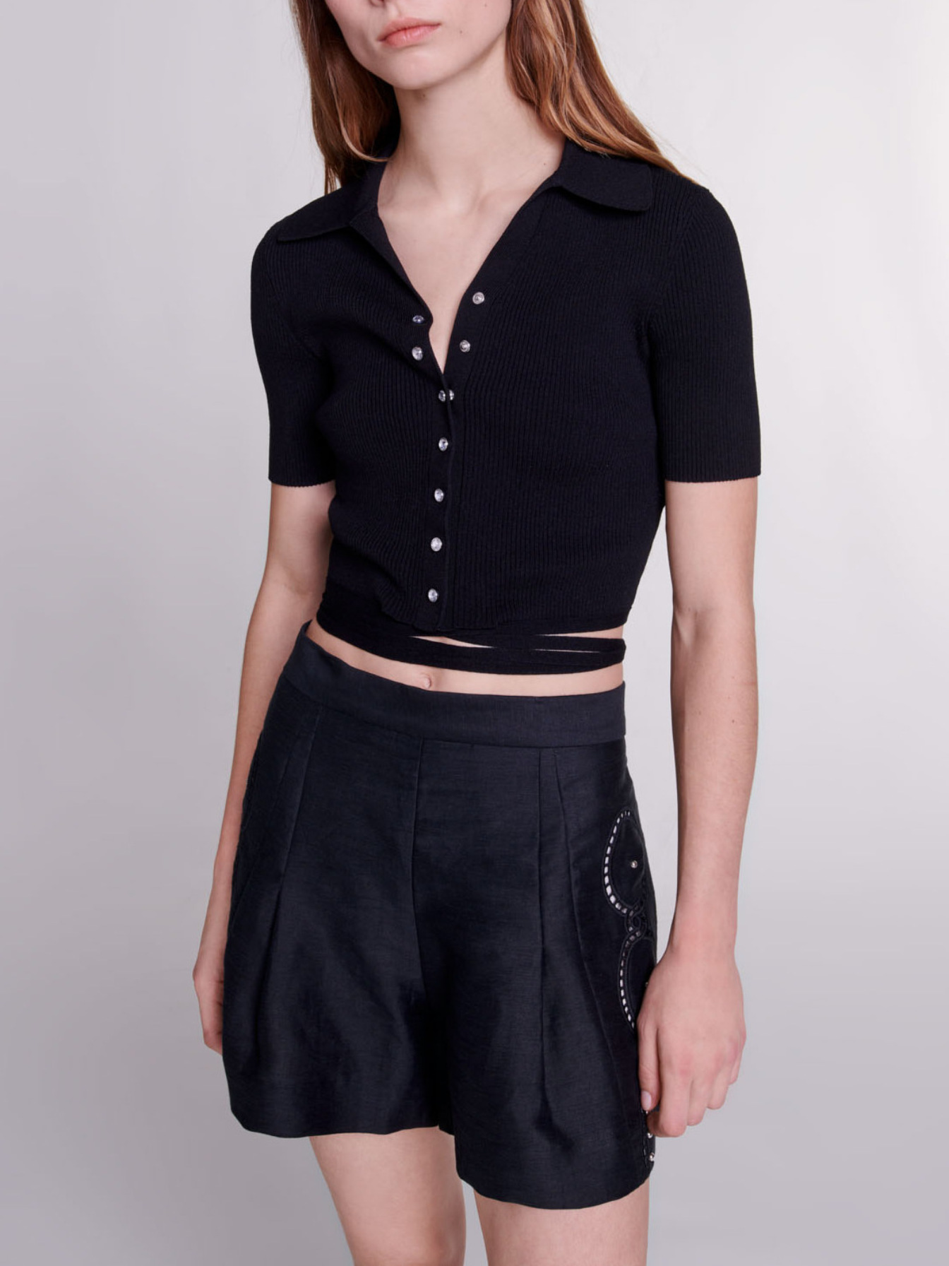 Maje Woman's linen Openwork linen shorts with rivets for Spring/Summer, in color Black / Black