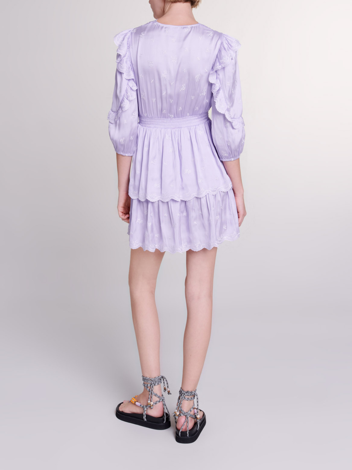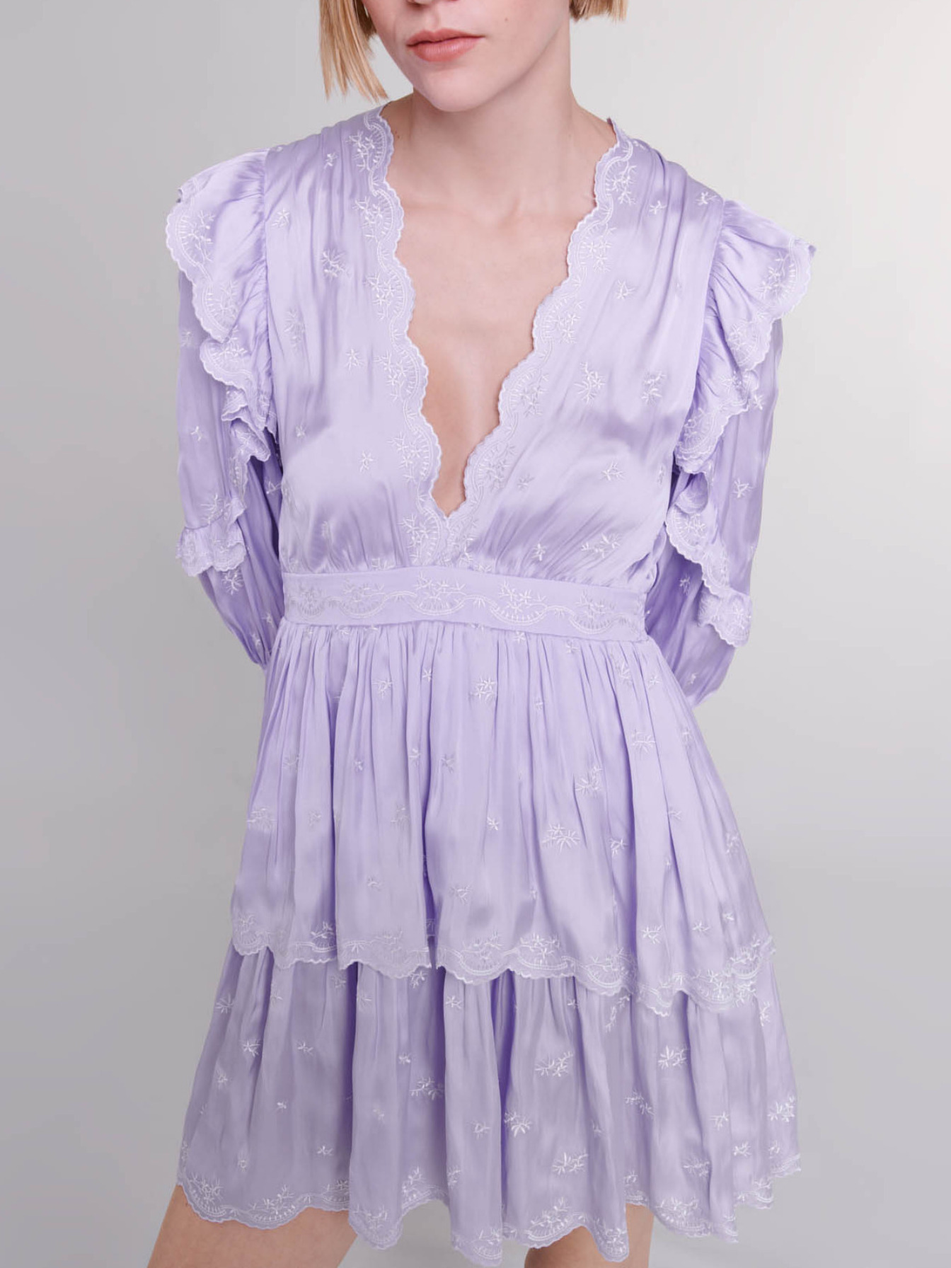 Maje Woman's polyester Short satin-look embroidered dress for Spring/Summer, in color Parma Violet / Red
