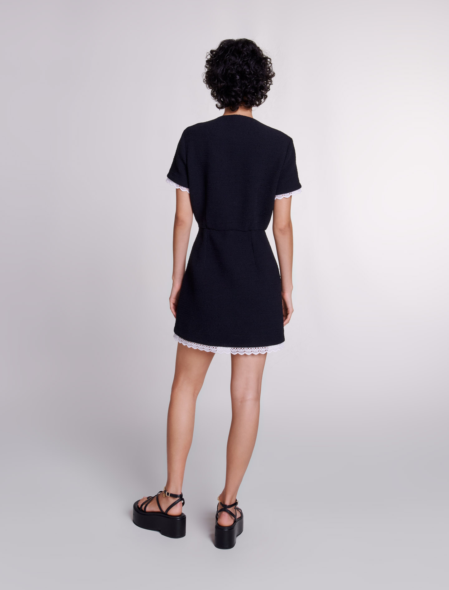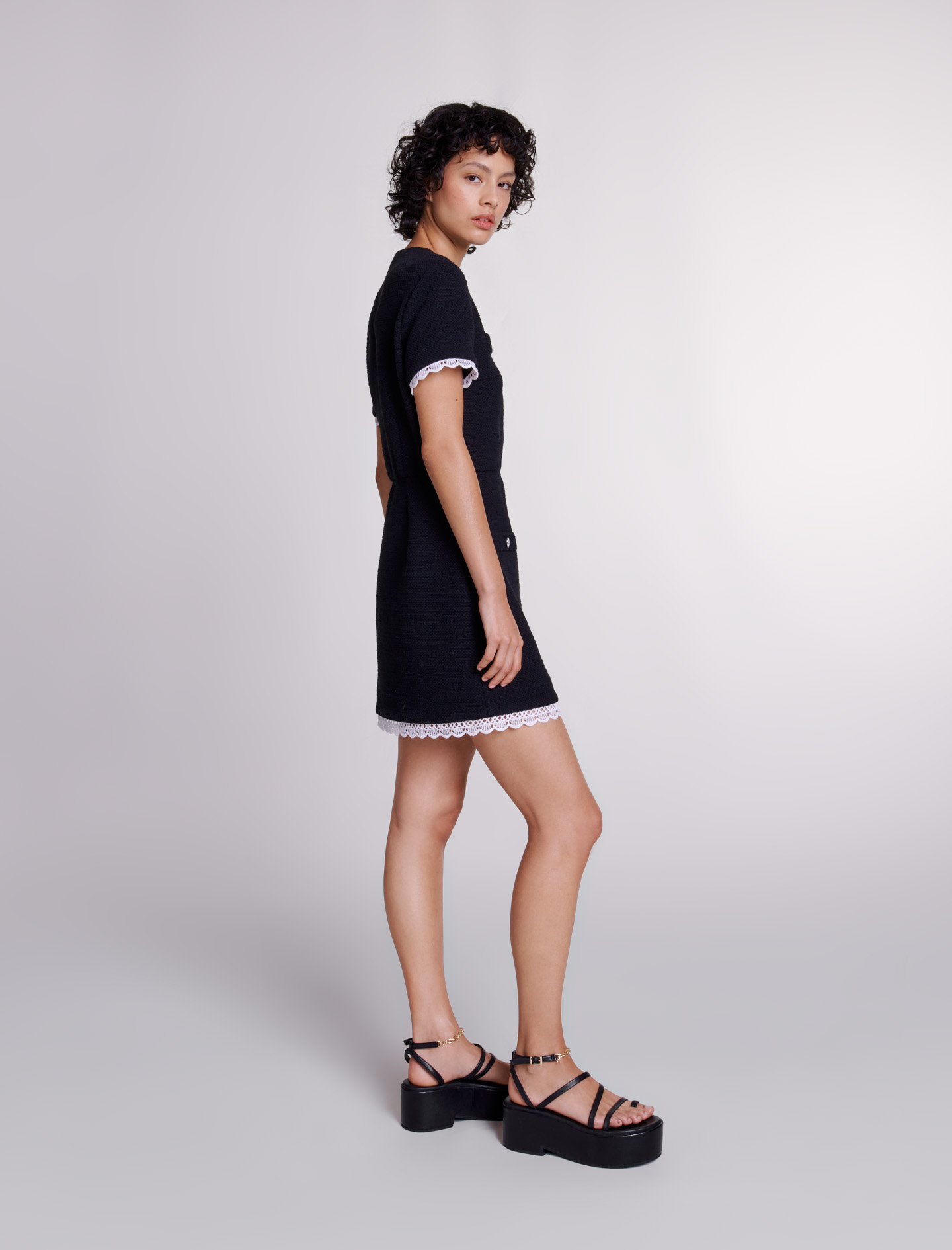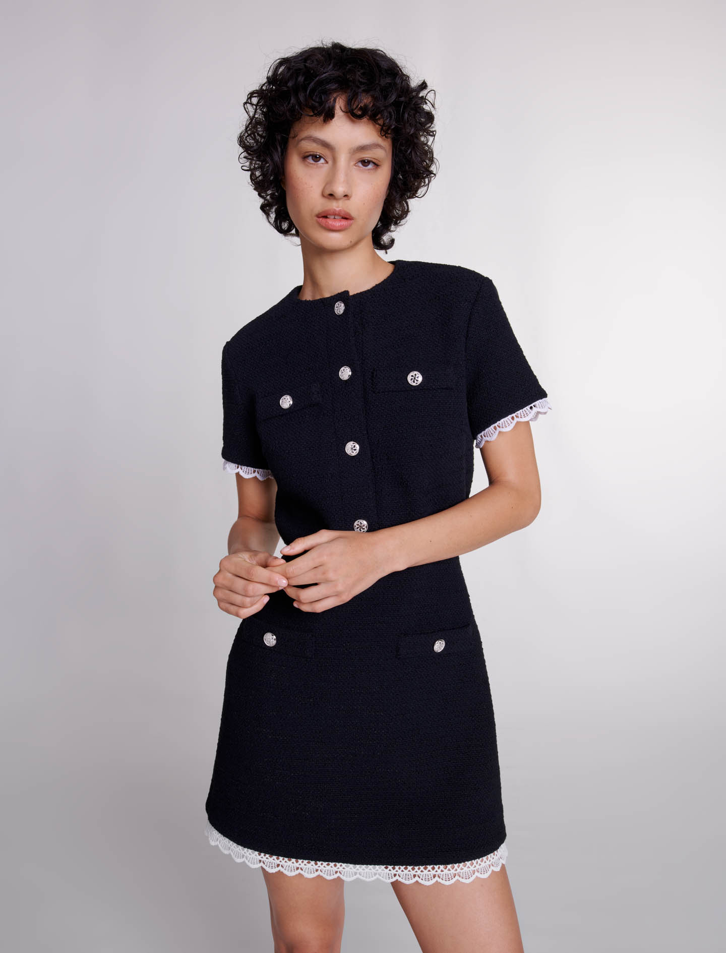 Maje Woman's polyester Short tweed dress with trim for Spring/Summer, in color Black / Black