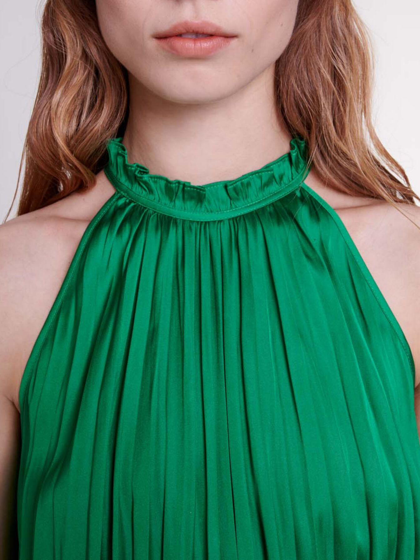 This satin-effect, pleated top is light and airy and comes in this season's signature colour.