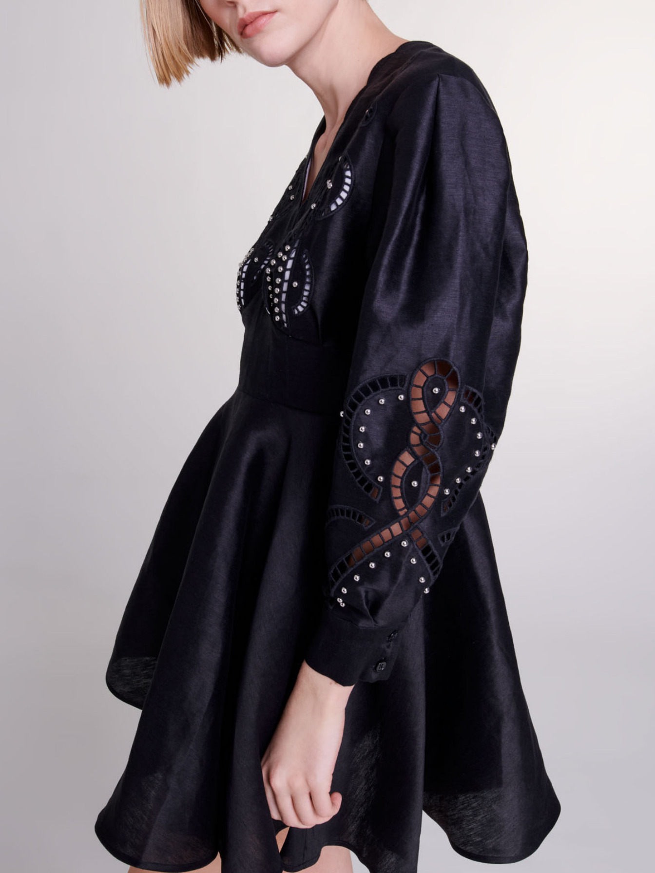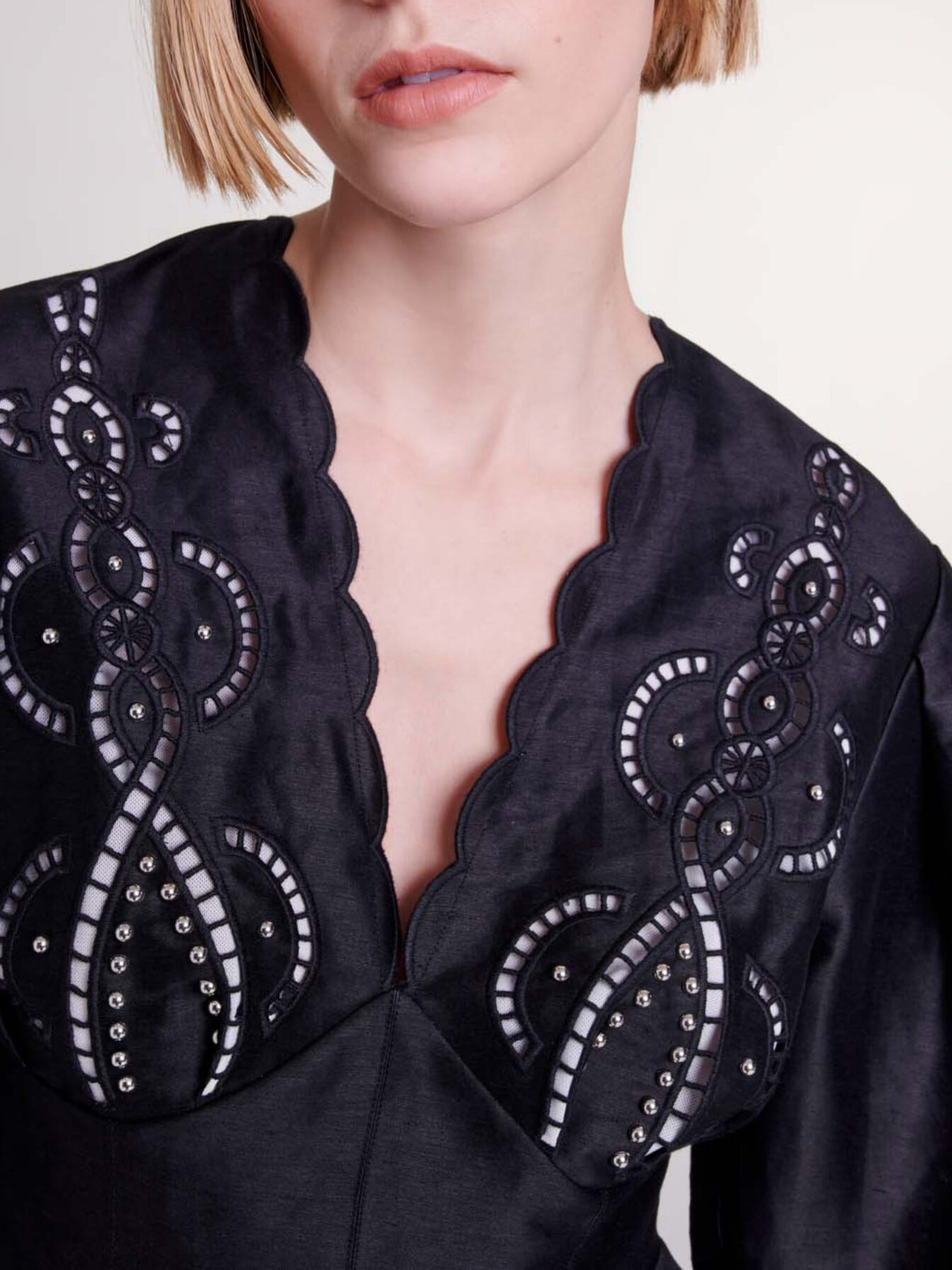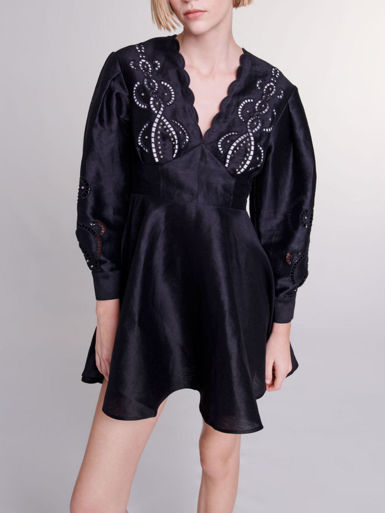 Maje Woman's linen Short embroidered linen dress for Spring/Summer, in color Black / Black