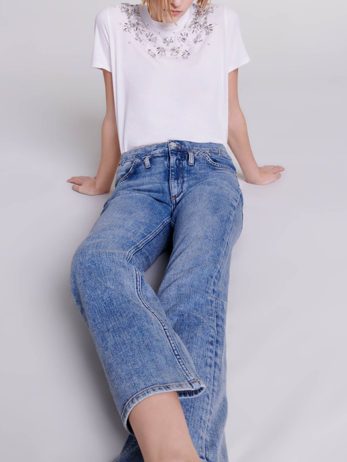 Maje Woman's cotton Jeans with braided details for Spring/Summer, in color Blue / Blue