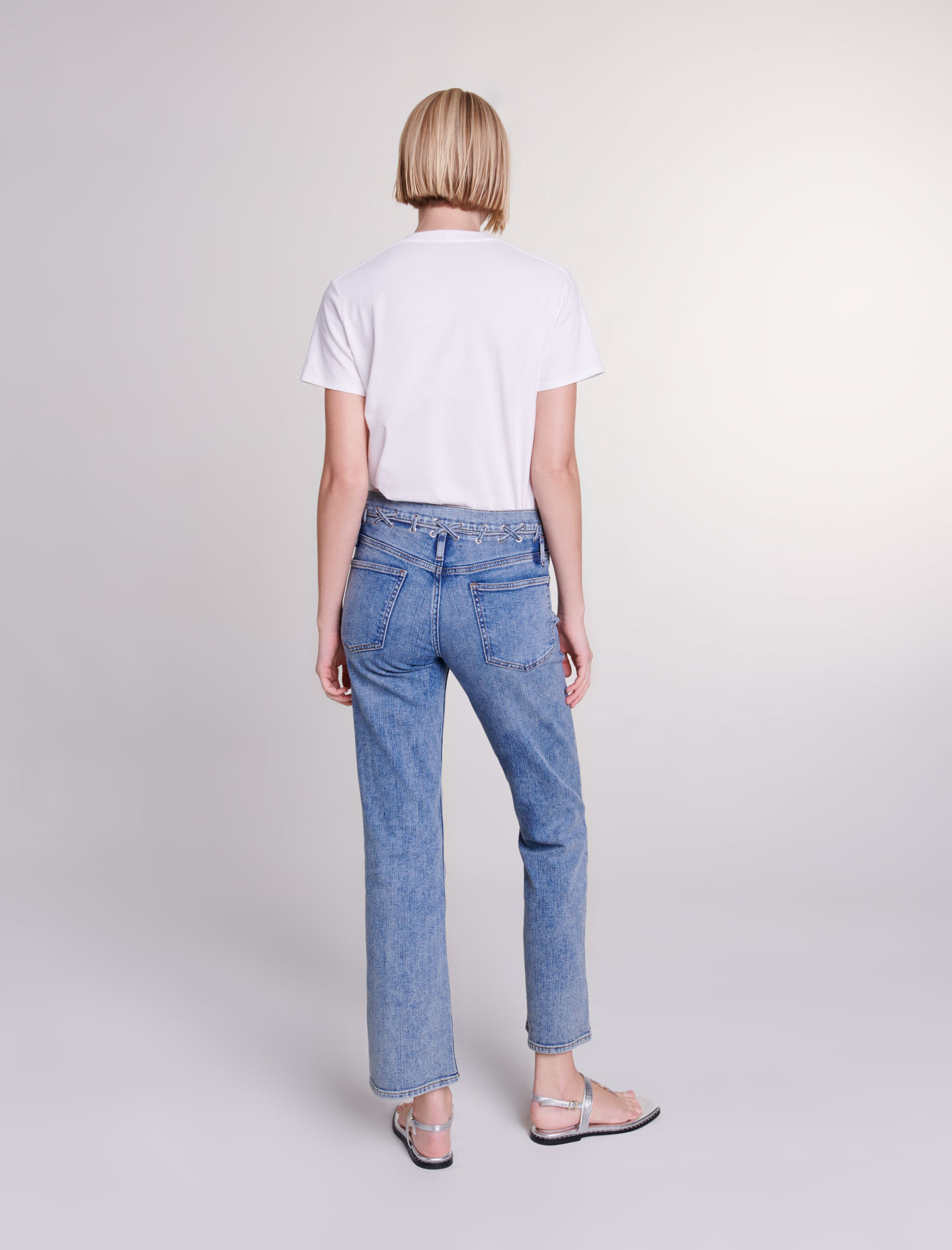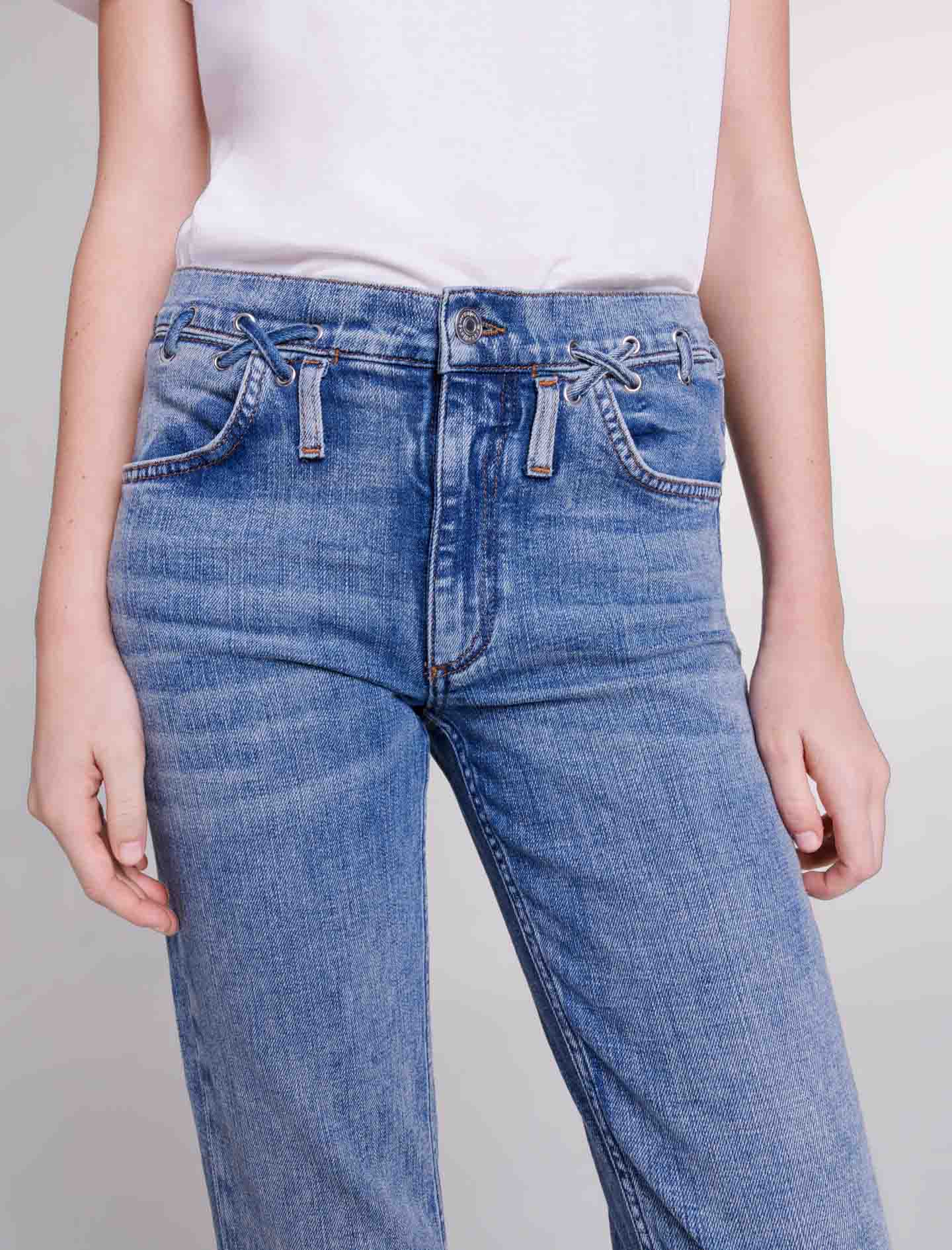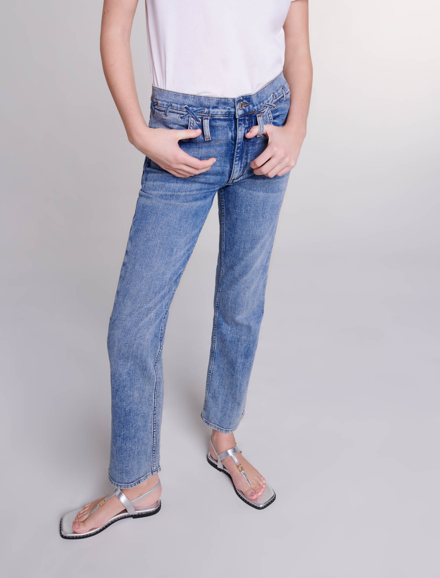 Faded-effect straight-leg jeans Lace-up effect waist 5 pockets.