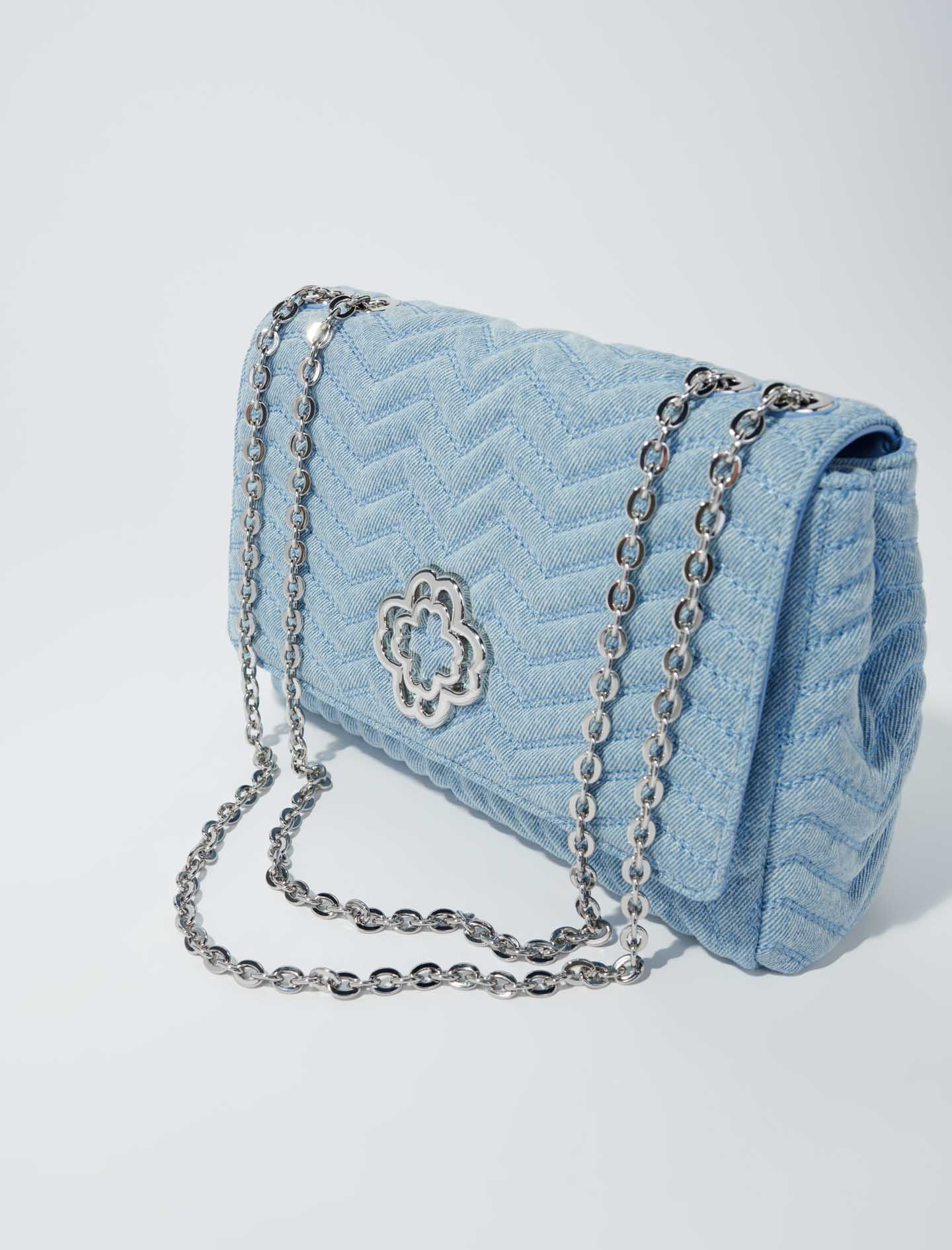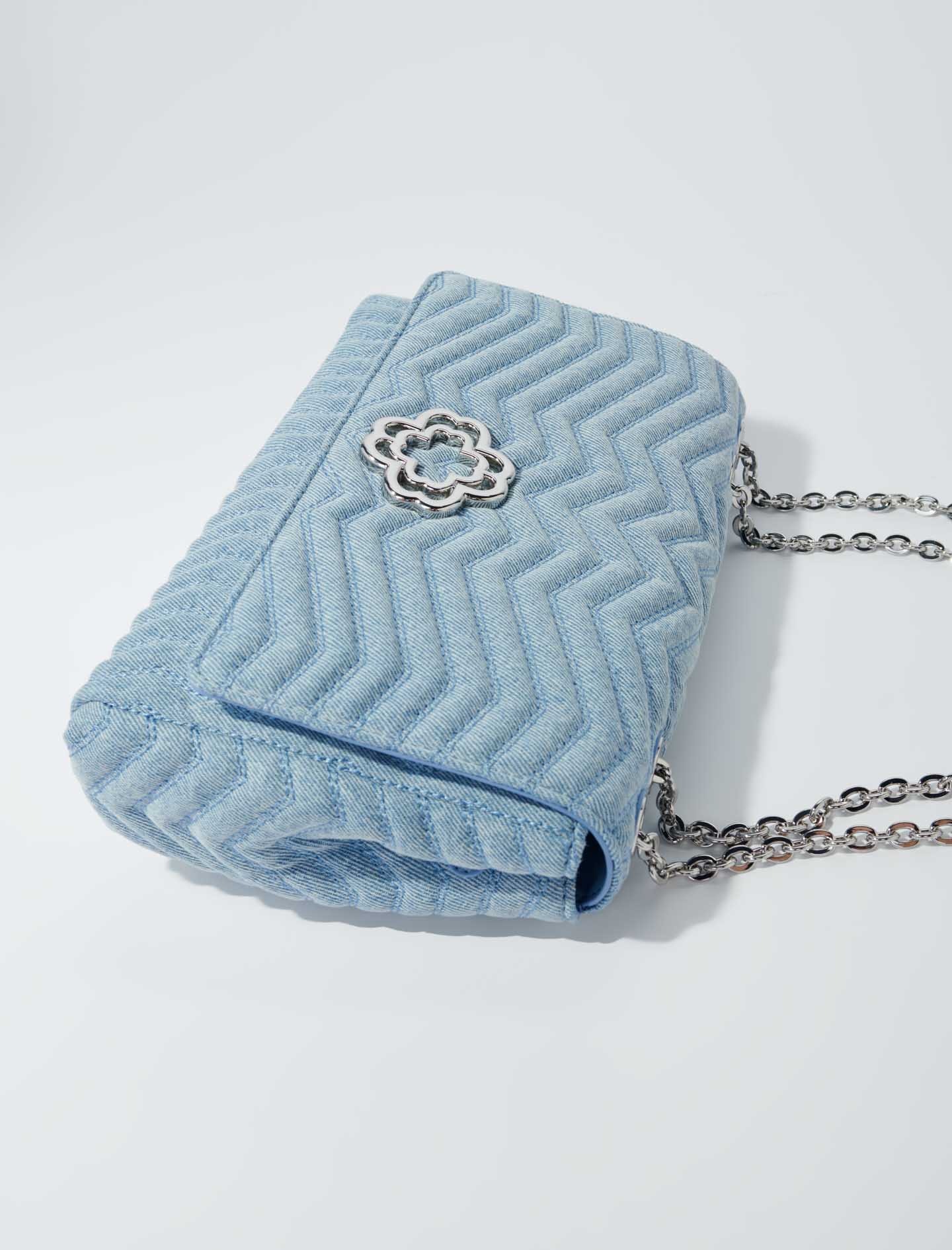 Clover clasp denim bag Sliding chain shoulder strap Dimensions: