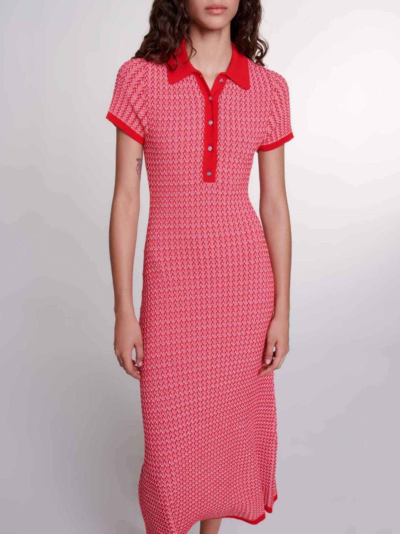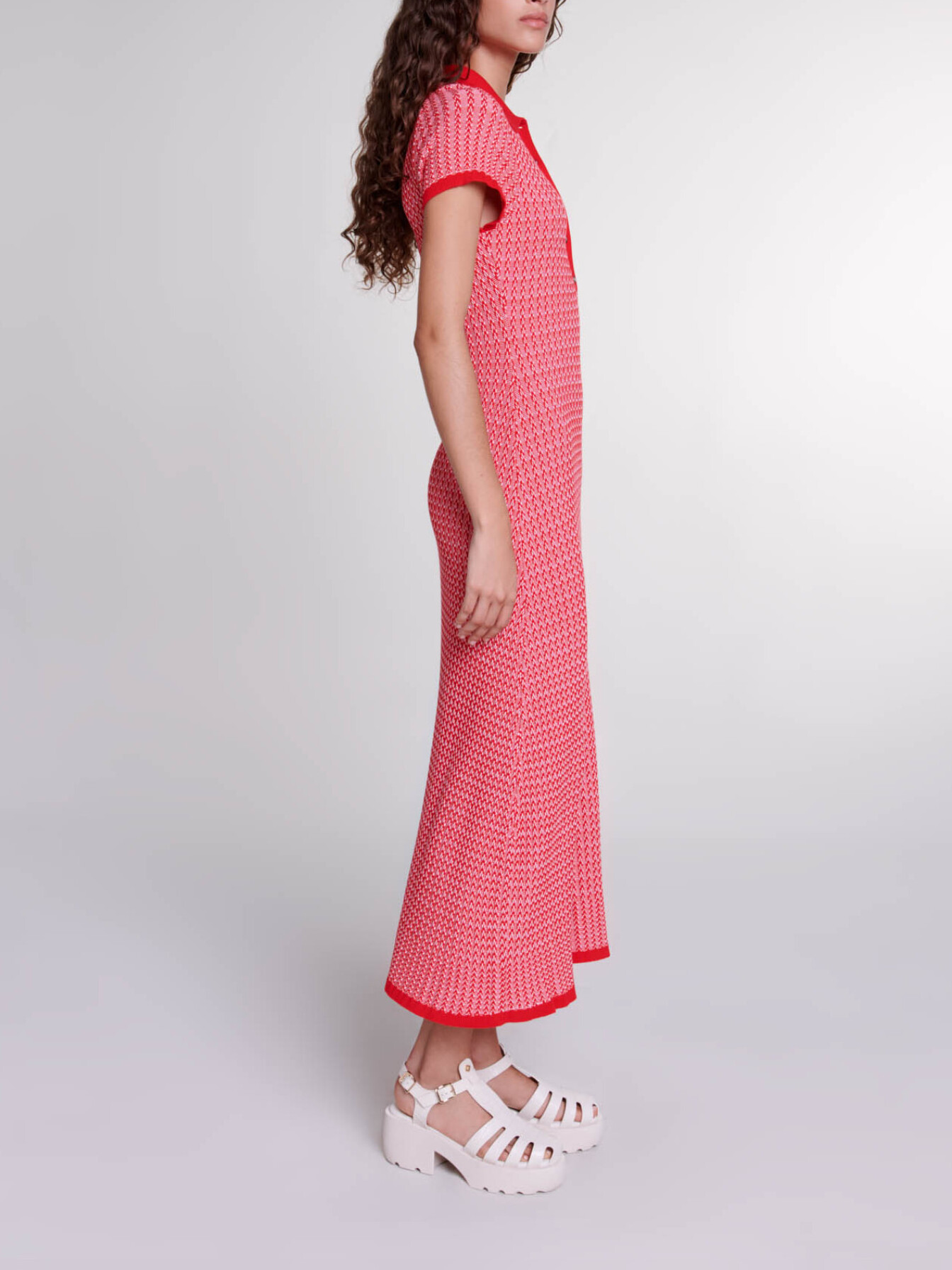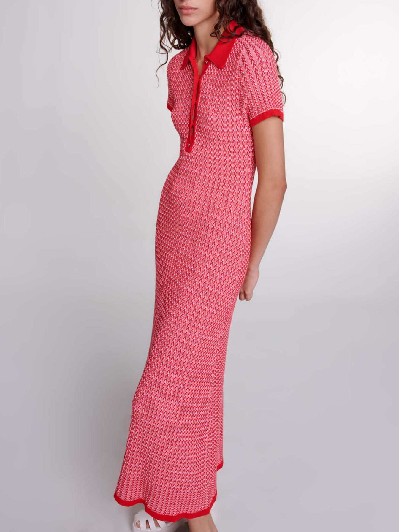 Maje Woman's viscose Herringbone knit maxi dress for Spring/Summer, in color Red / Red