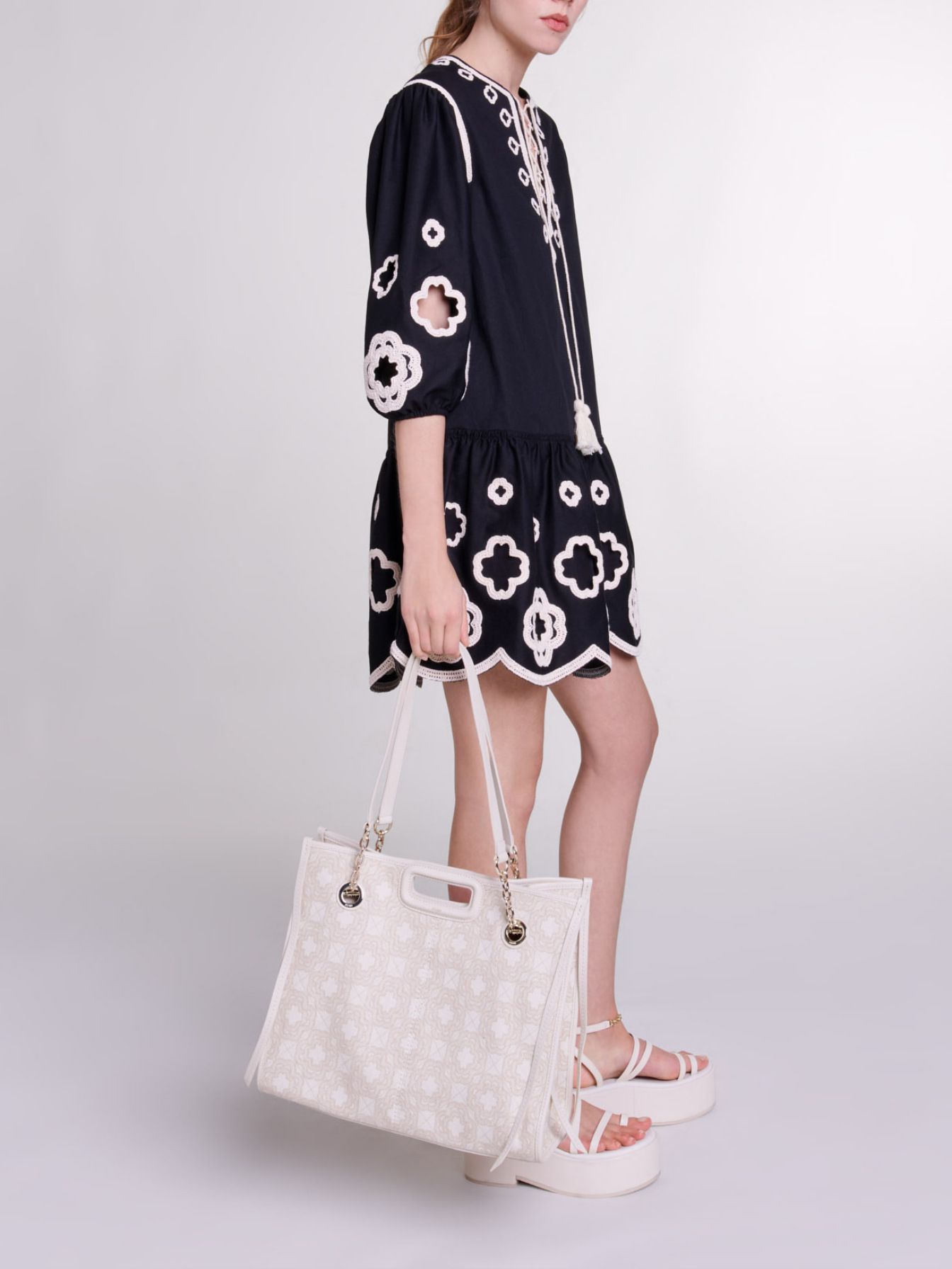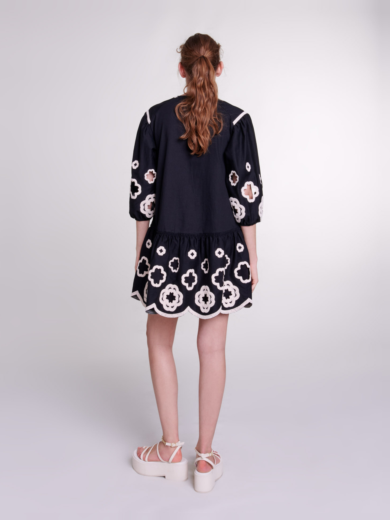 Maje Woman's cotton Short embroidered tunic dress for Spring/Summer, in color Black / Black