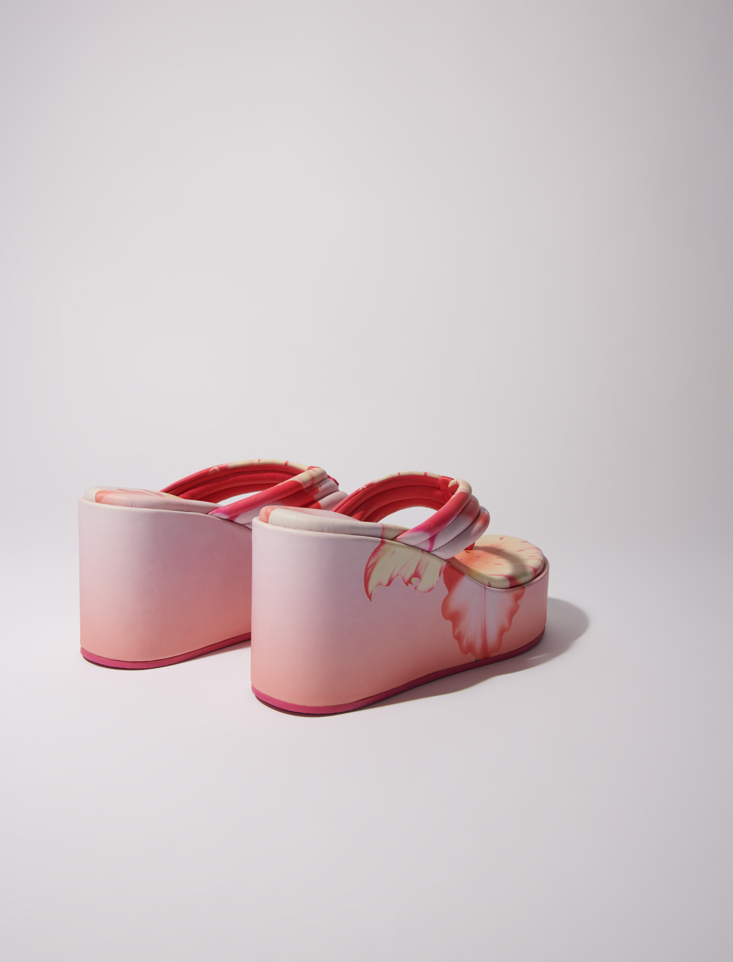 Maje Woman's leather Flower print wedge sandals for Spring/Summer, in color Pink / Red