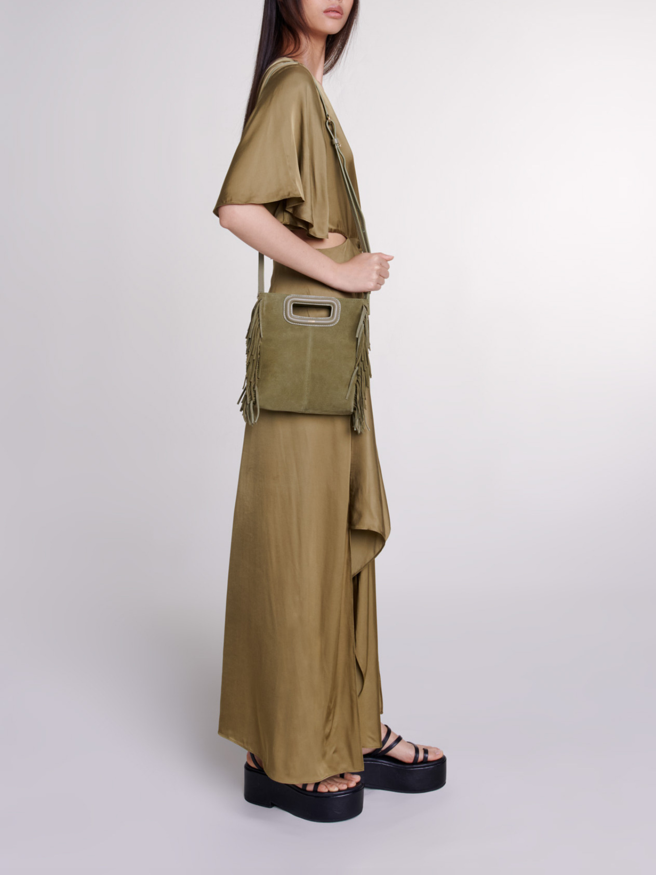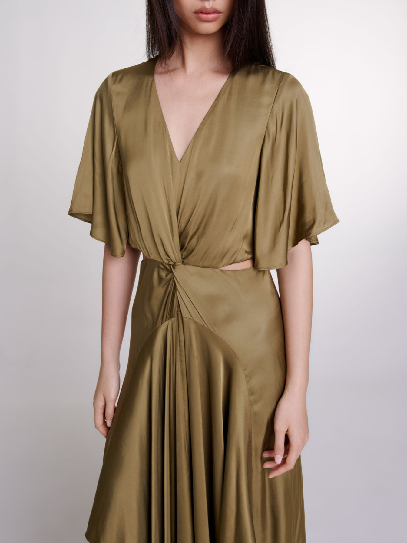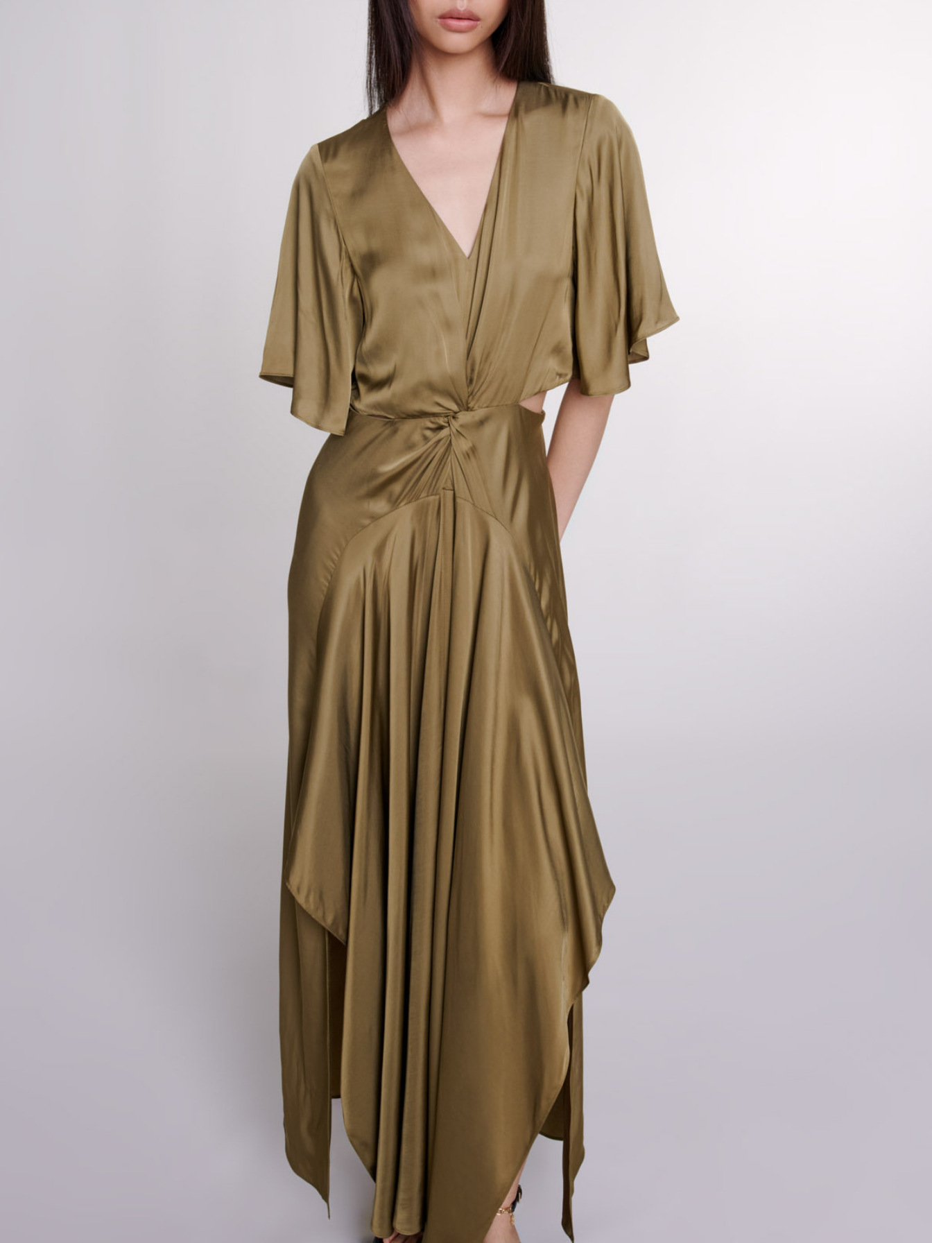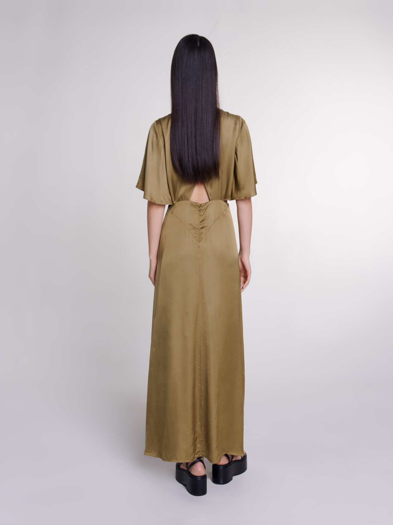 Maje Woman's viscose Openwork satin-effect maxi dress for Spring/Summer, in color Khaki / Beige
