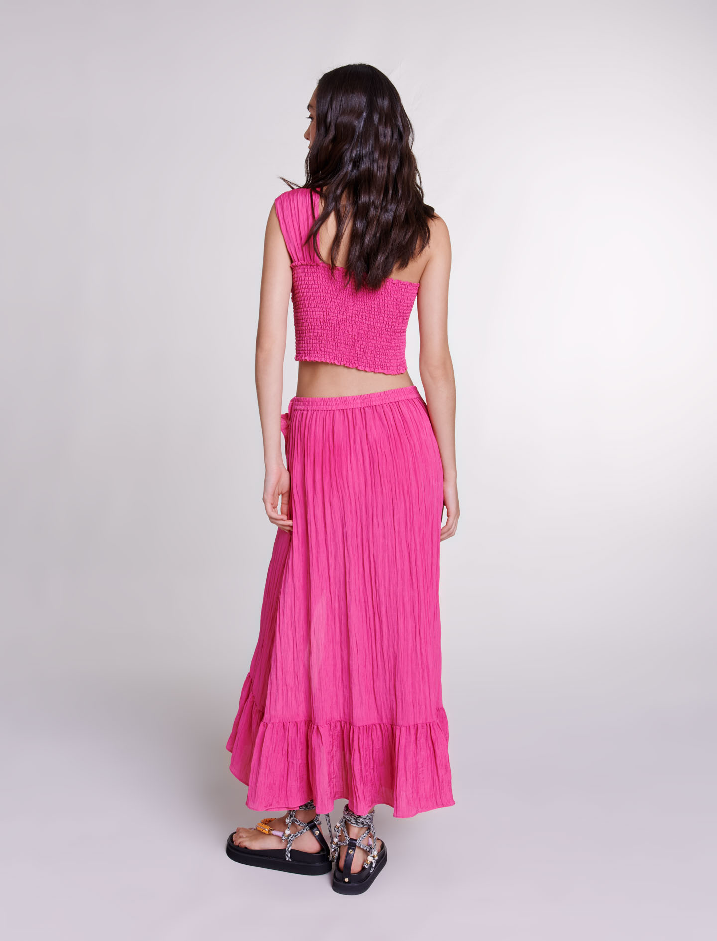 This long skirt in a vibrant pink is a head-turner with its textured fabric.