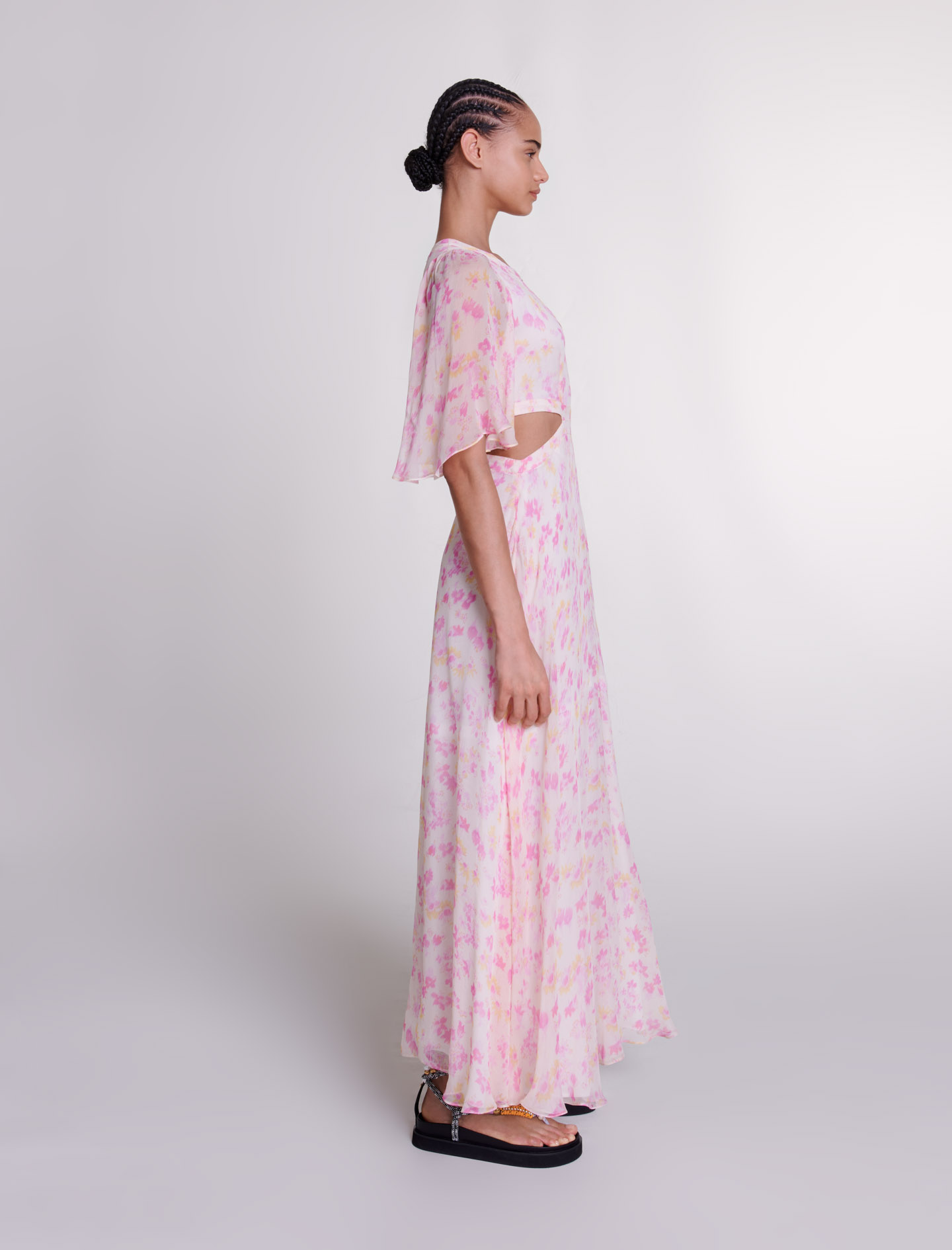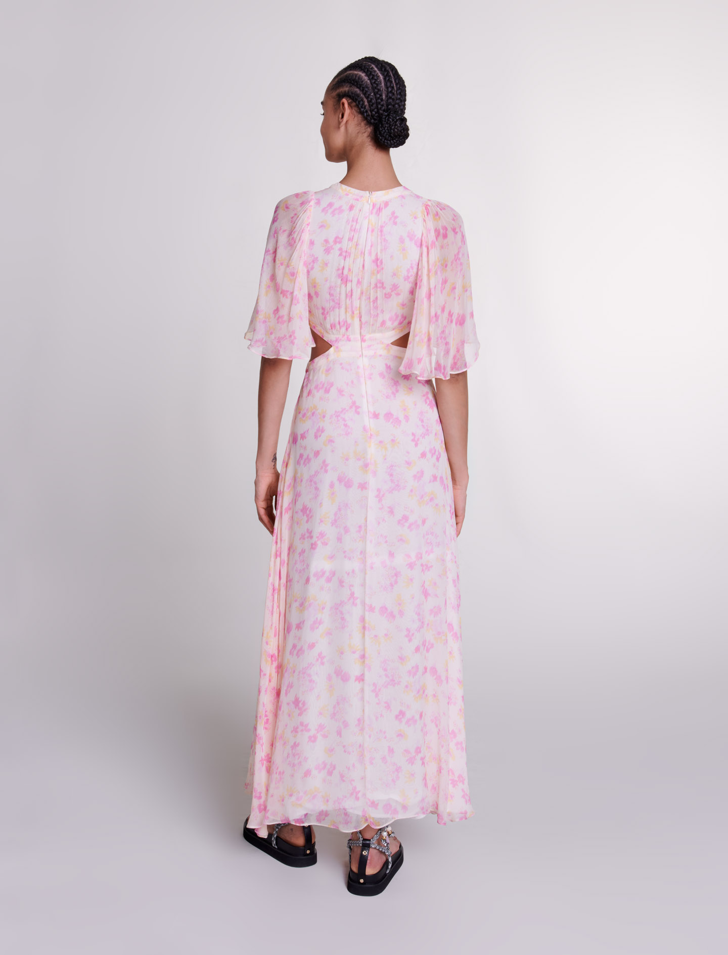 Chiffon-effect voile maxi dress Floral pattern Short butterfly sleeves.