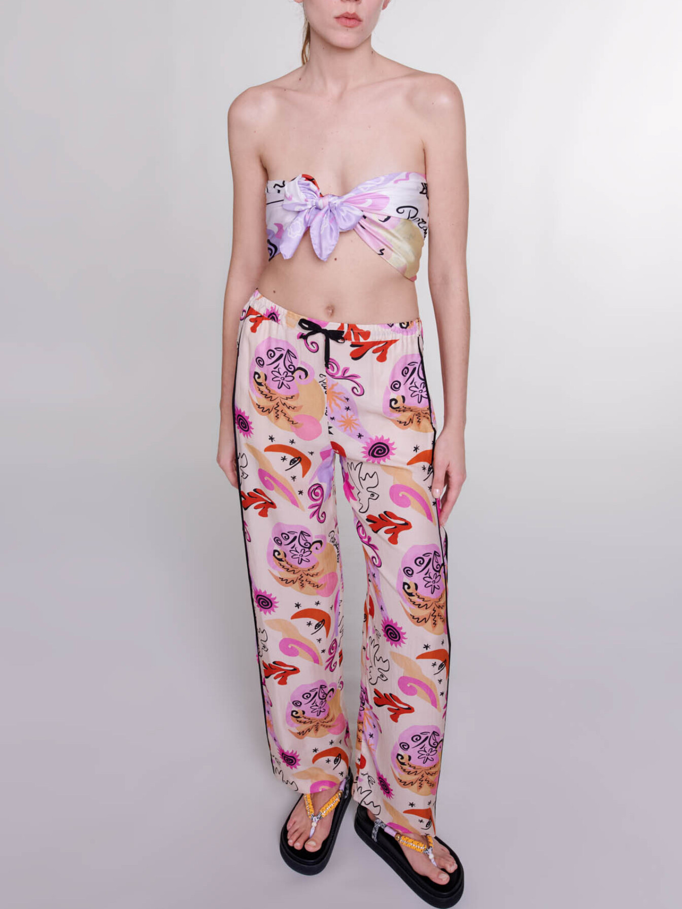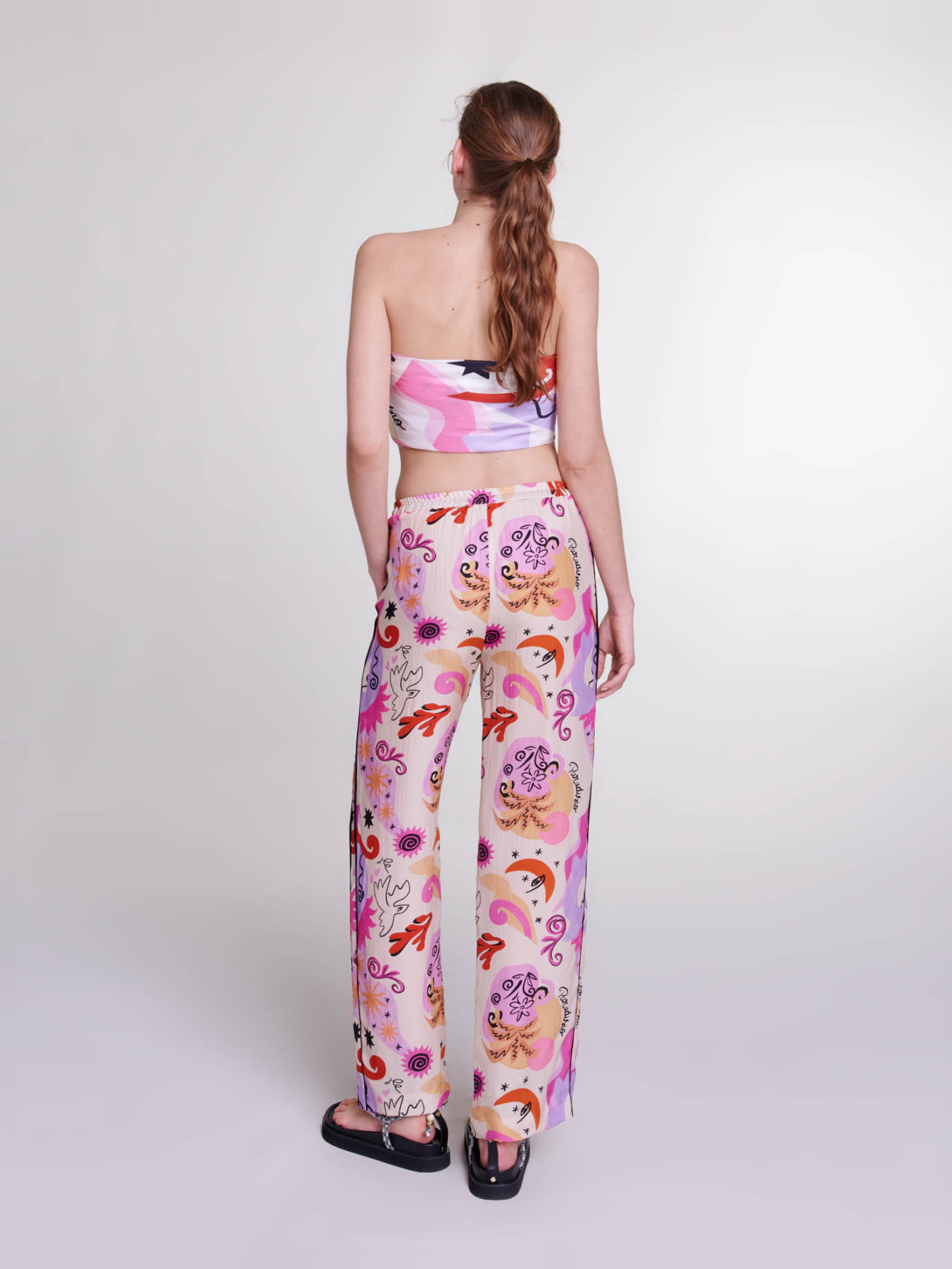Paradisio print trousers Dainty, floaty silk Pyjama fit.