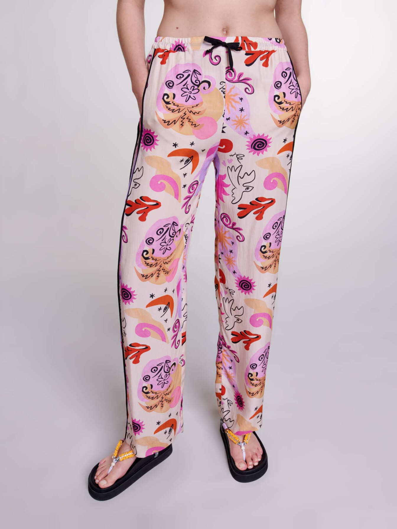 Maje Woman's silk Silk trousers for Spring/Summer, in color Print paradisio /