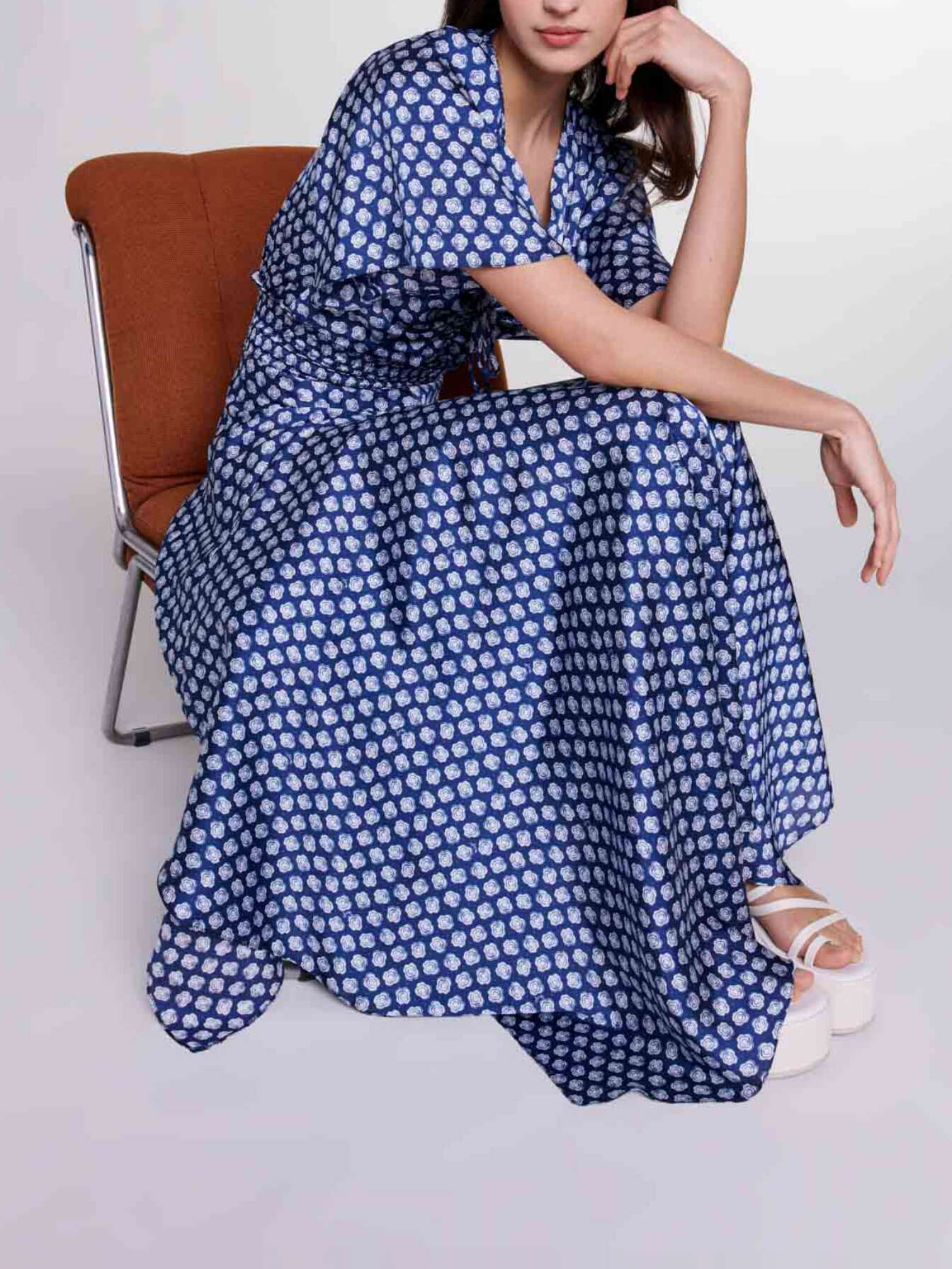 Maje Woman's viscose Patterned maxi dress for Spring/Summer, in color Clover navy/ecru /