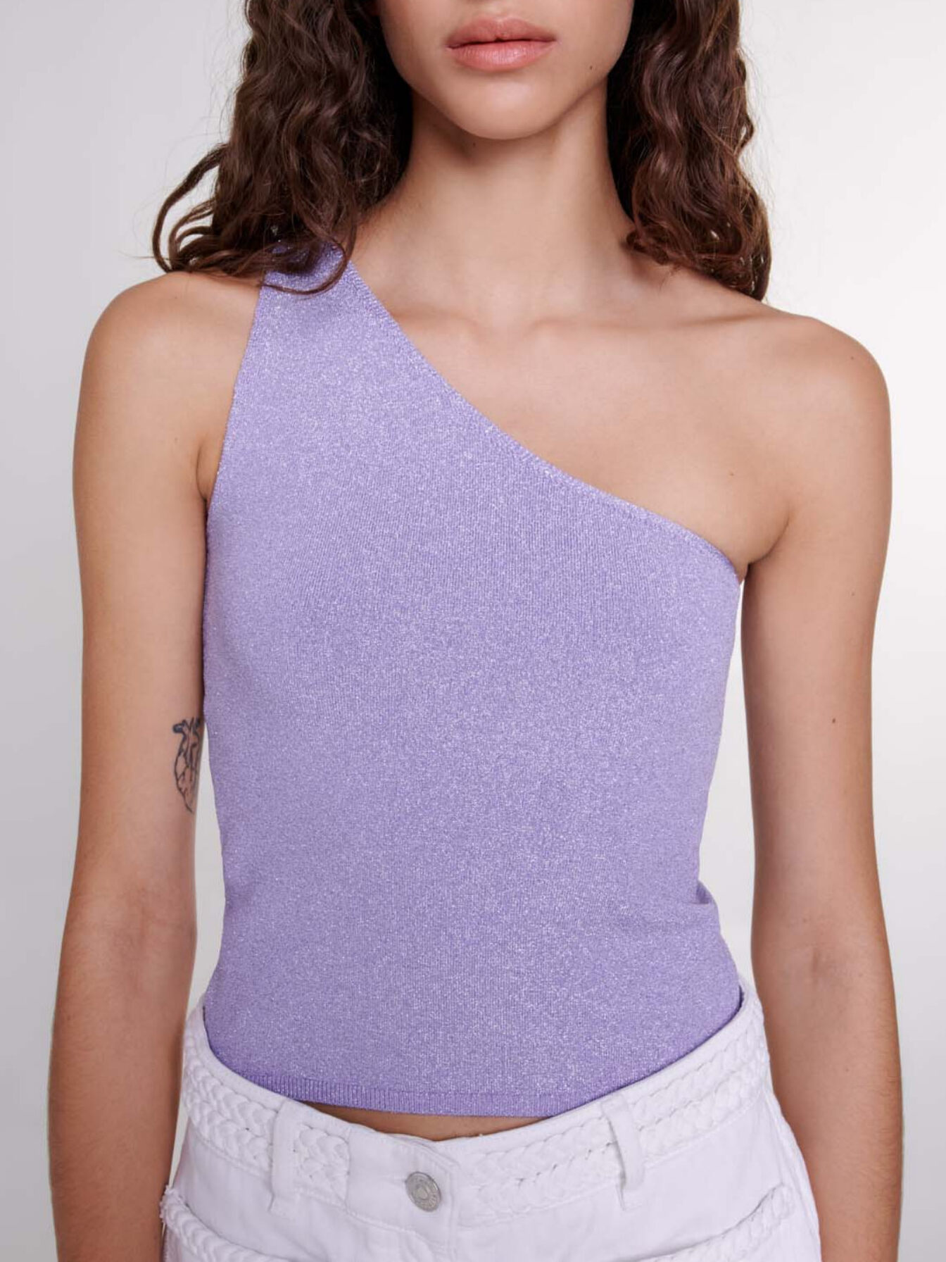 Metallic knit crop top Asymmetrical strap Slim fit.