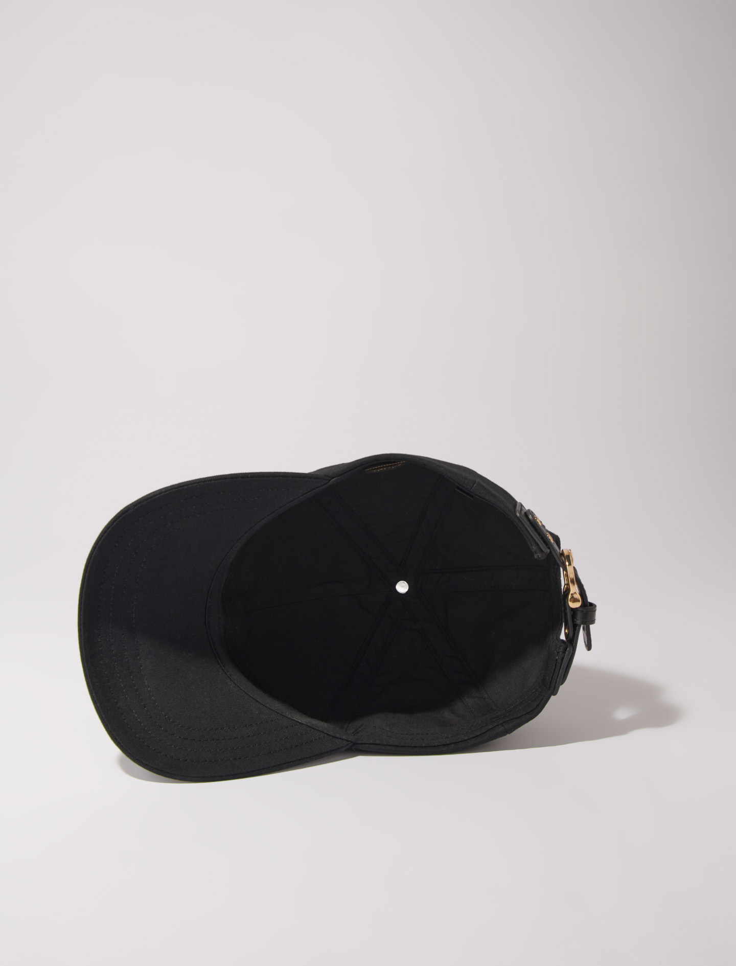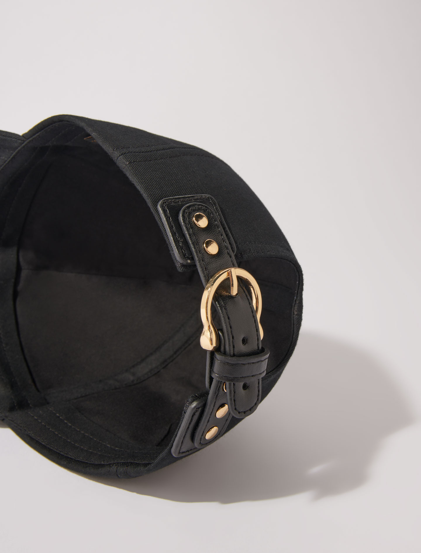 Maje Woman's cotton Cotton hat with gold-tone buckle for Fall/Winter, in color Black / Black