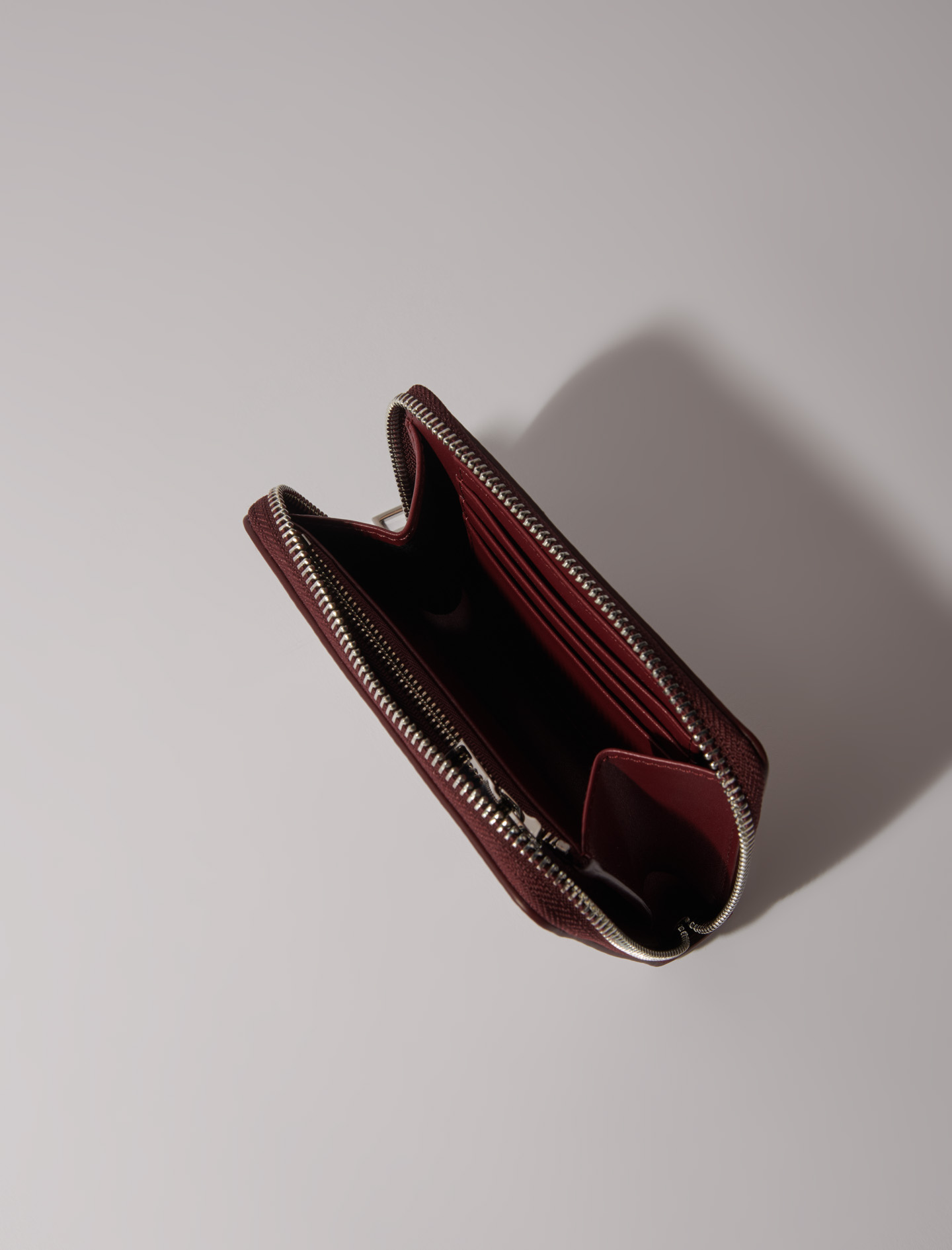 Ideal for keeping cards and change close to hand, it has a zip fastening and slips into your favourite Maje bag.