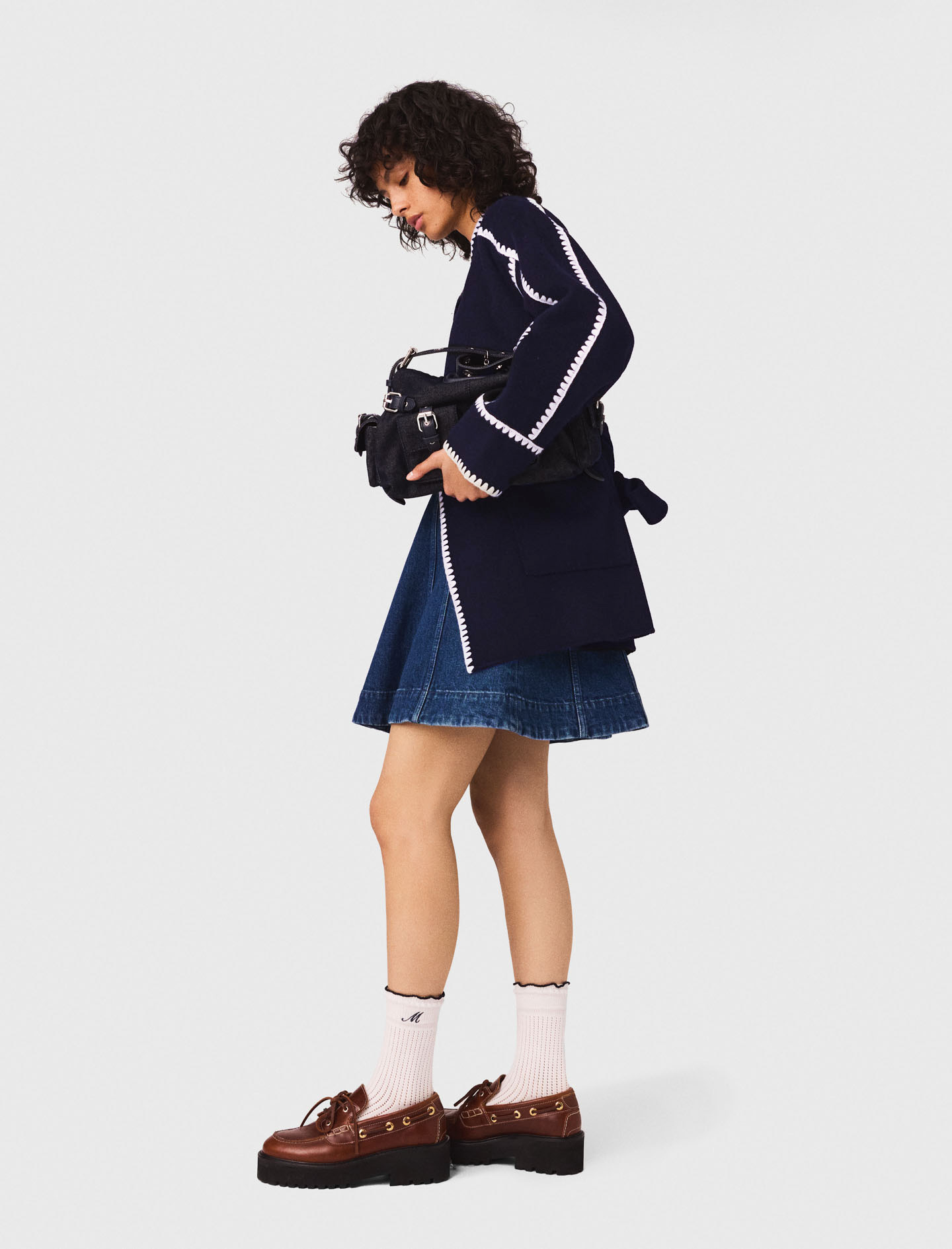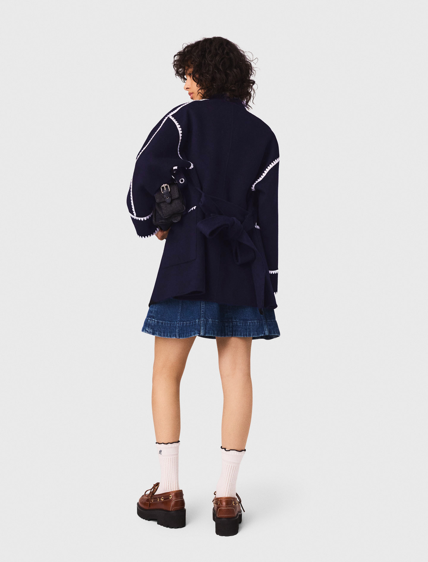 Maje Woman's wool Double-faced coat for Fall/Winter, in color Navy/White /