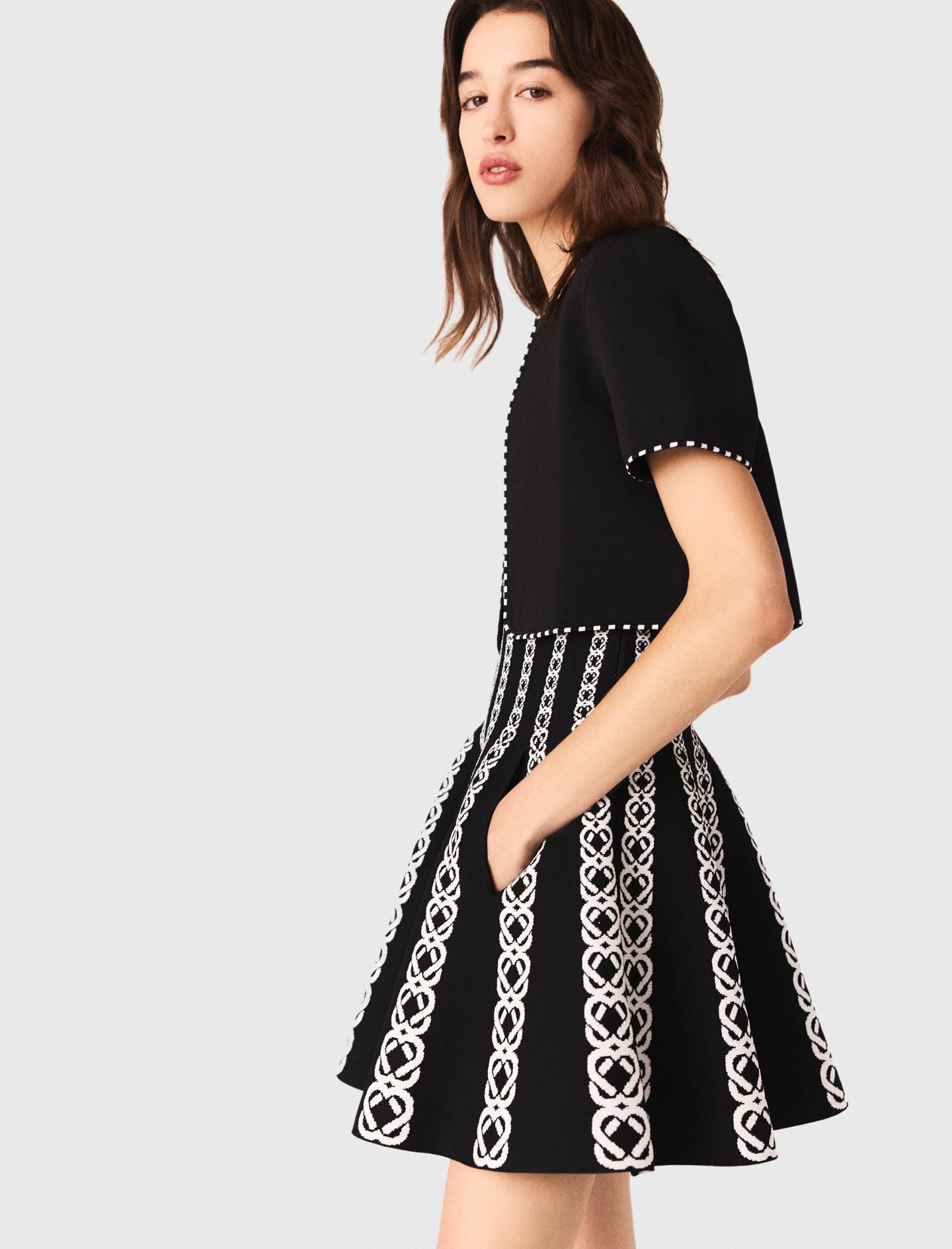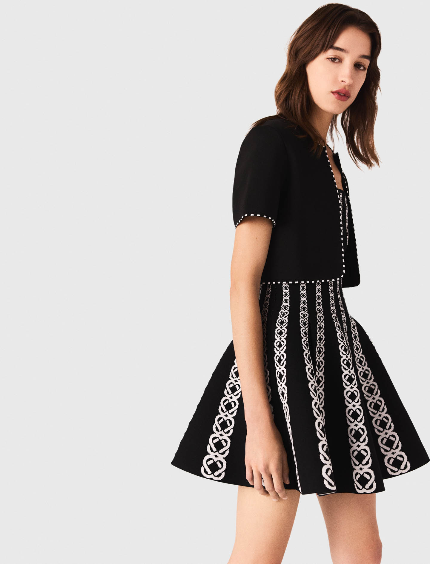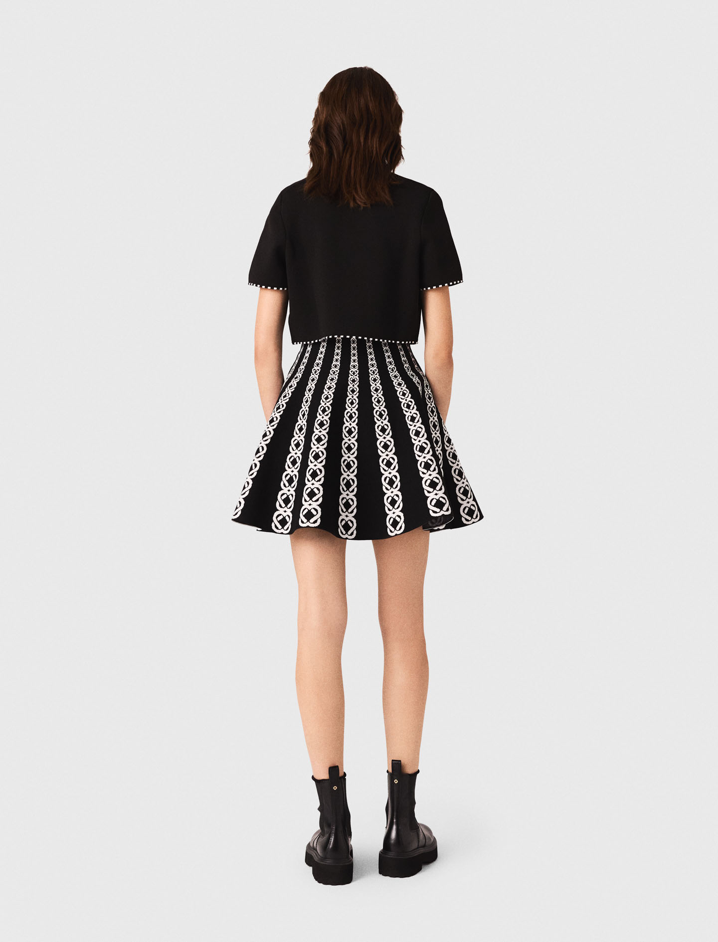 Maje Woman's polyester Cropped short sleeve cardigan for Fall/Winter, in color Black/Ecru /