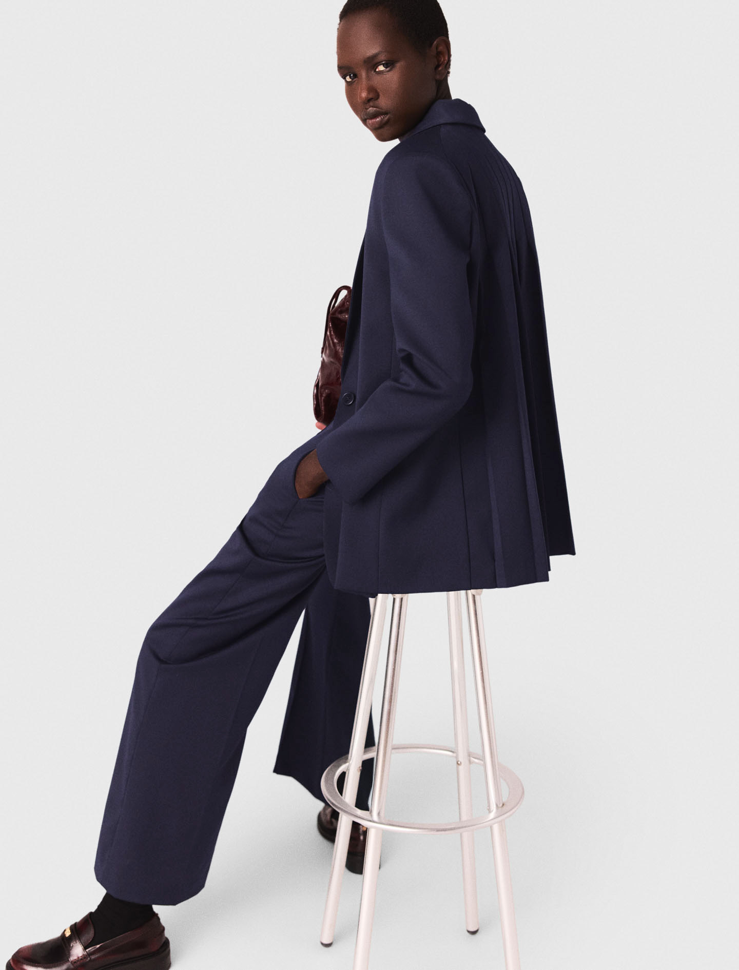 Maje Woman's polyester Suit jacket with pleated back for Fall/Winter, in color Navy / Blue