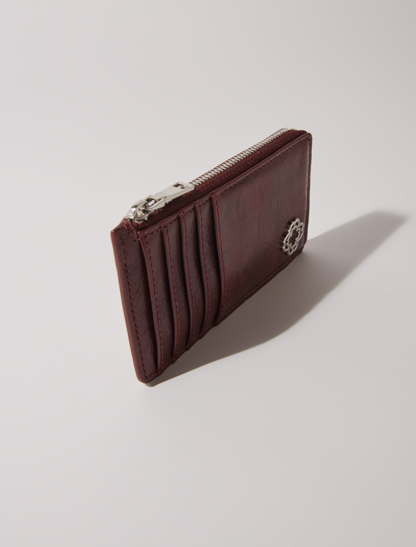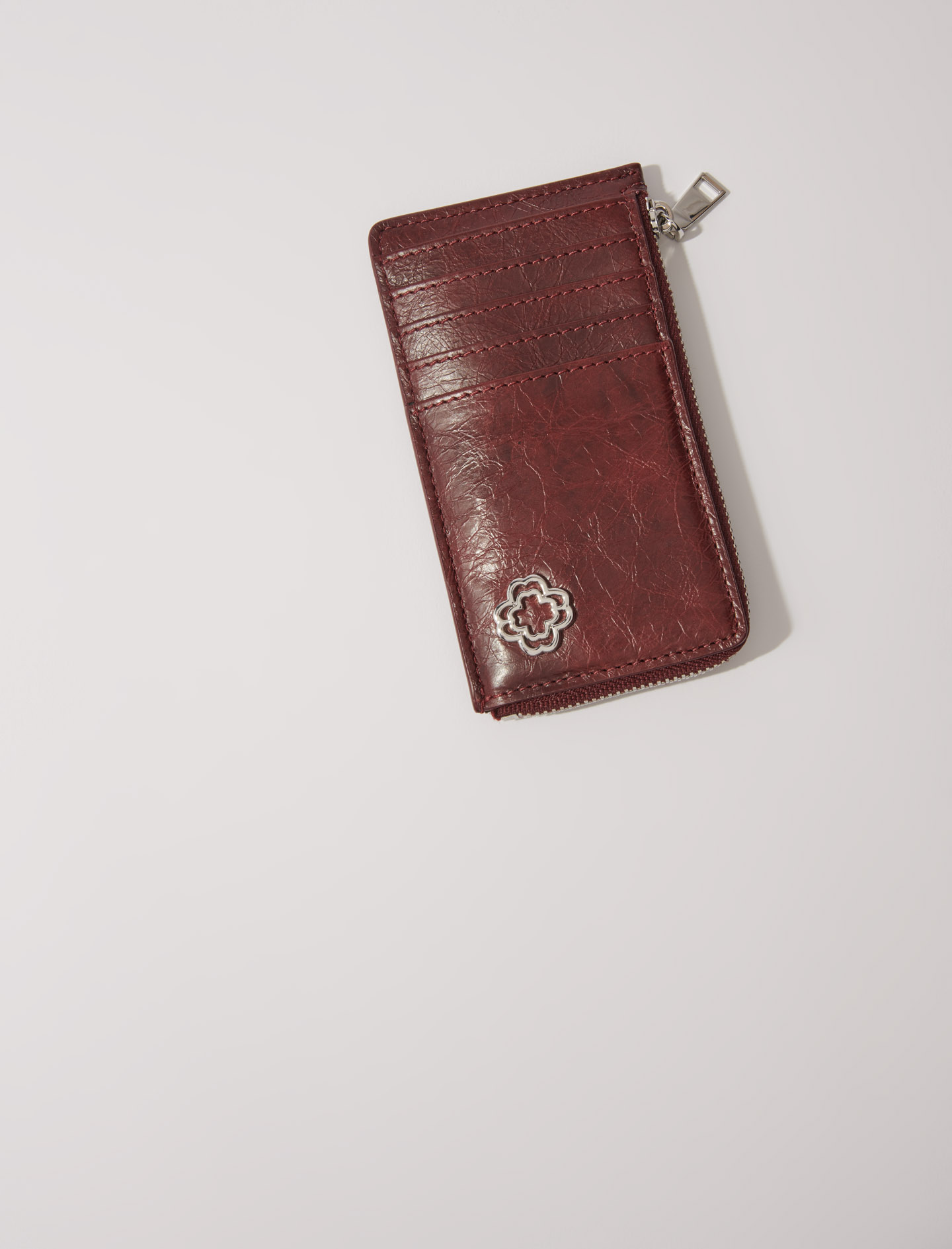 Maje Woman's leather Crackled leather cardholder for Fall/Winter, in color Burgundy /
